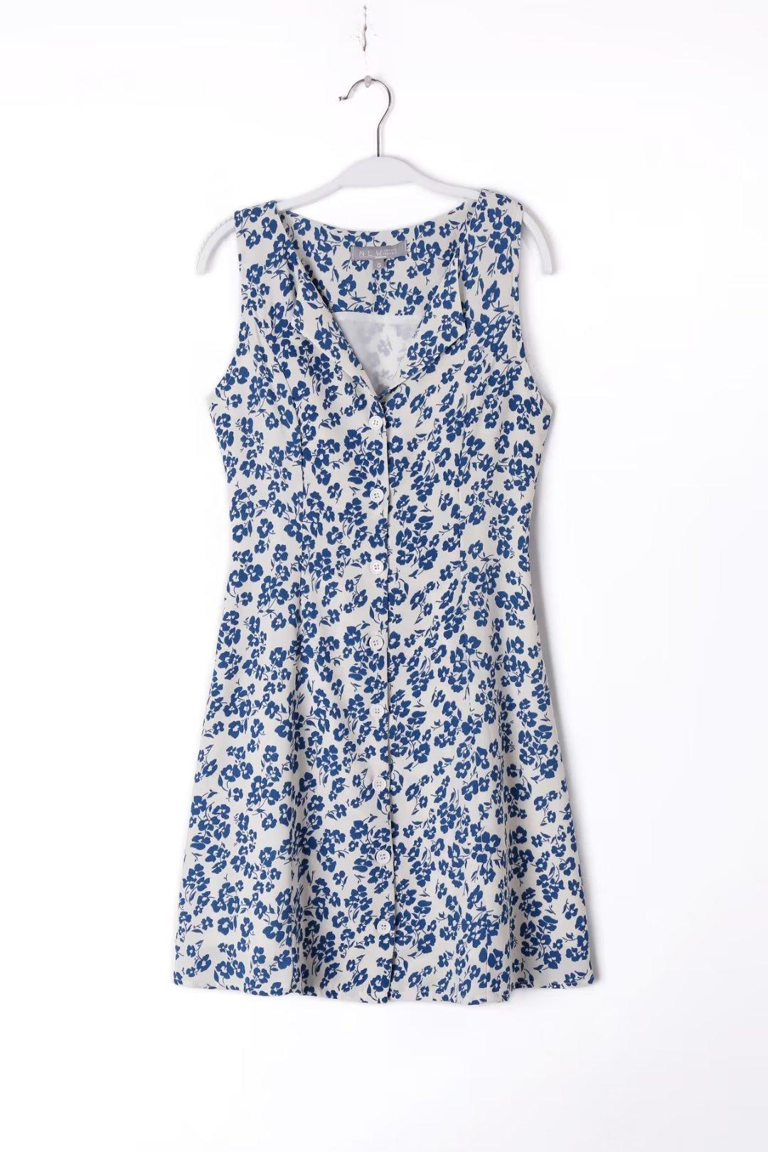 Vestido de verano nuevo con cuello en V y estampado floral sin mangas para mujer europea y americana