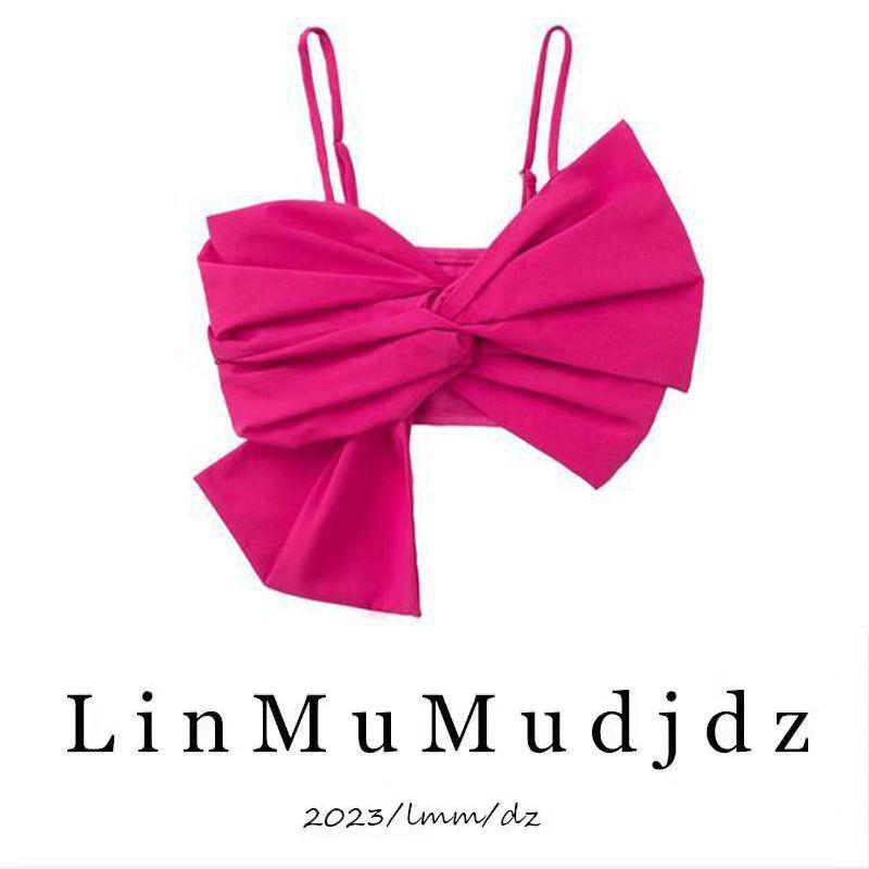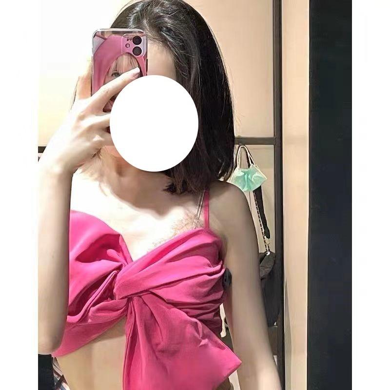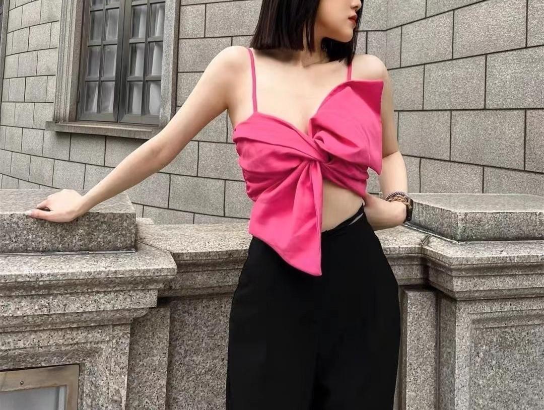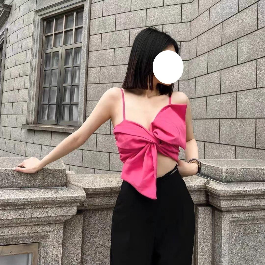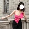 2025 Nueva Ropa de Verano para Mujer Estilo Europeo y Americano Top Corto con Decoración de Lazo Tubo Top Tirantes de Corazón Espalda Hermosa