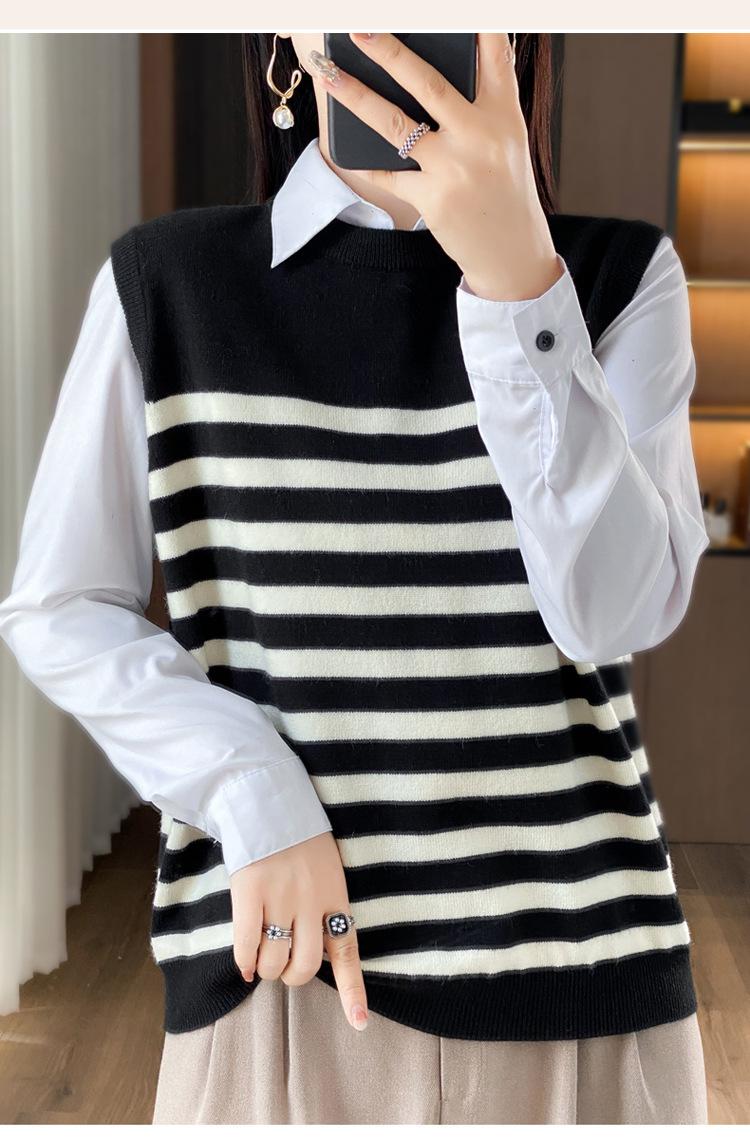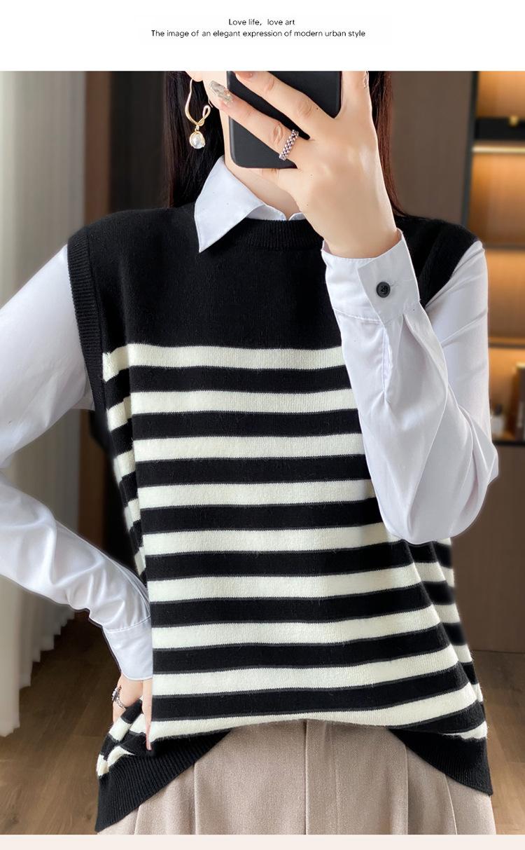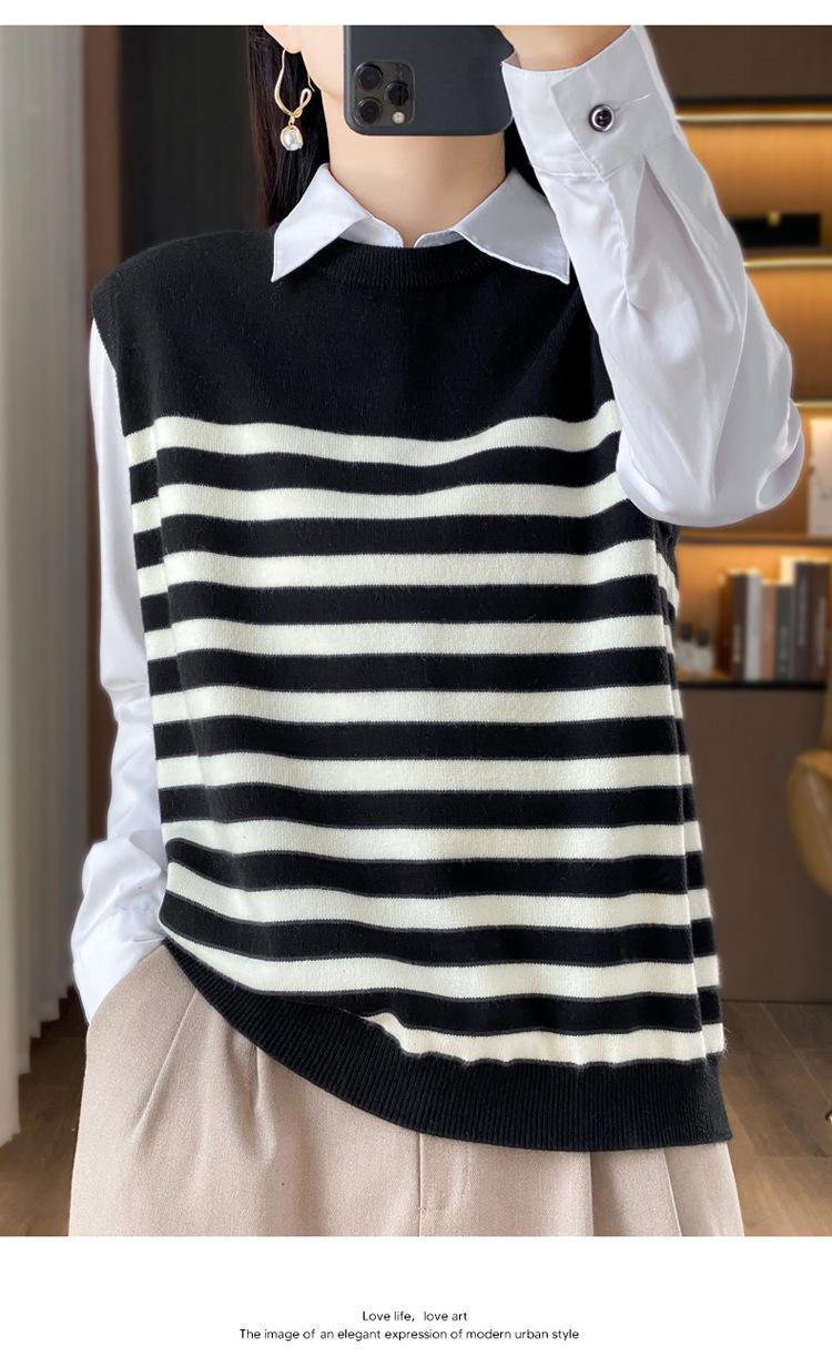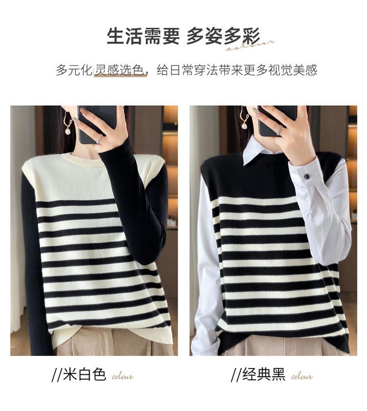 Chaleco a rayas con sentido del diseño 2023 nuevo abrigo suéter sin mangas bloque de color cuello redondo camiseta sin mangas Douyin dropshipping