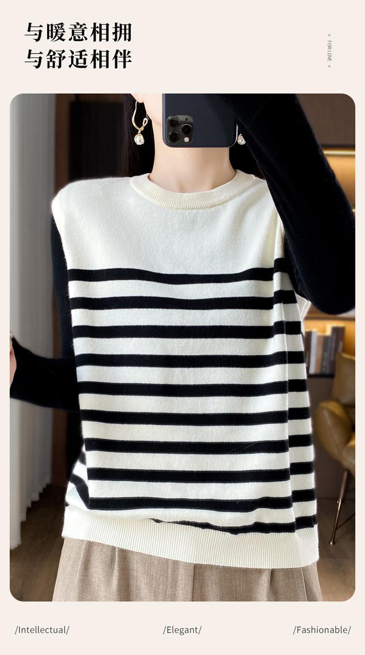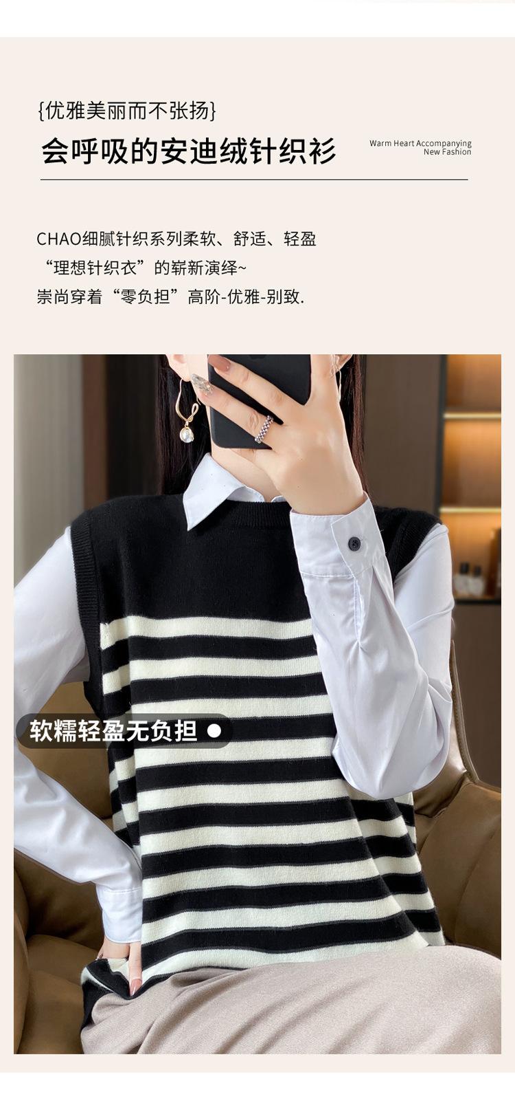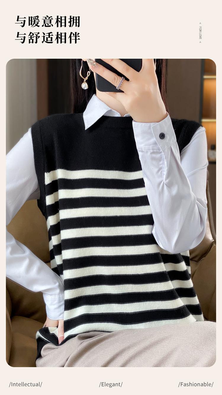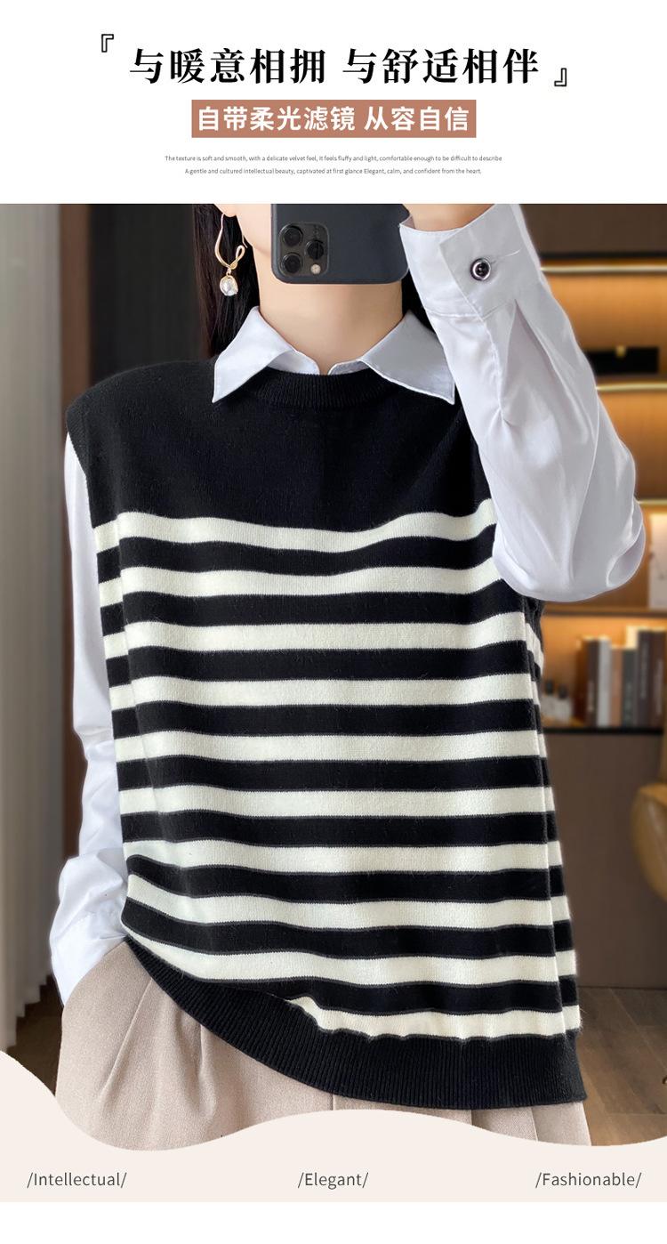 Chaleco a rayas con sentido del diseño 2023 nuevo abrigo suéter sin mangas bloque de color cuello redondo camiseta sin mangas Douyin dropshipping