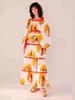 Comercio exterior europeo y americano transfronterizo primavera 2024 nuevo vestido de moda con cuello cuadrado y mangas abullonadas y estampado en la cintura