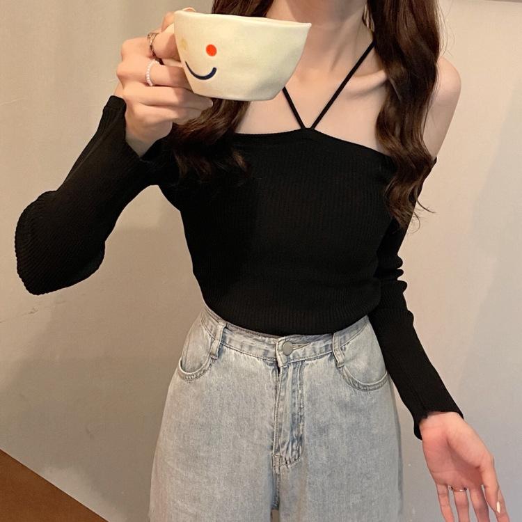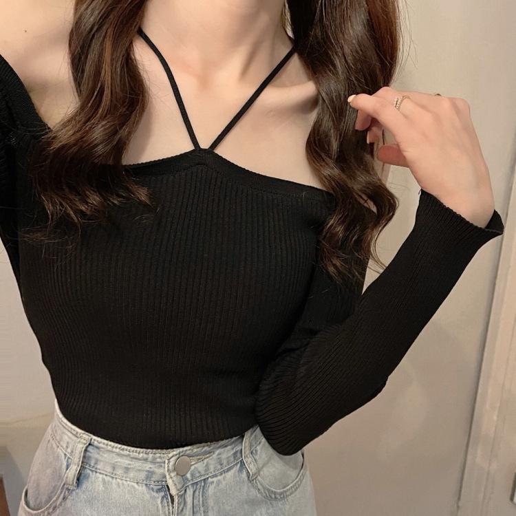 Camisa básica de manga larga ajustada con diseño de estilo coreano Sense para mujer, primavera y otoño