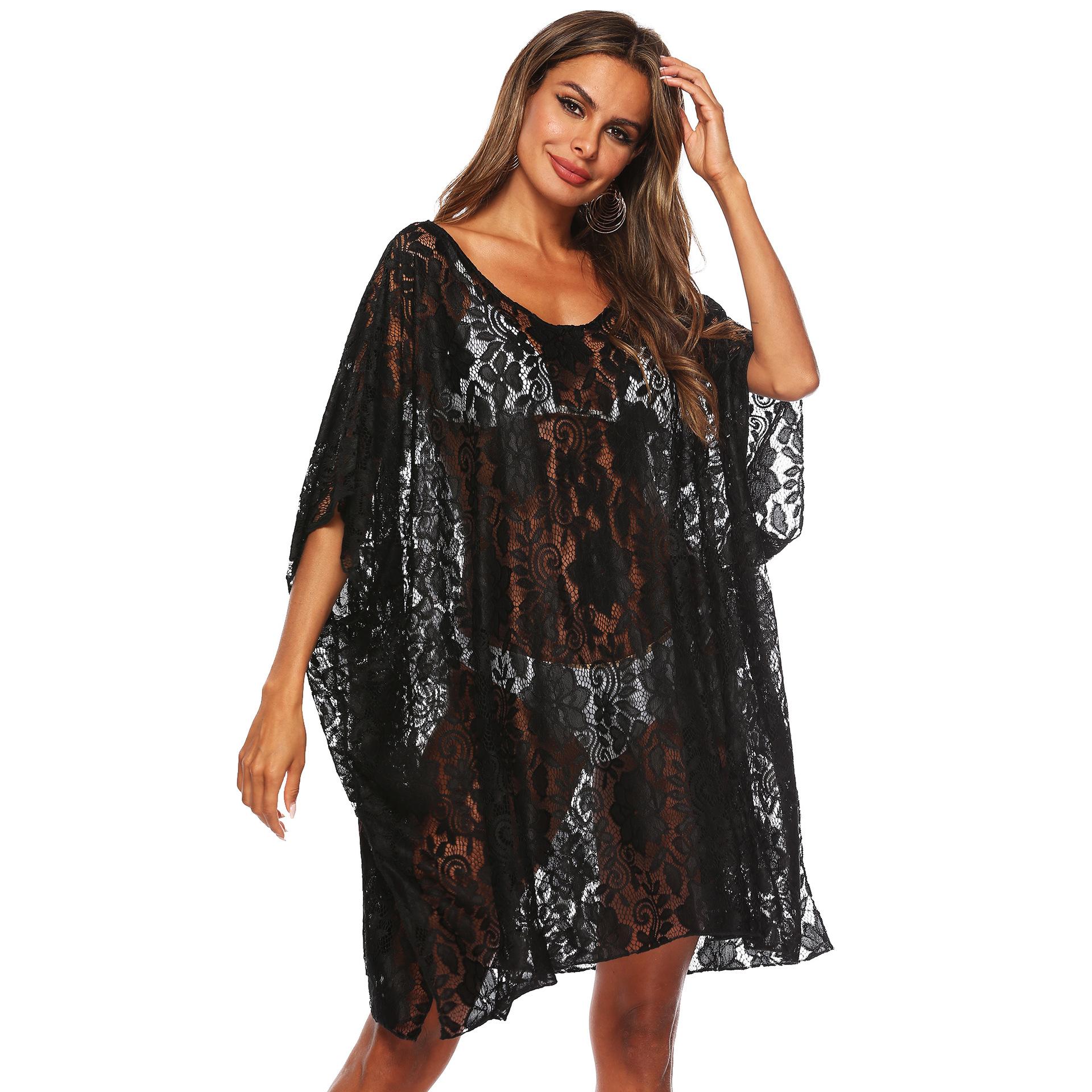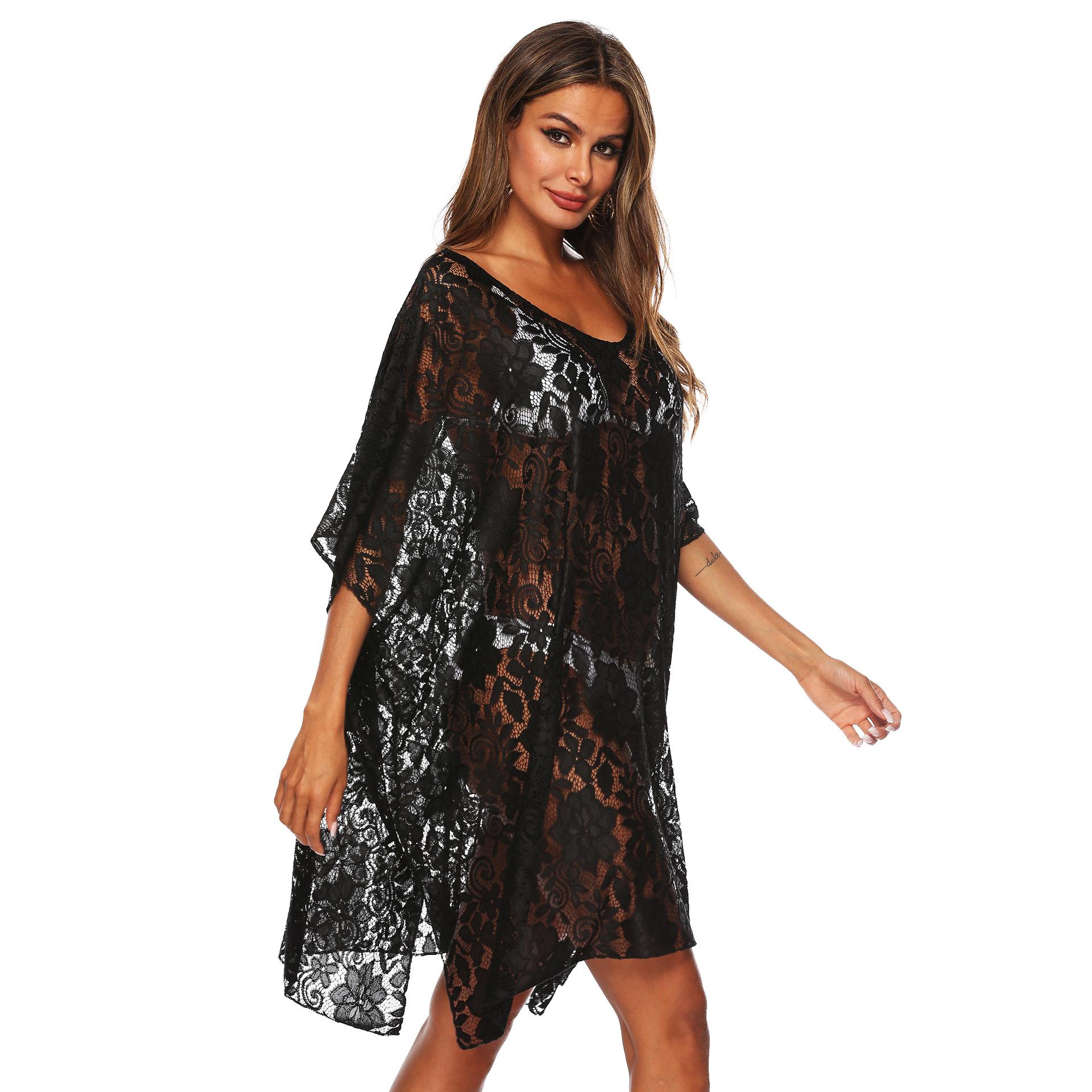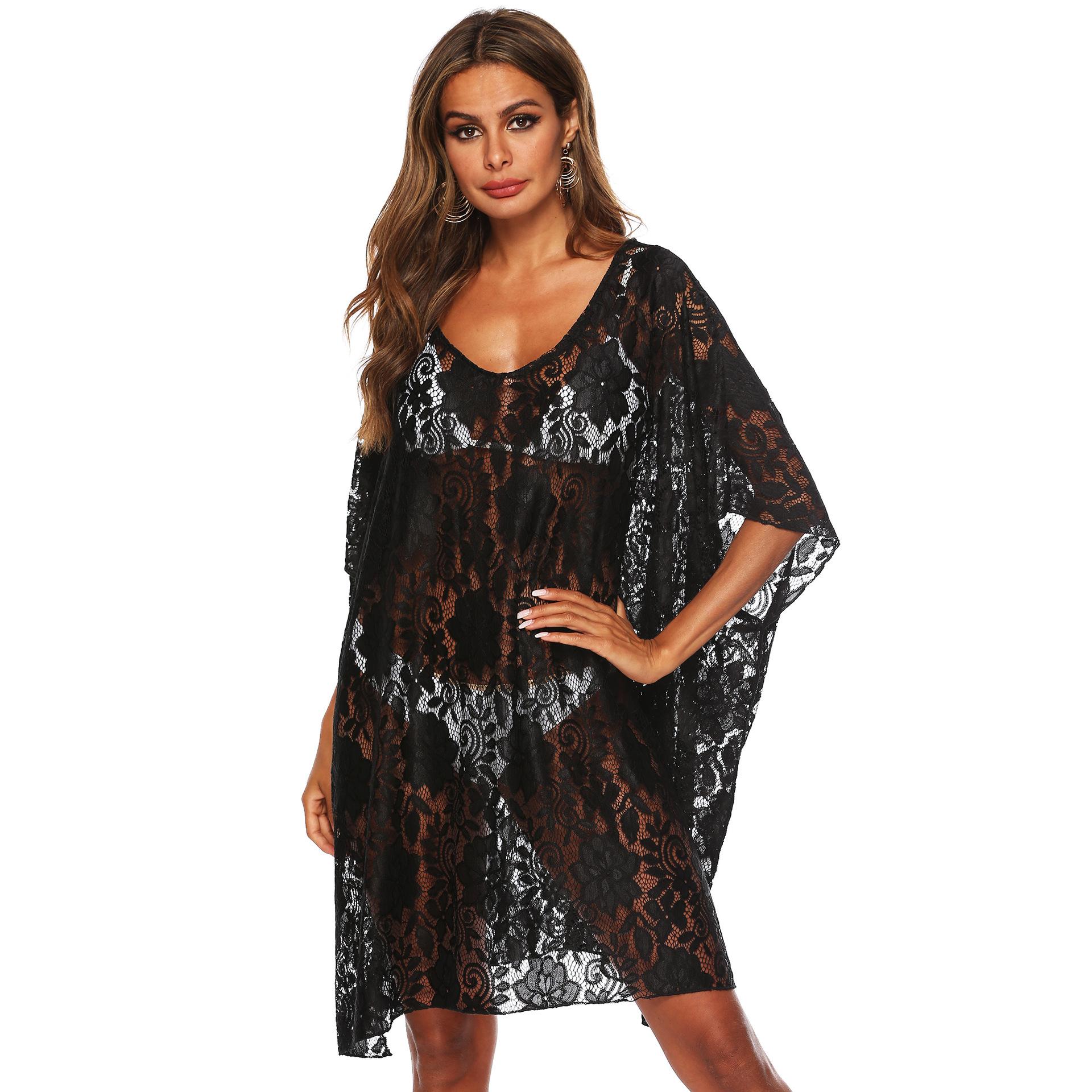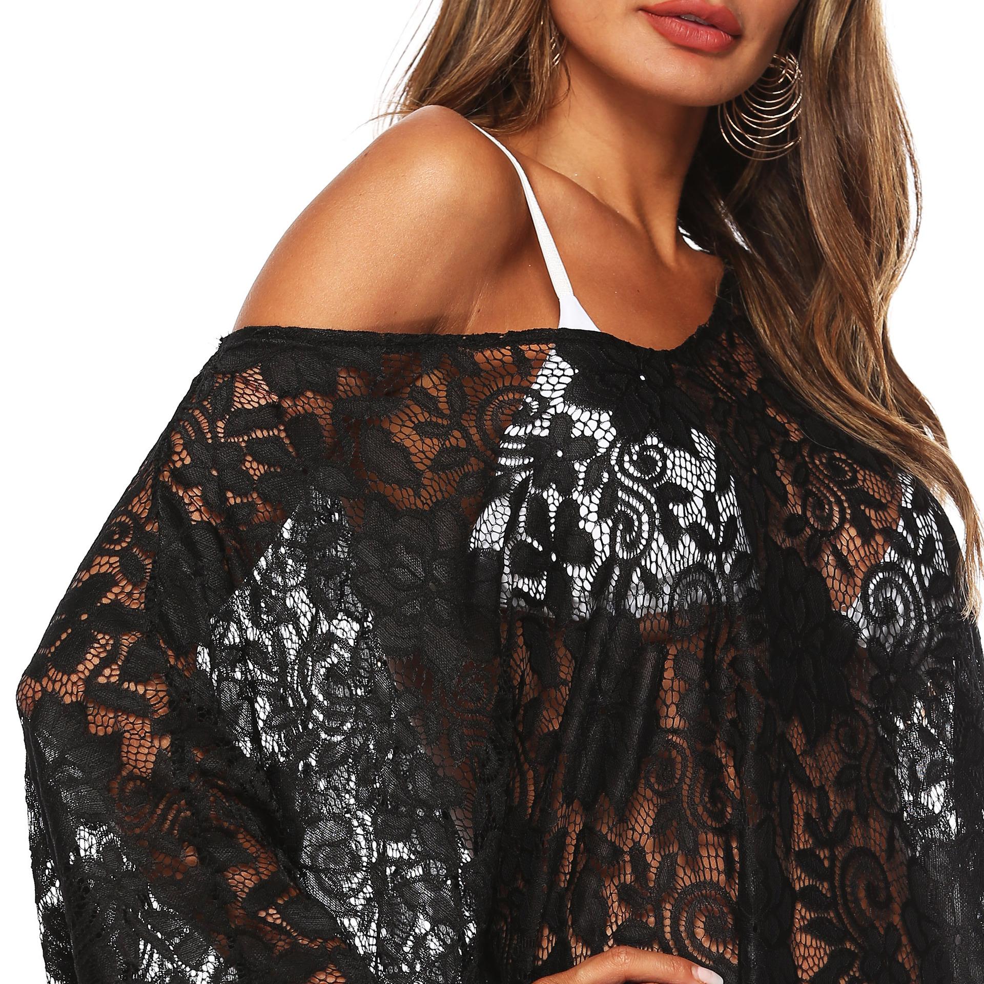 Encaje de color sólido transfronterizo sexy perspectiva profundo V abertura playa bikini blusa protector solar femenino A19140