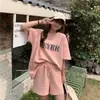 Conjunto Estampado con Letras para Mujer Verano 2026 Nuevo Estilo Coreano Celebridad de Internet Manga Corta Shorts Holgado Tallas Grandes Deportivo Conjunto de Dos Piezas