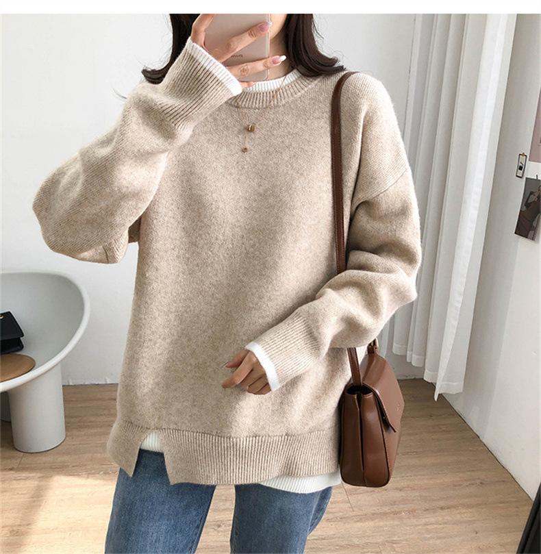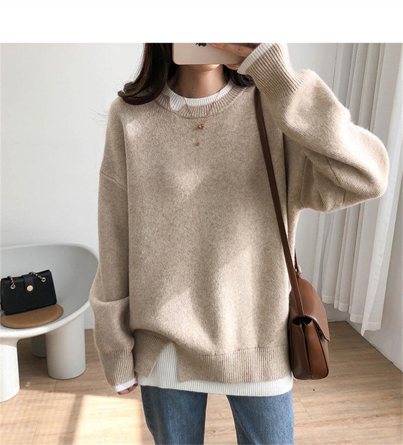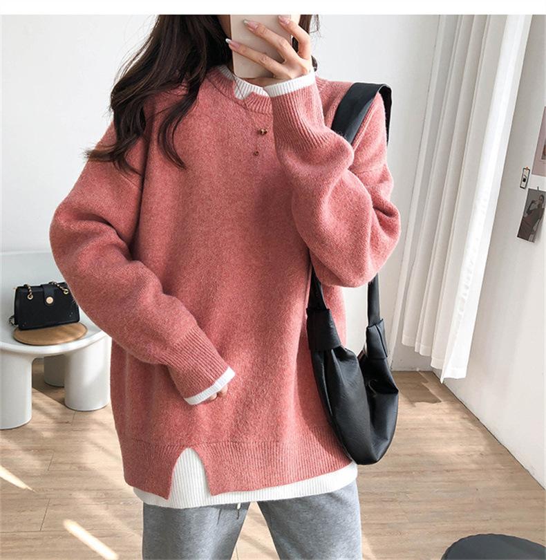 Suéter de punto de dos piezas falso 2022 para mujer, otoño e invierno, nuevo estilo coreano, antiedad, suelto, suave, ceroso, informal, con contraste