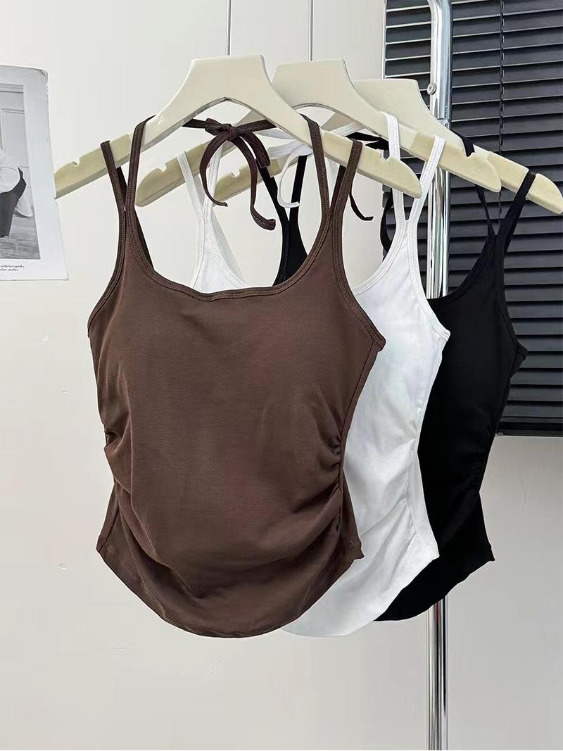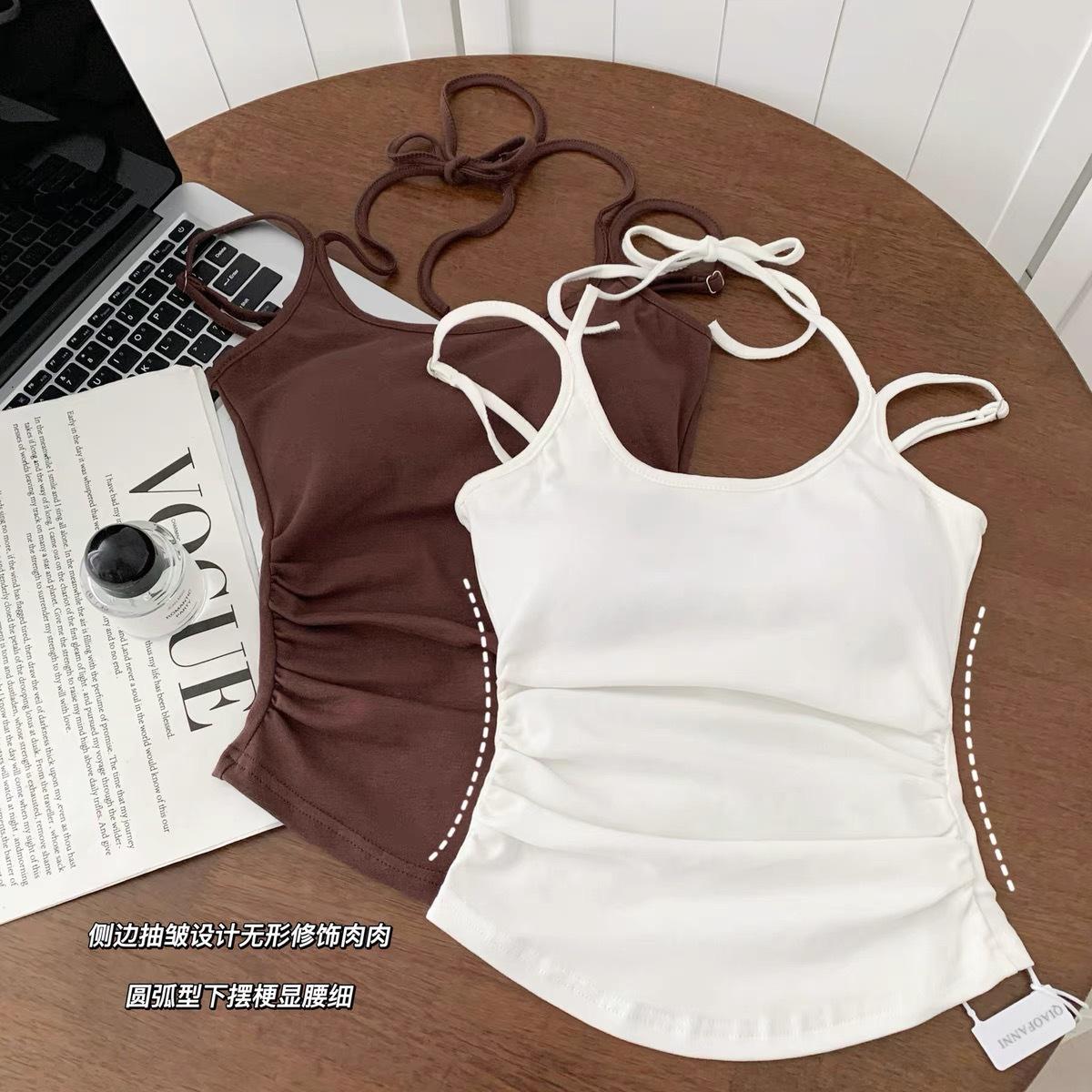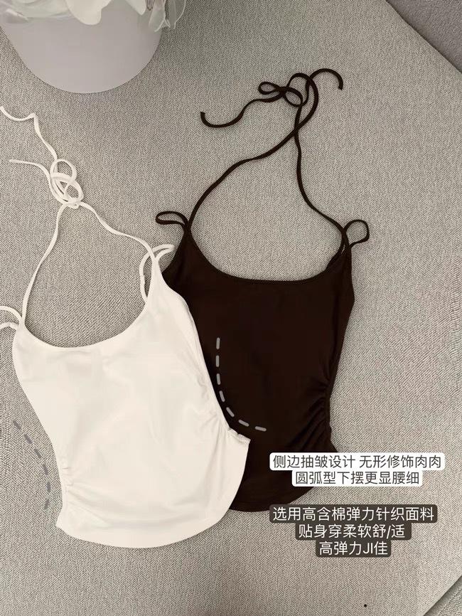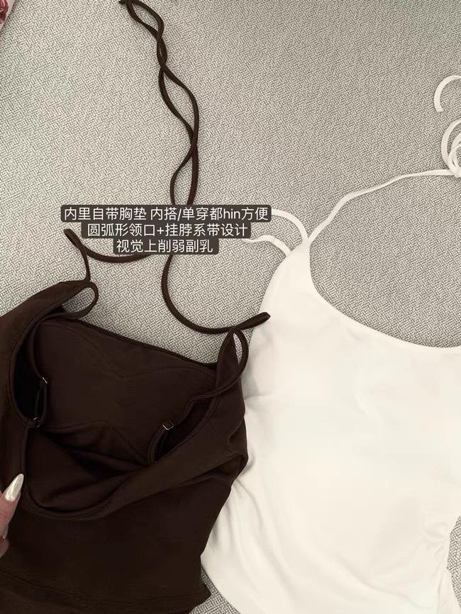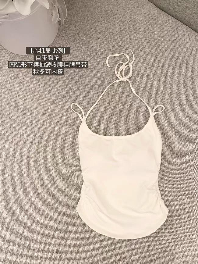 Camisola halter para mujer, primavera y verano, nueva, sexy, sexy, para chica, con parte inferior, cintura interior adelgazante, top corto con almohadilla para el pecho