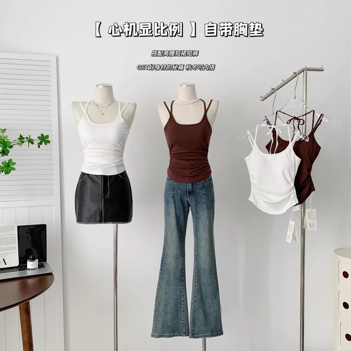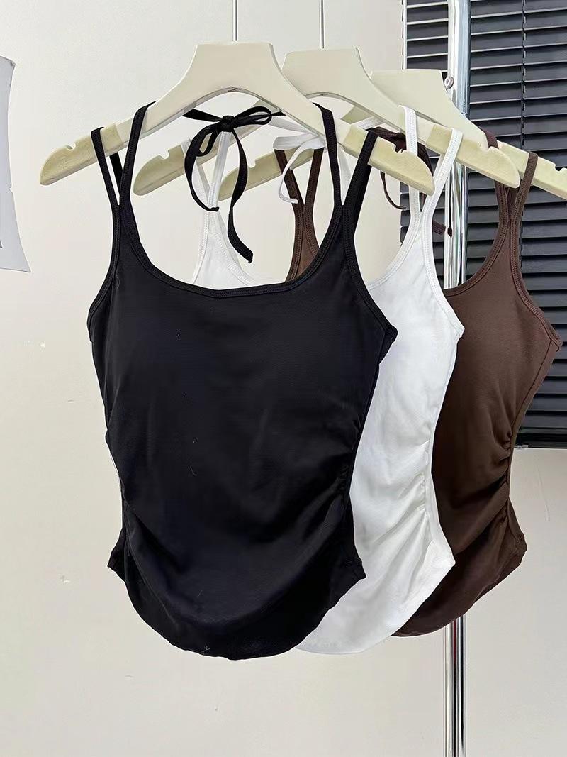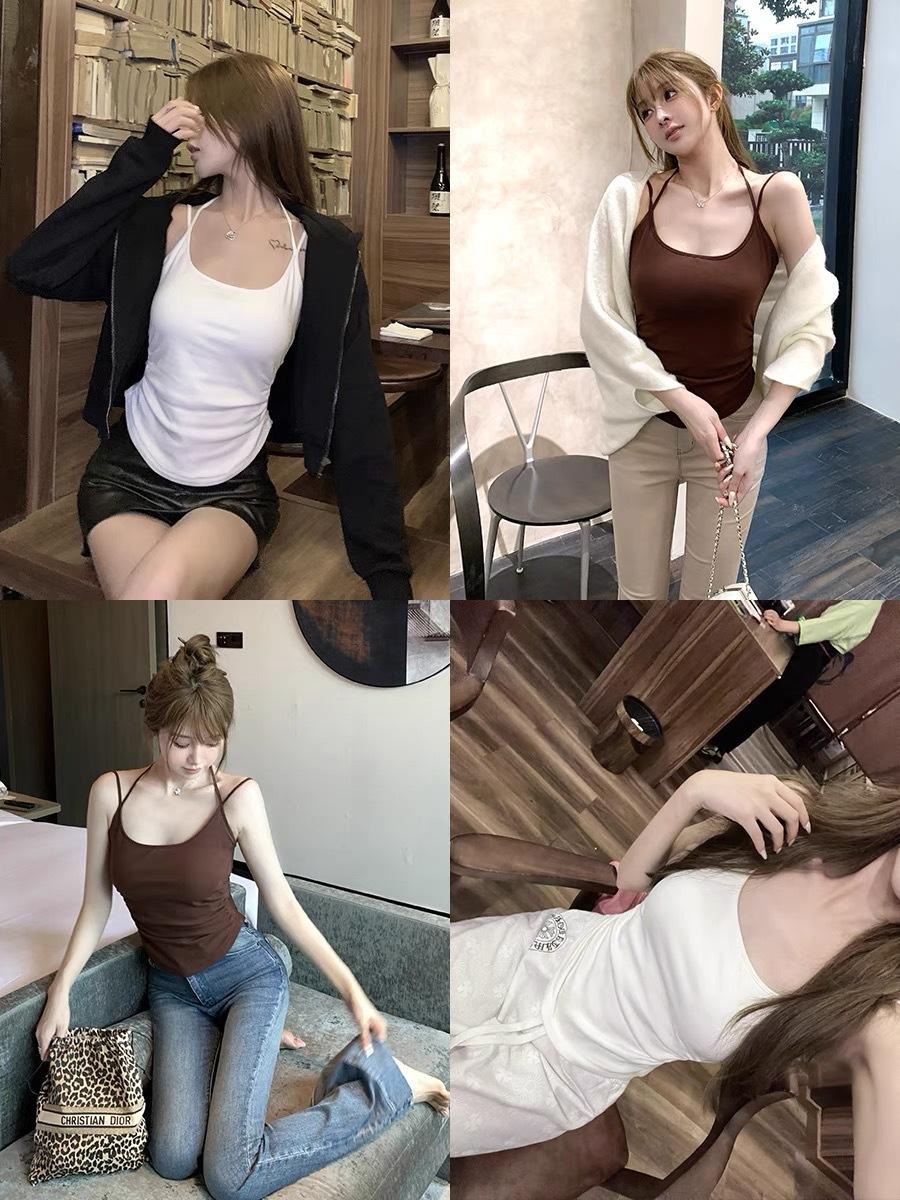 Camisola halter para mujer, primavera y verano, nueva, sexy, sexy, para chica, con parte inferior, cintura interior adelgazante, top corto con almohadilla para el pecho