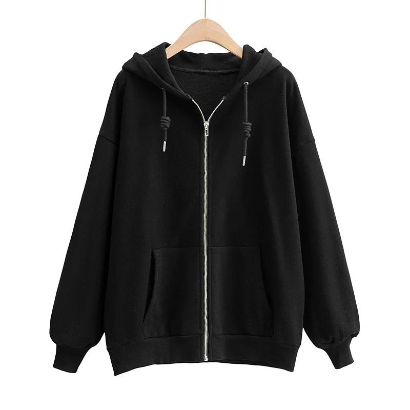 Chaqueta tipo cárdigan con cremallera súper holgada estilo BM para mujer, otoño 2022, moda europea y americana, suéter con capucha de color sólido holgado