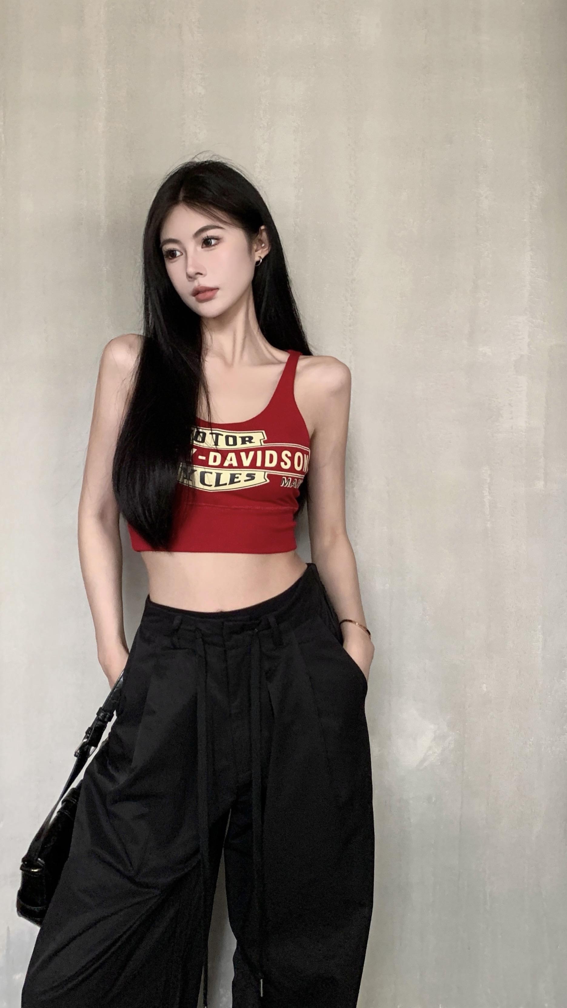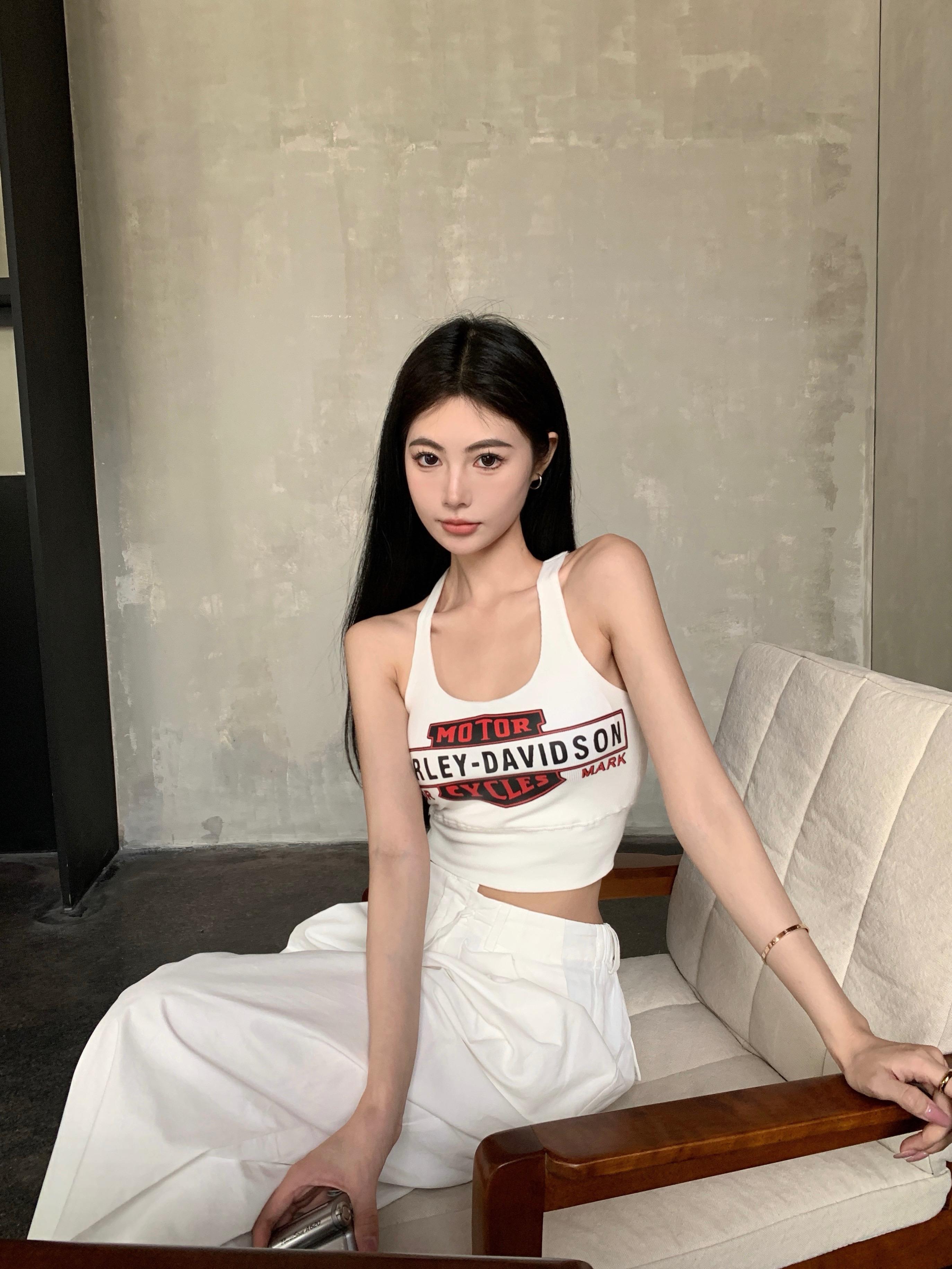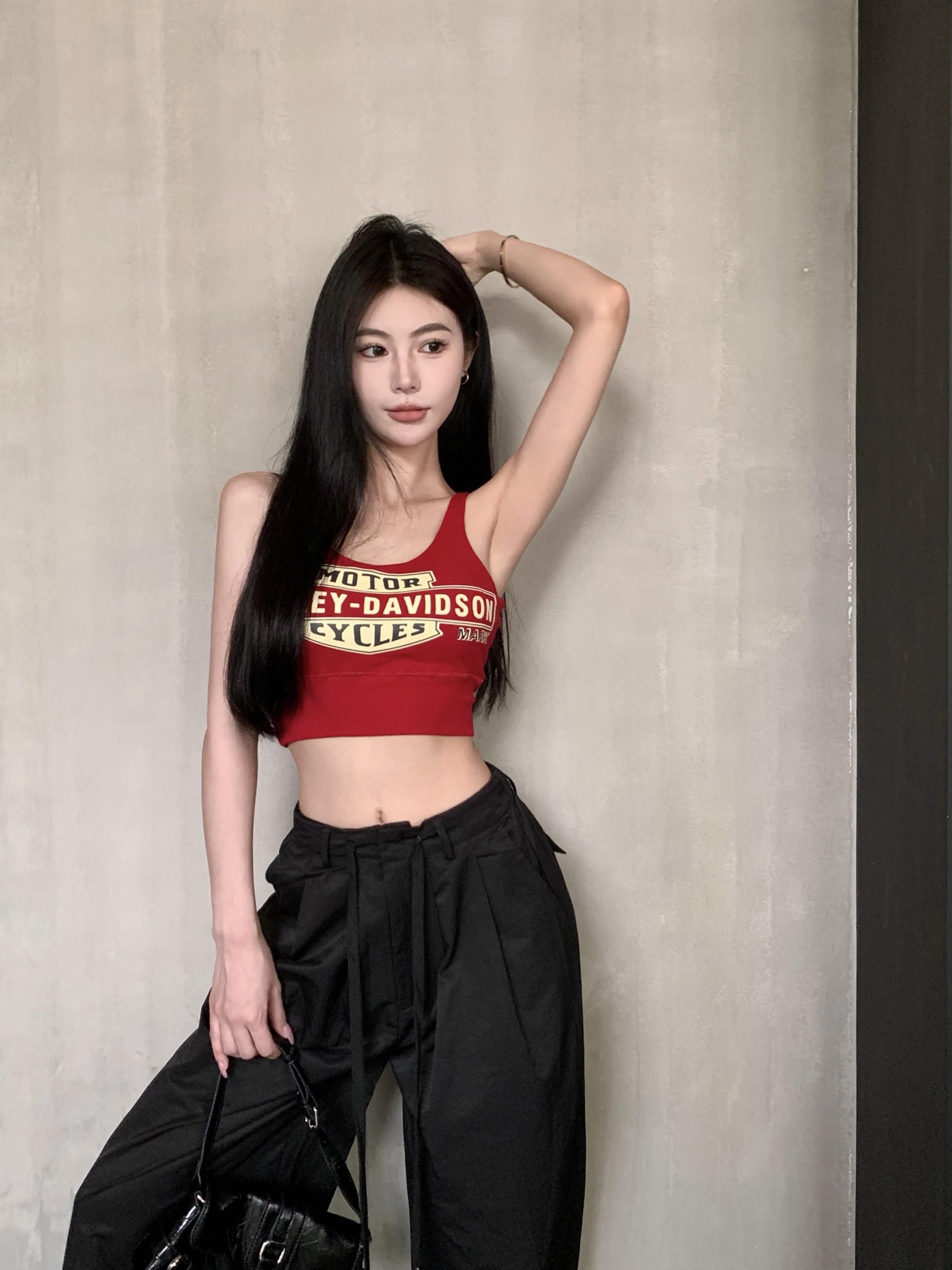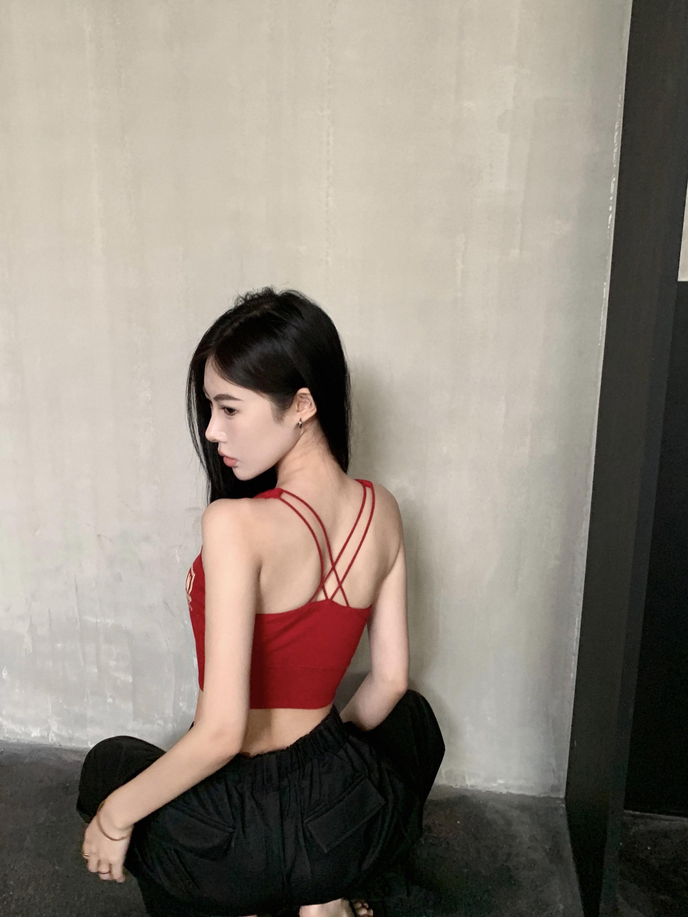 Camisola interior con cinturón y almohadilla para el pecho, estilo americano, con estampado de chica sexy, ropa exterior deportiva sin mangas, moda de verano para mujer