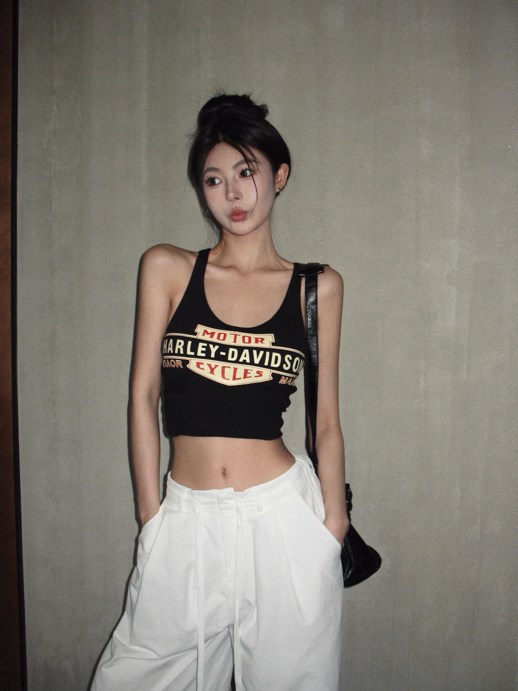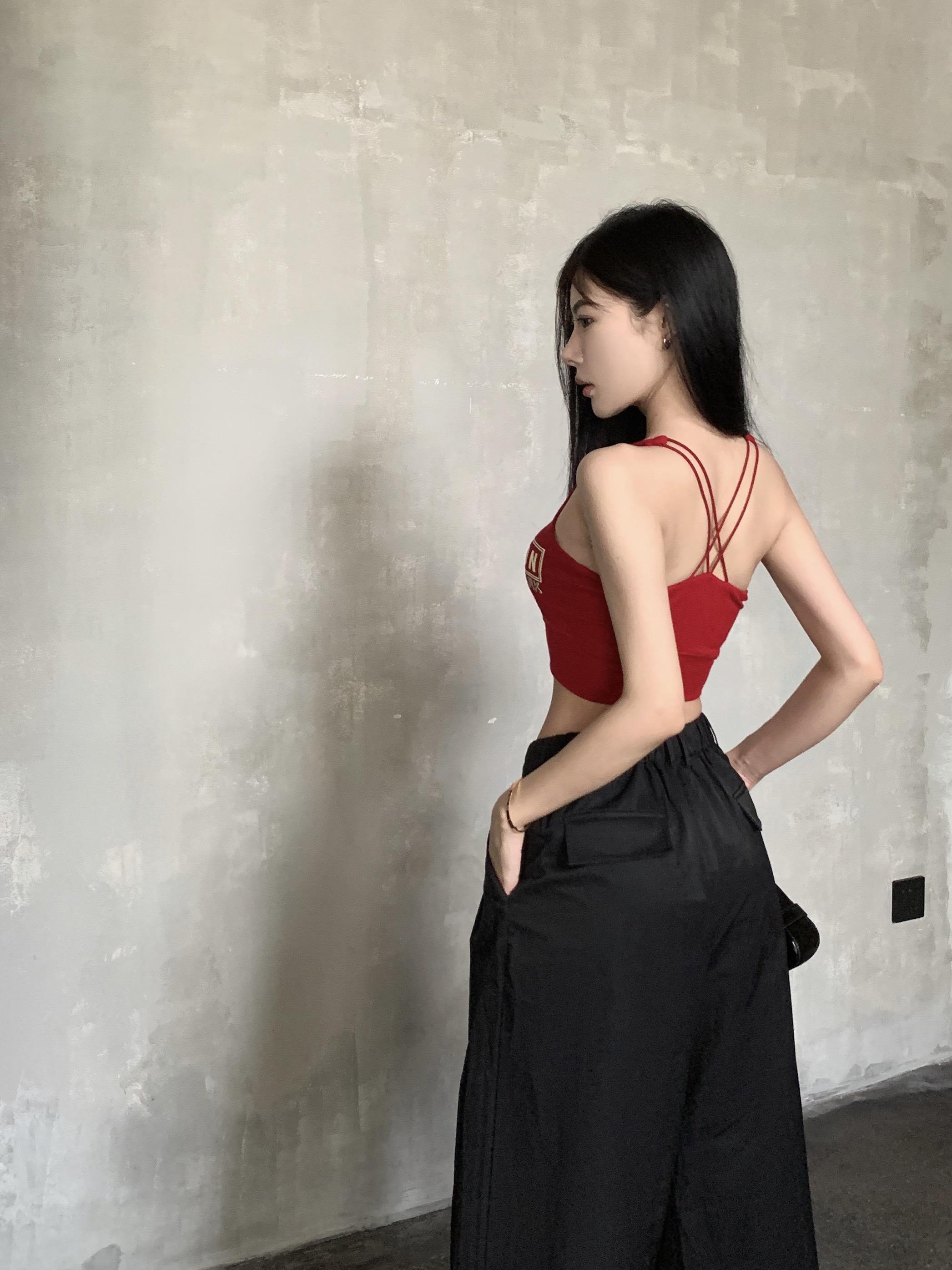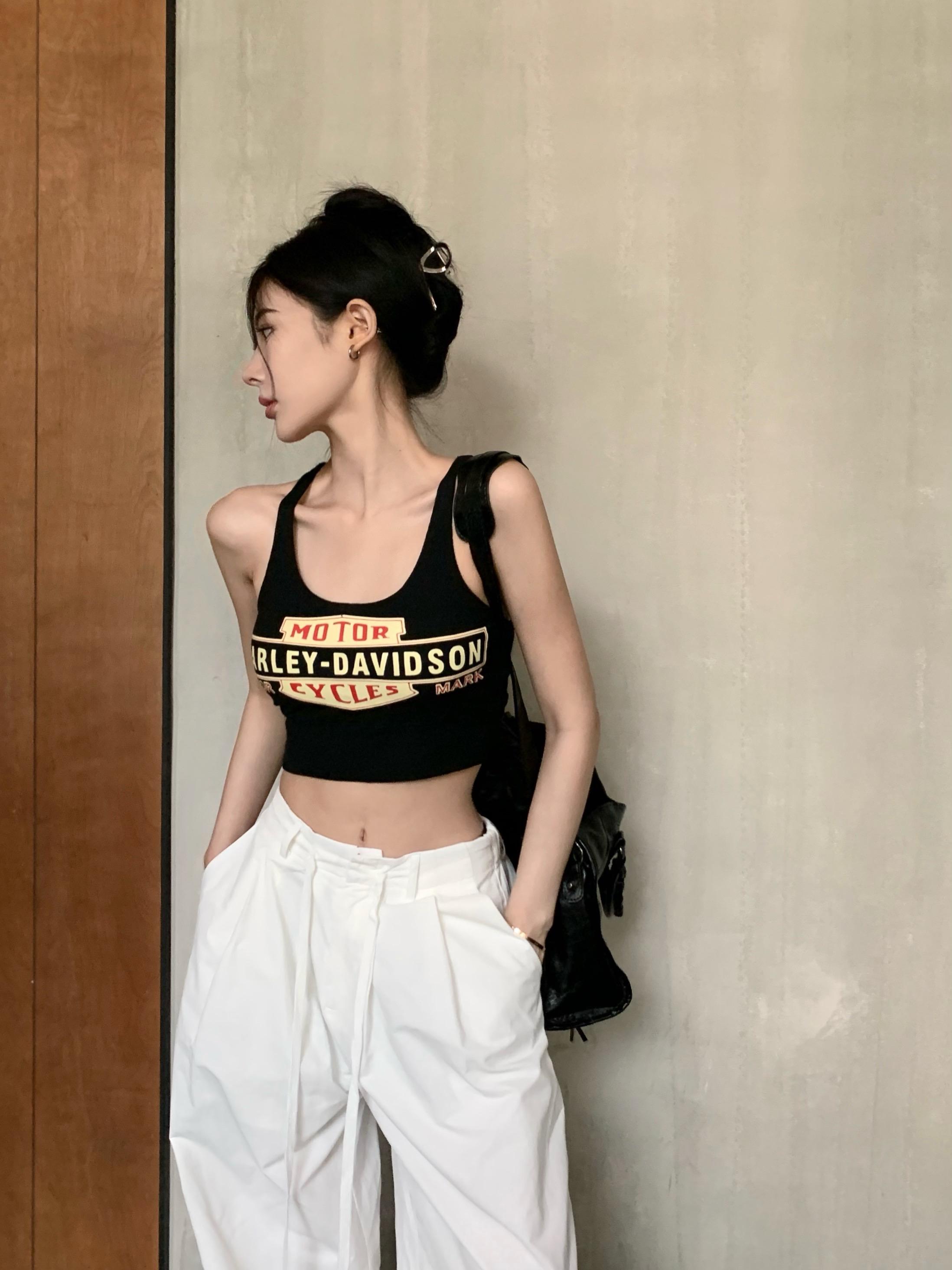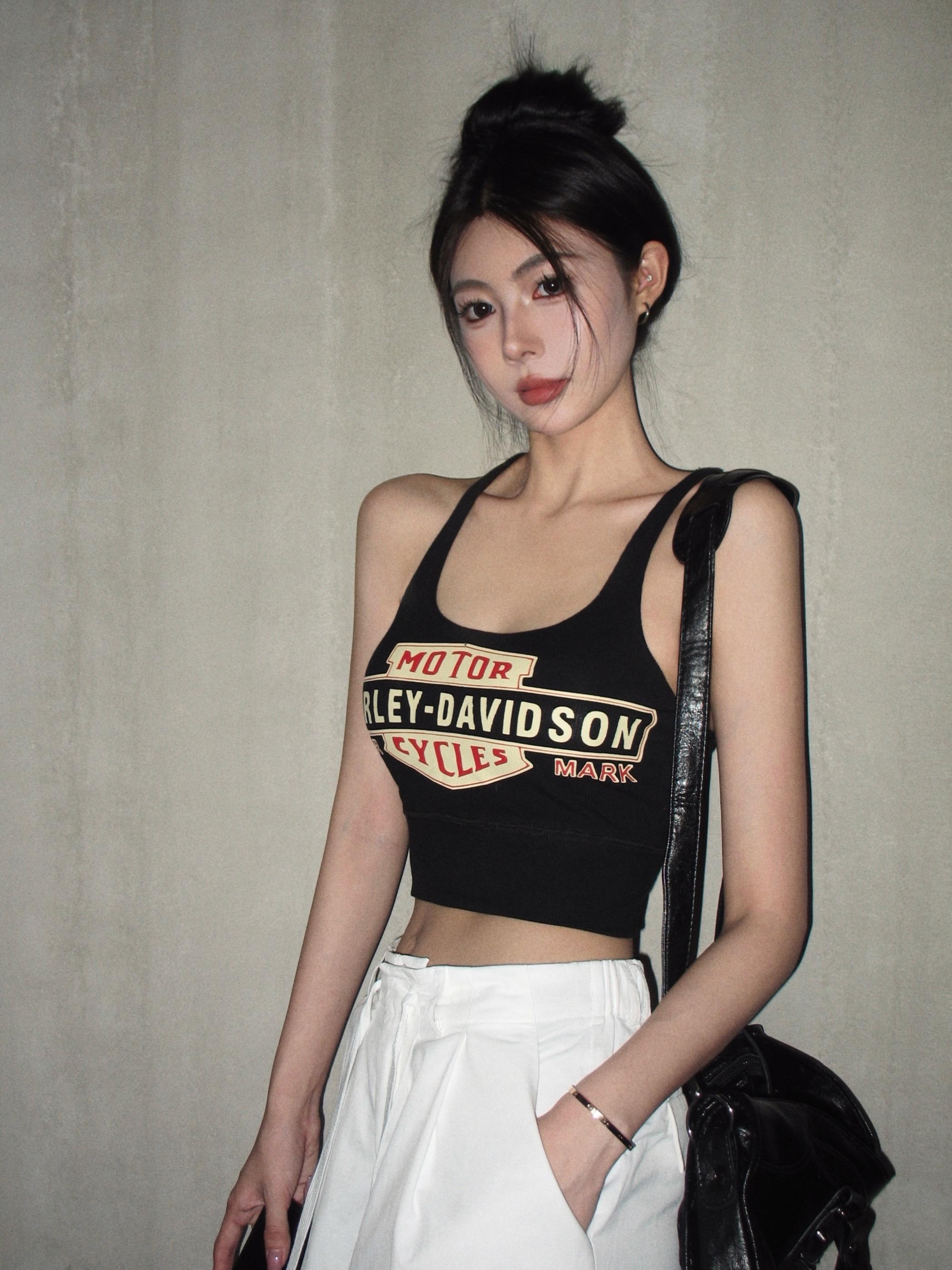 Camisola interior con cinturón y almohadilla para el pecho, estilo americano, con estampado de chica sexy, ropa exterior deportiva sin mangas, moda de verano para mujer