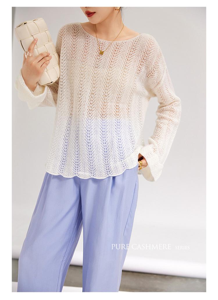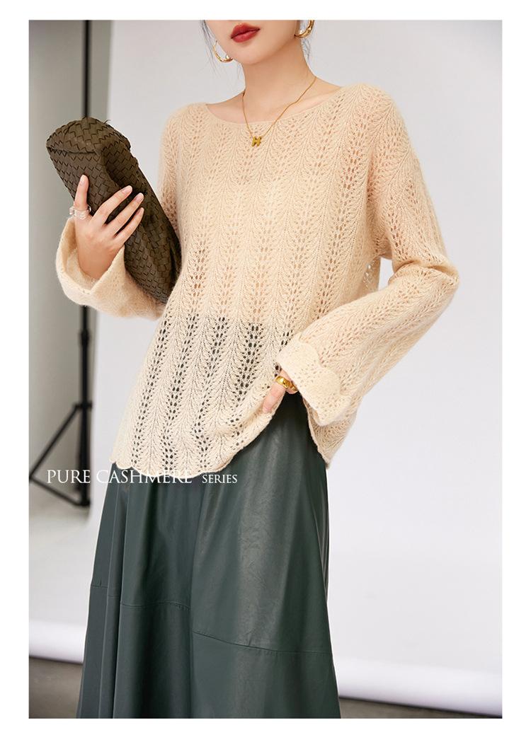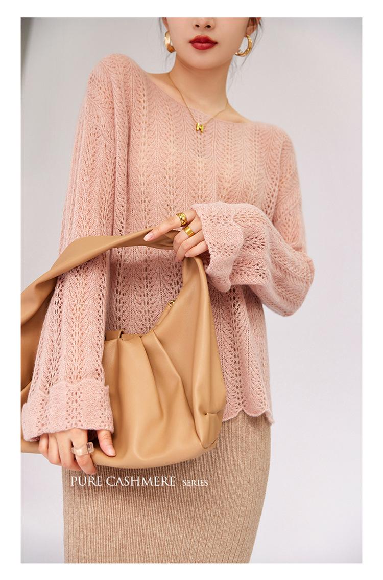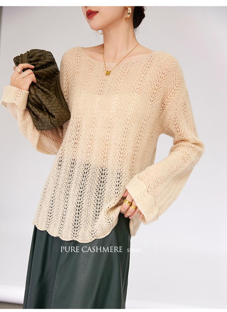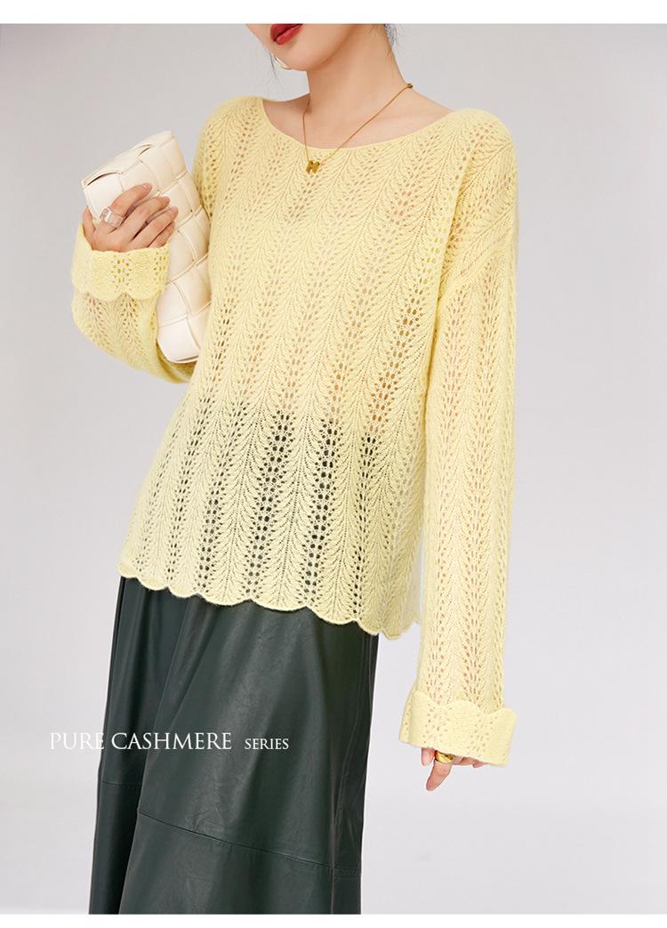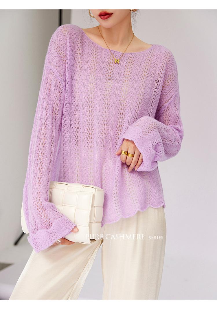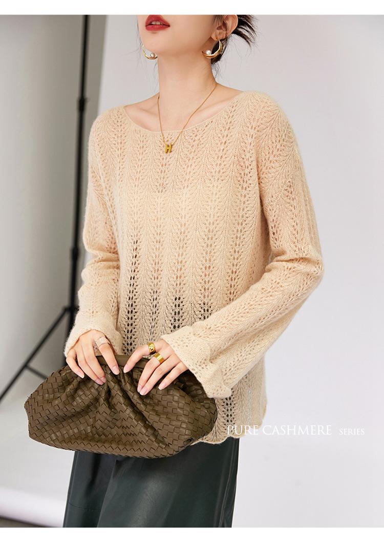Suéter de Cachemira de Montaña 100% Puro para Mujer, Suéter de Punto Holgado con Cuello Barco Hueco, Estilo Lazy, Suéter Base Fino