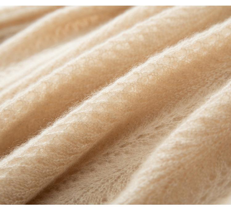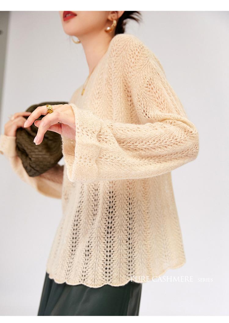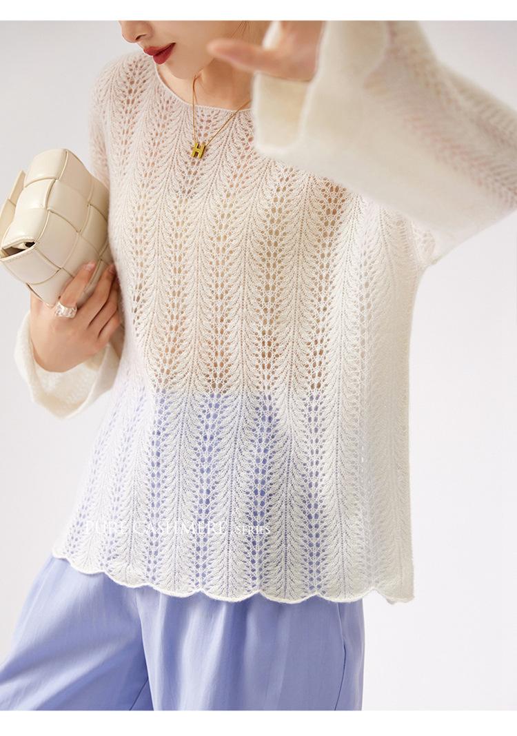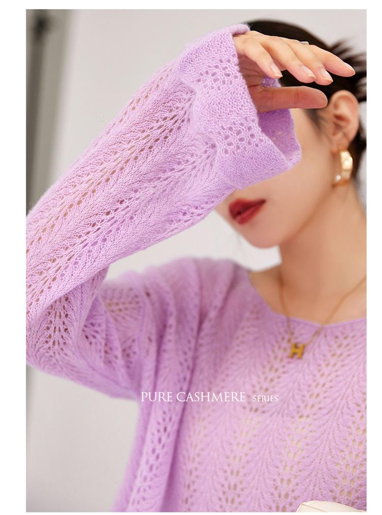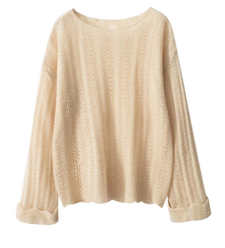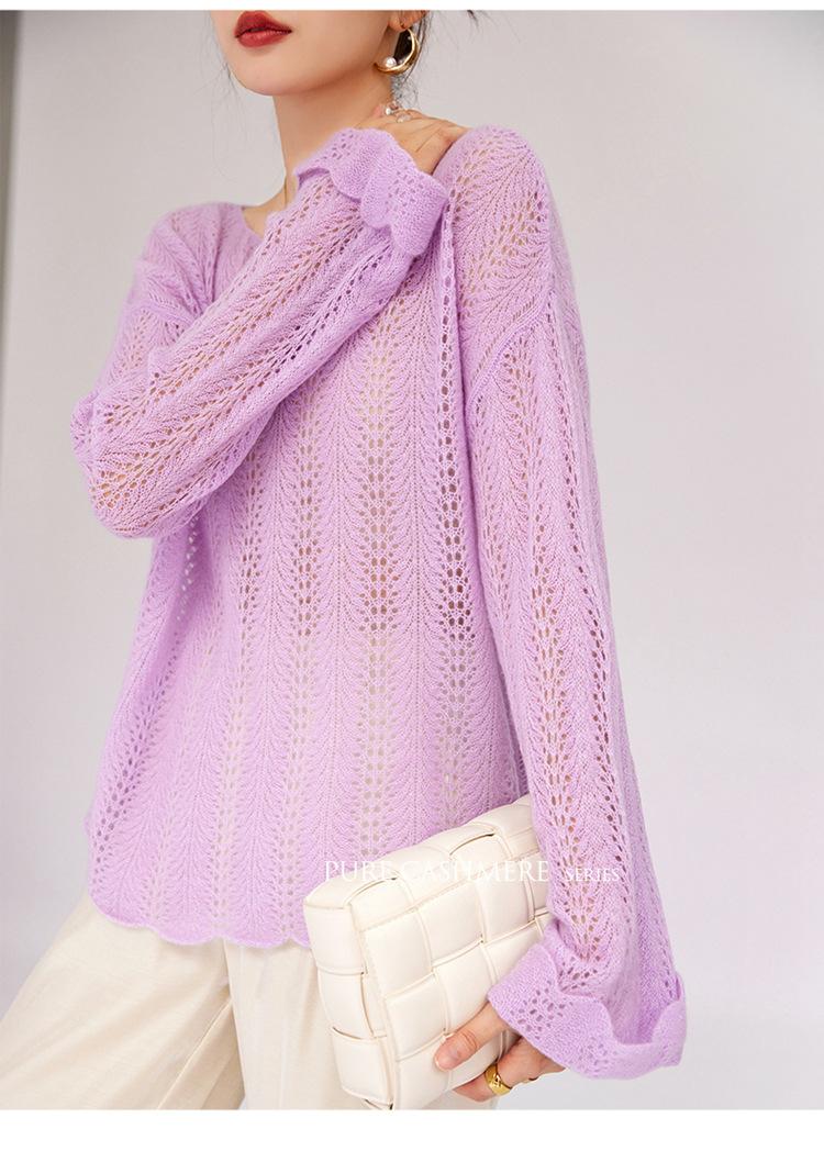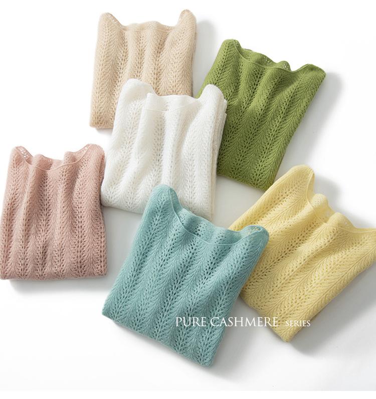 Suéter de Cachemira de Montaña 100% Puro para Mujer, Suéter de Punto Holgado con Cuello Barco Hueco, Estilo Lazy, Suéter Base Fino
