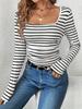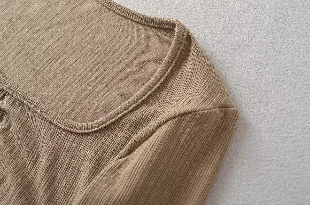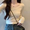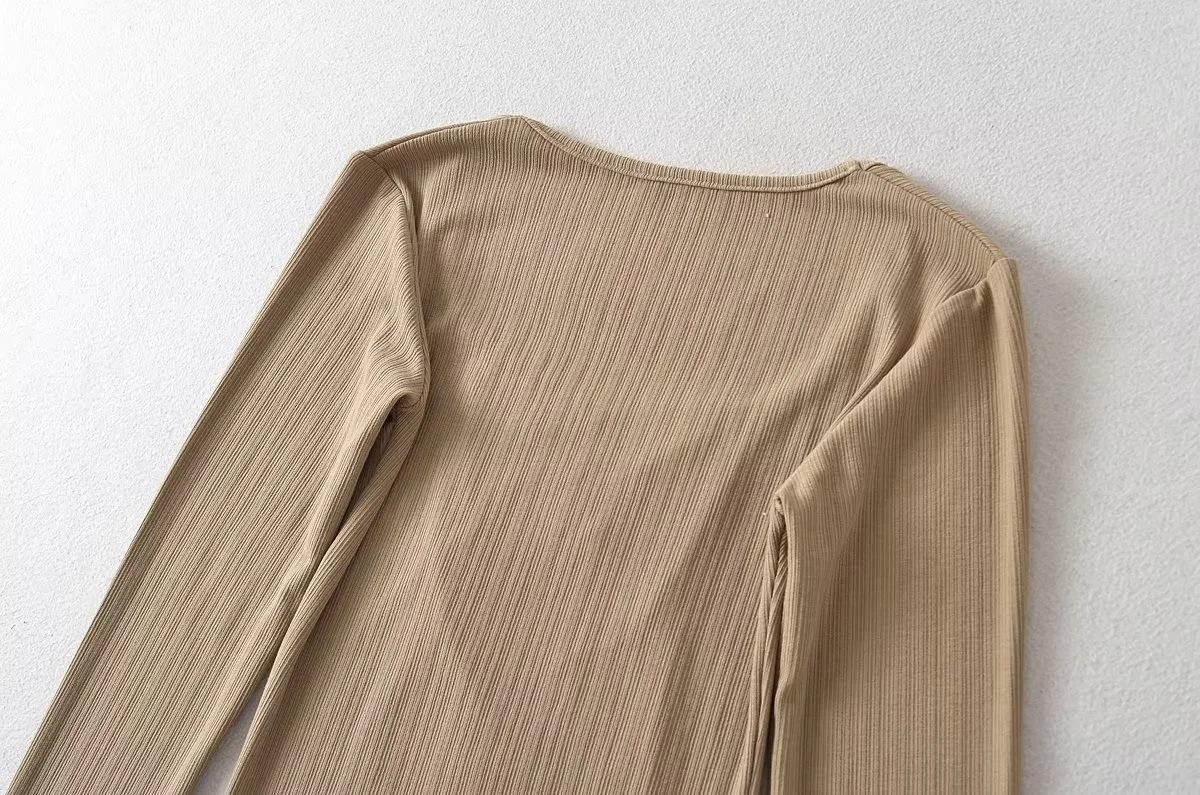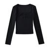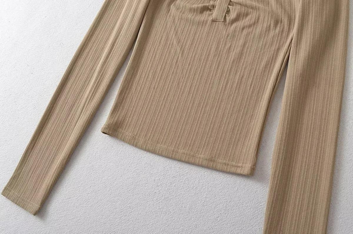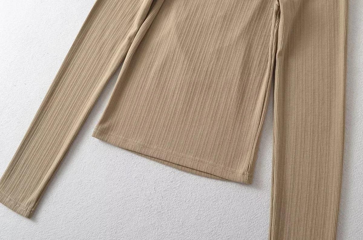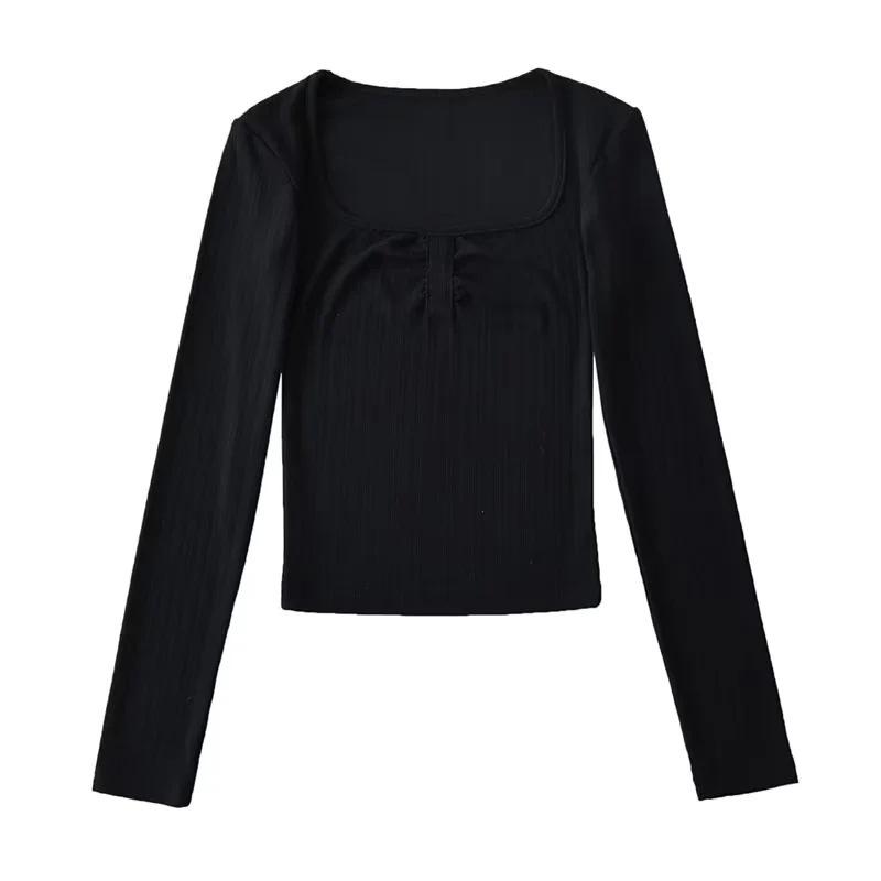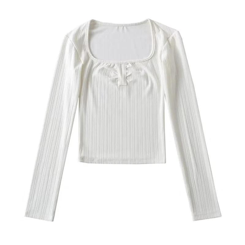 Camiseta básica sexy plisada de color sólido estilo europeo y americano para mujer, top de hilo elástico de otoño, camiseta ajustada de manga larga estilo europeo y americano