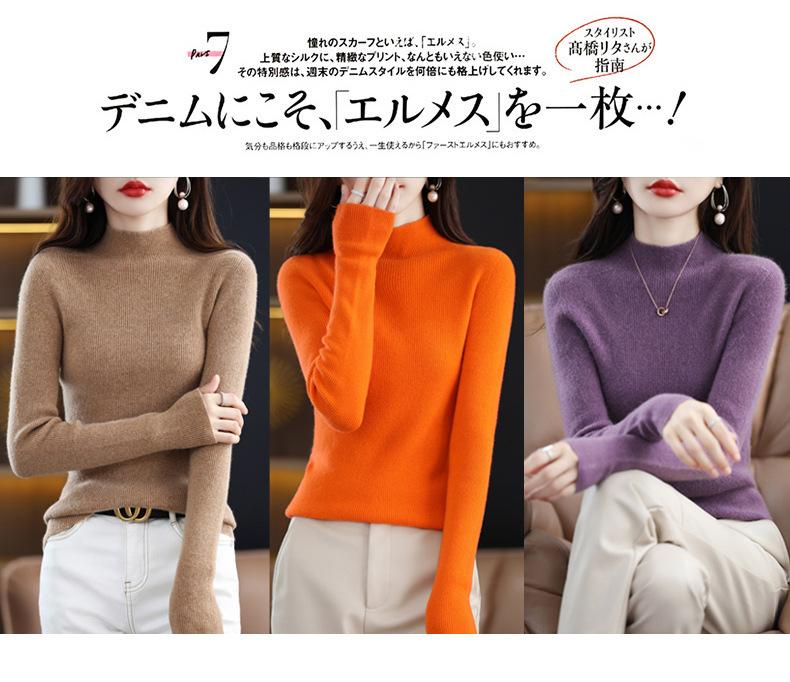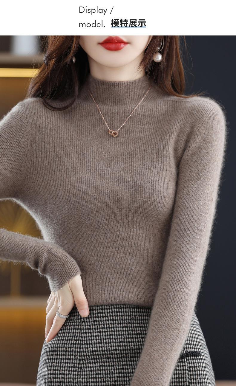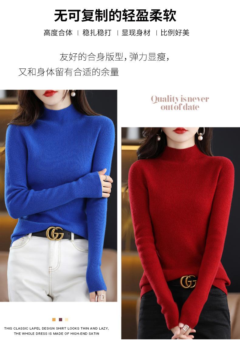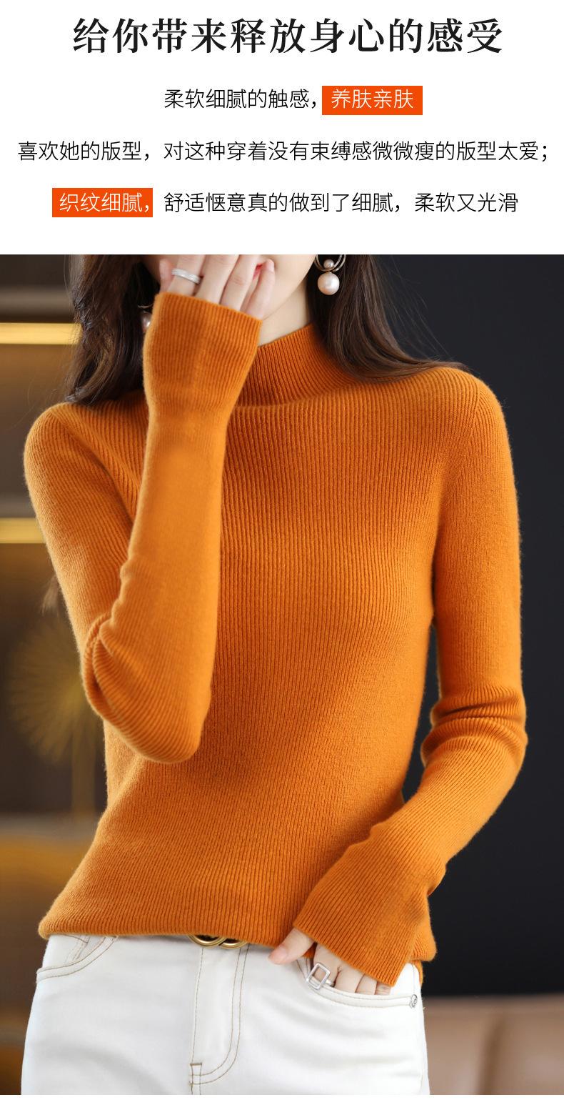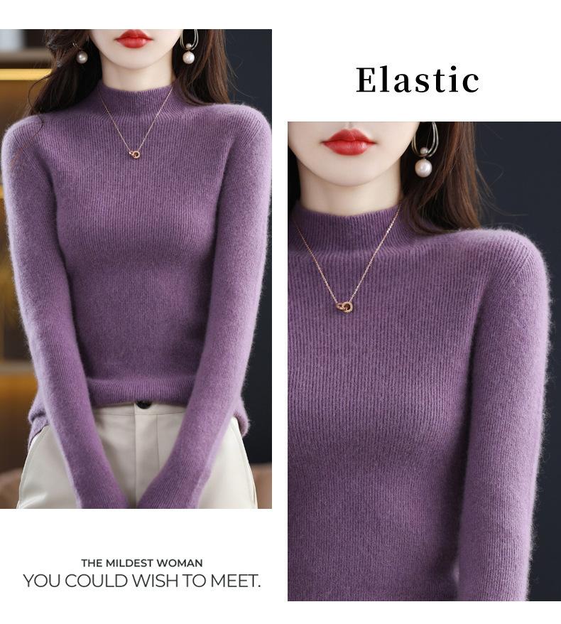 Suéter básico de una pieza, sin costuras, de 100% lana pura, ajustado, adelgazante, con cuello alto medio para mujer