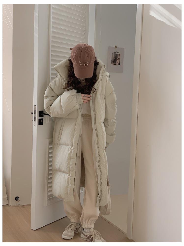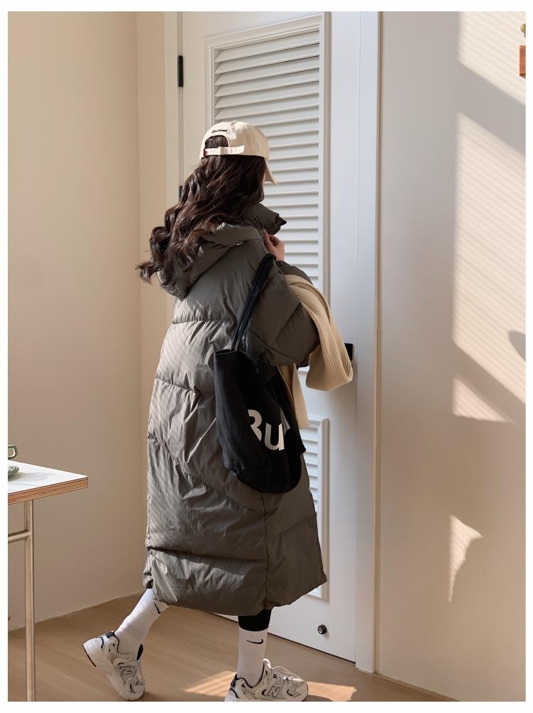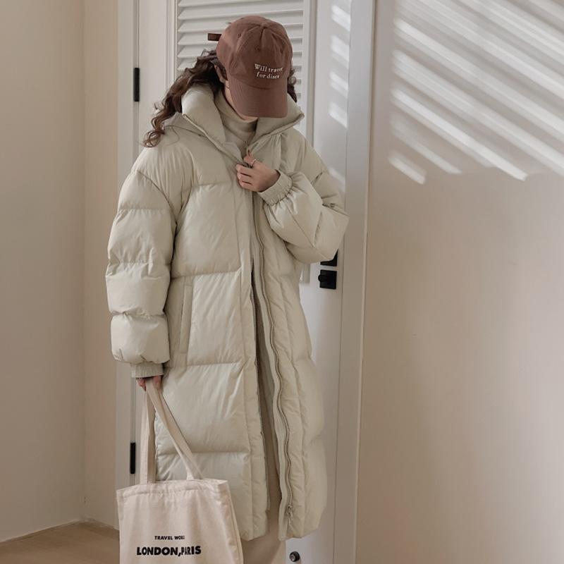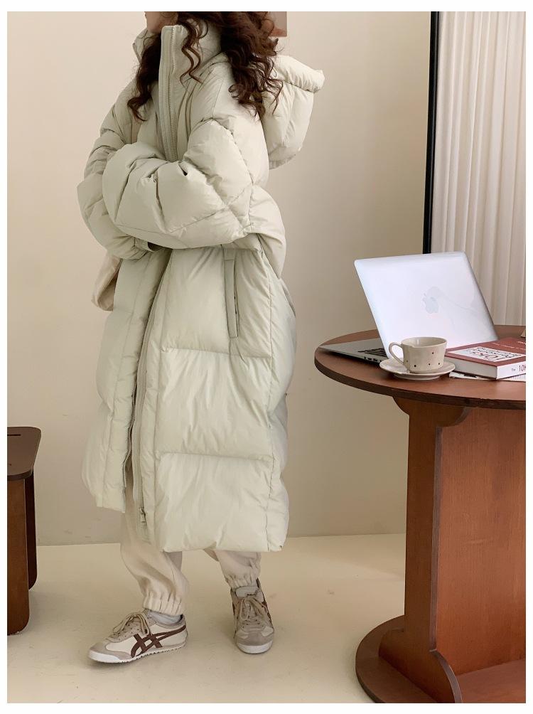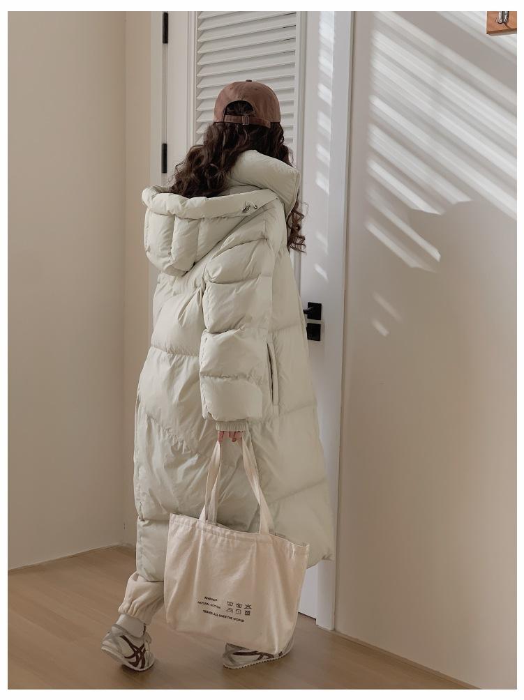 Chaqueta de plumón estilo coreano para mujer larga 2025 invierno nueva con capucha engrosada plumón de pato blanco por encima de la rodilla chaqueta cálida para estudiante talla grande