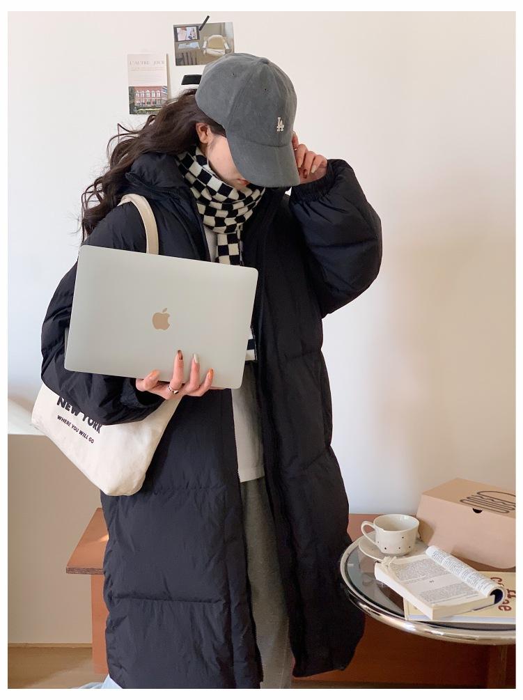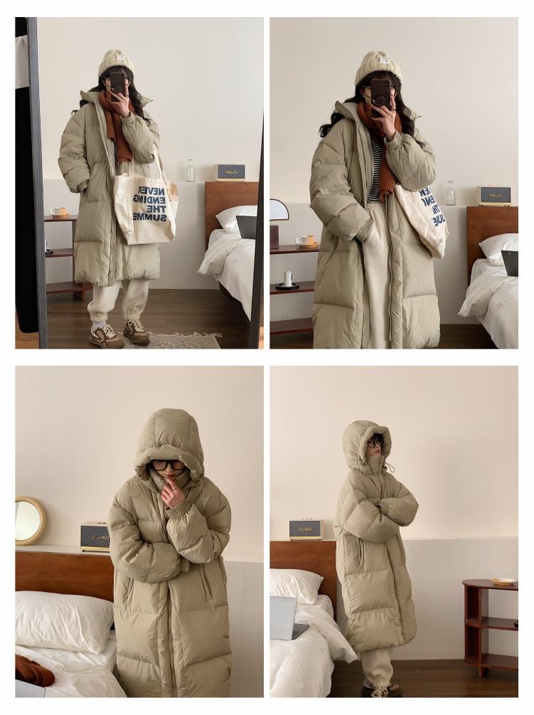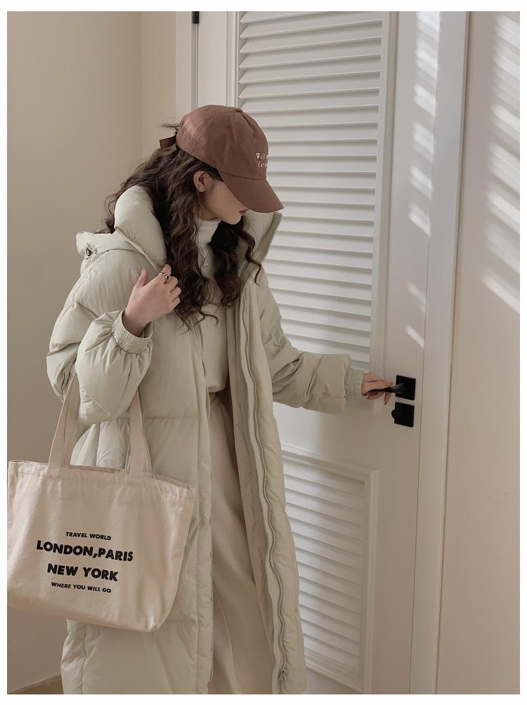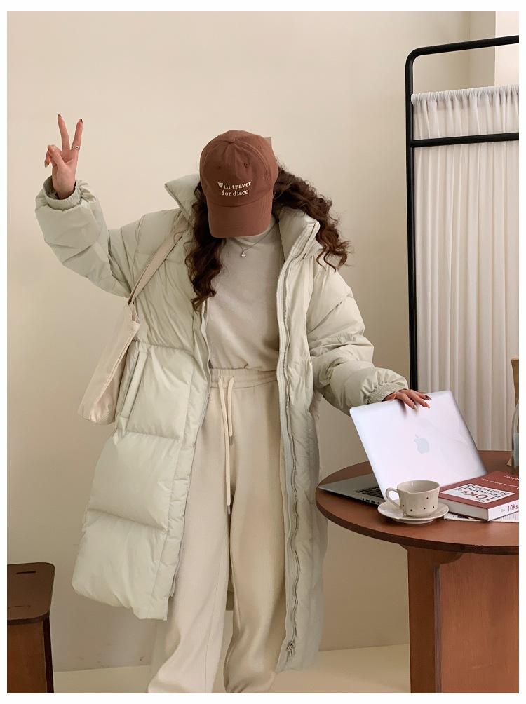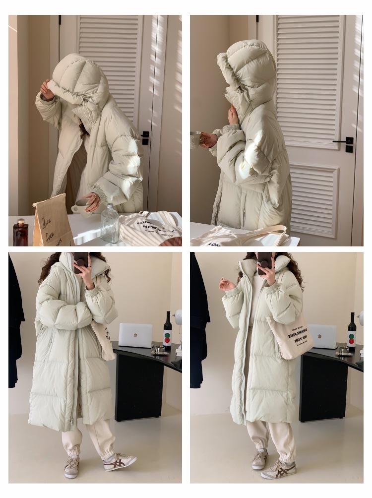 Chaqueta de plumón estilo coreano para mujer larga 2025 invierno nueva con capucha engrosada plumón de pato blanco por encima de la rodilla chaqueta cálida para estudiante talla grande