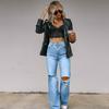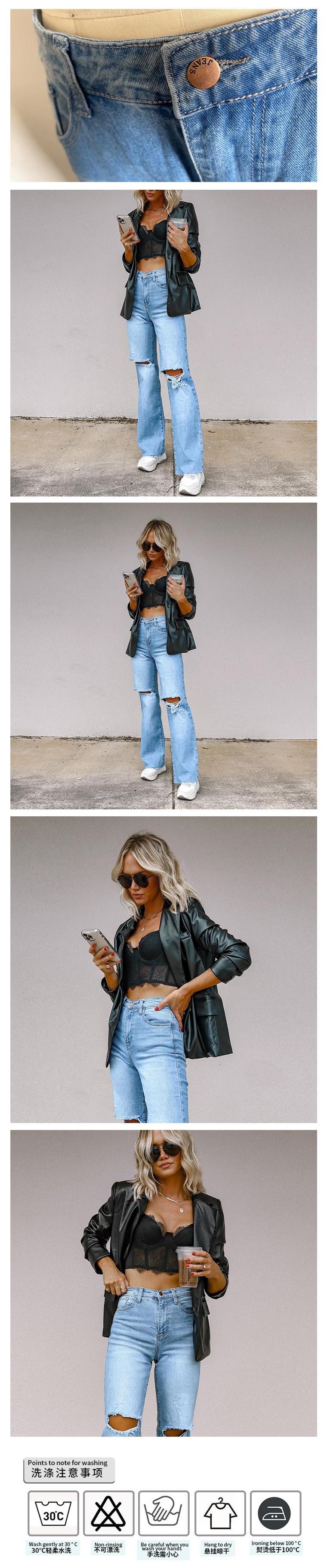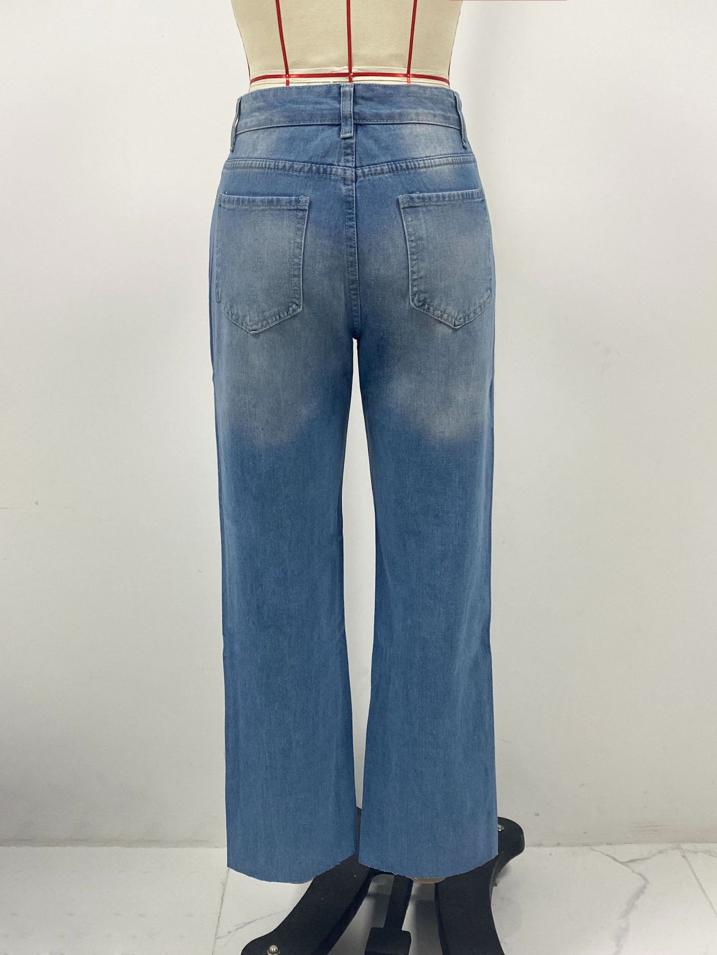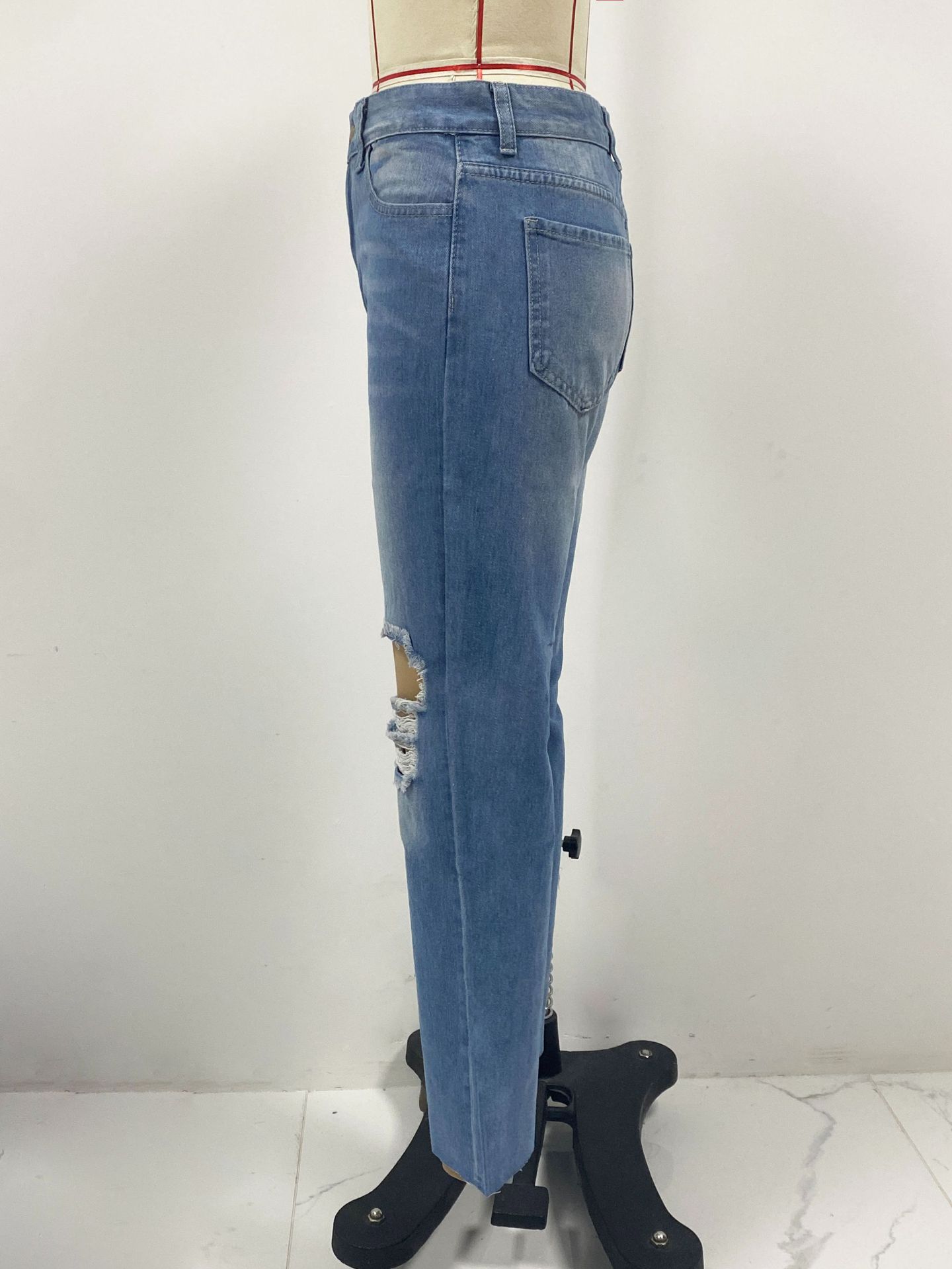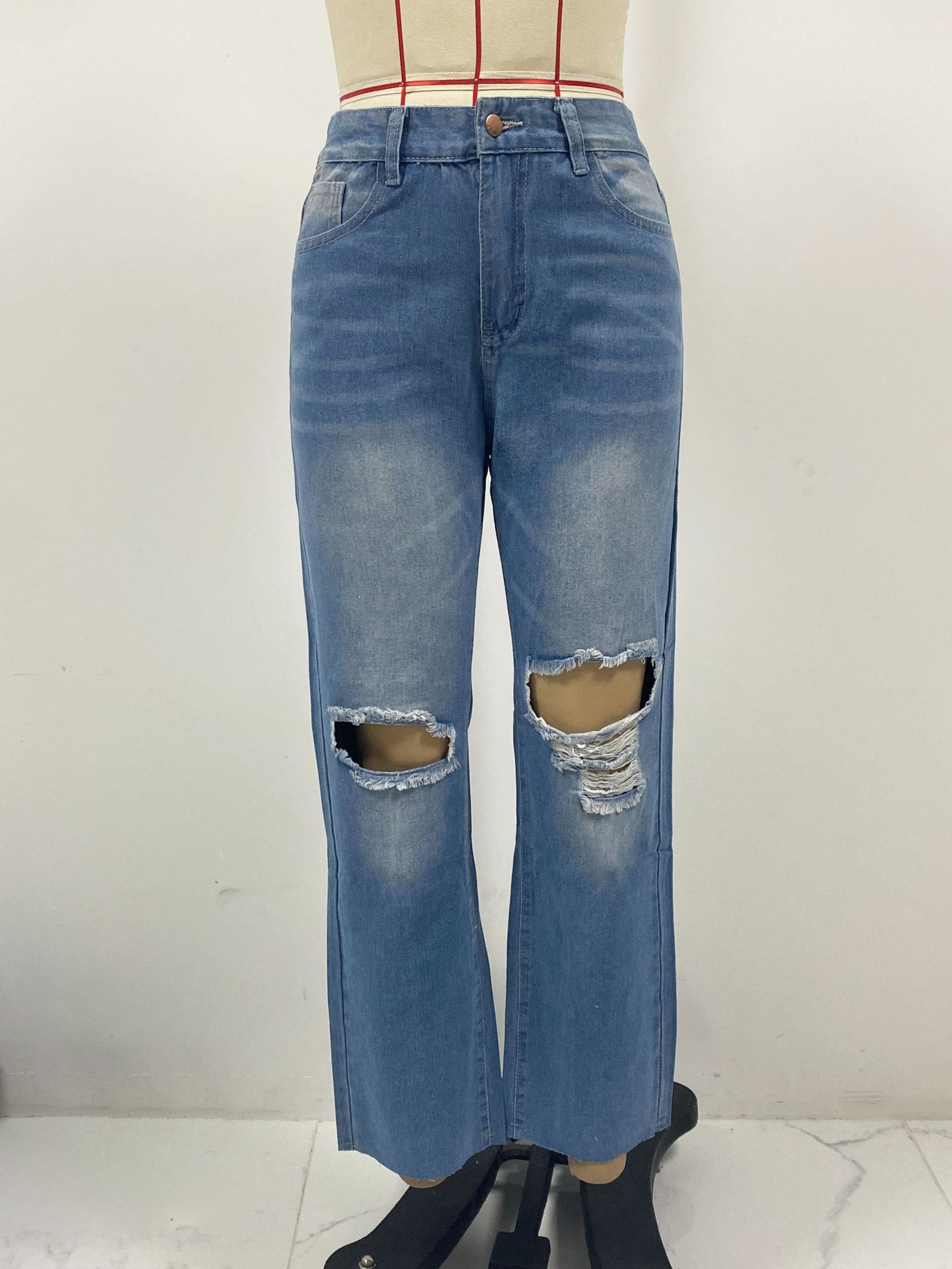 Ventas Directas de Fábrica 2025 Estación Independiente Jeans Europeos y Americanos para Mujer Rotos Adelgazantes Borde Crudo Pantalones Rectos de Pierna Ancha en Stock