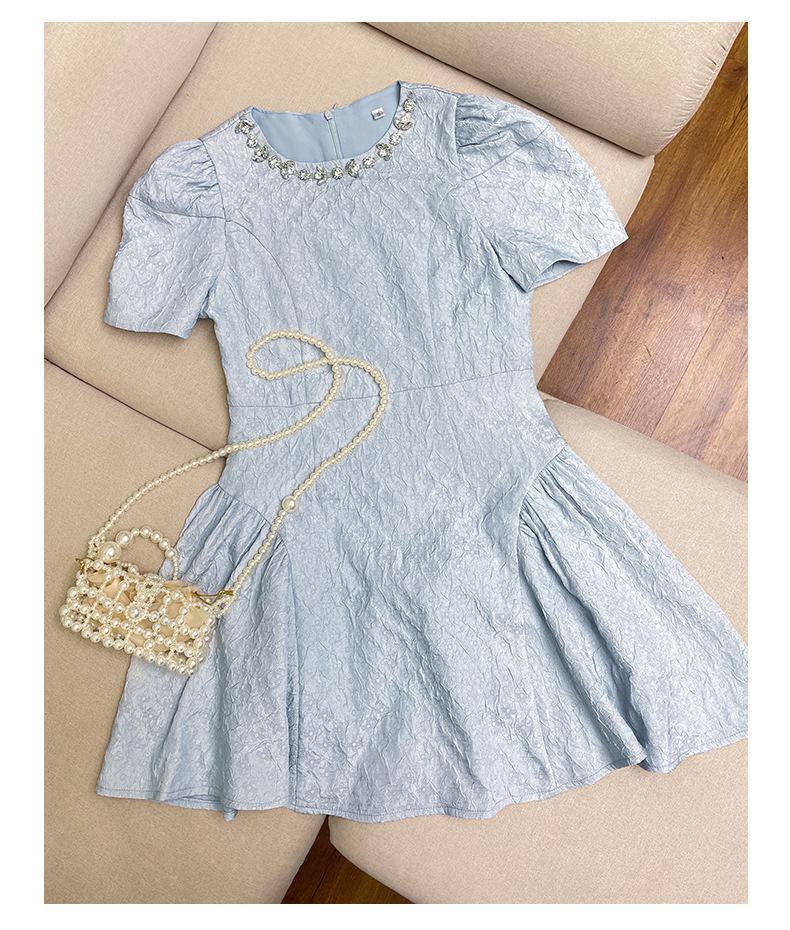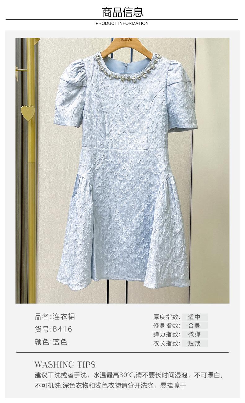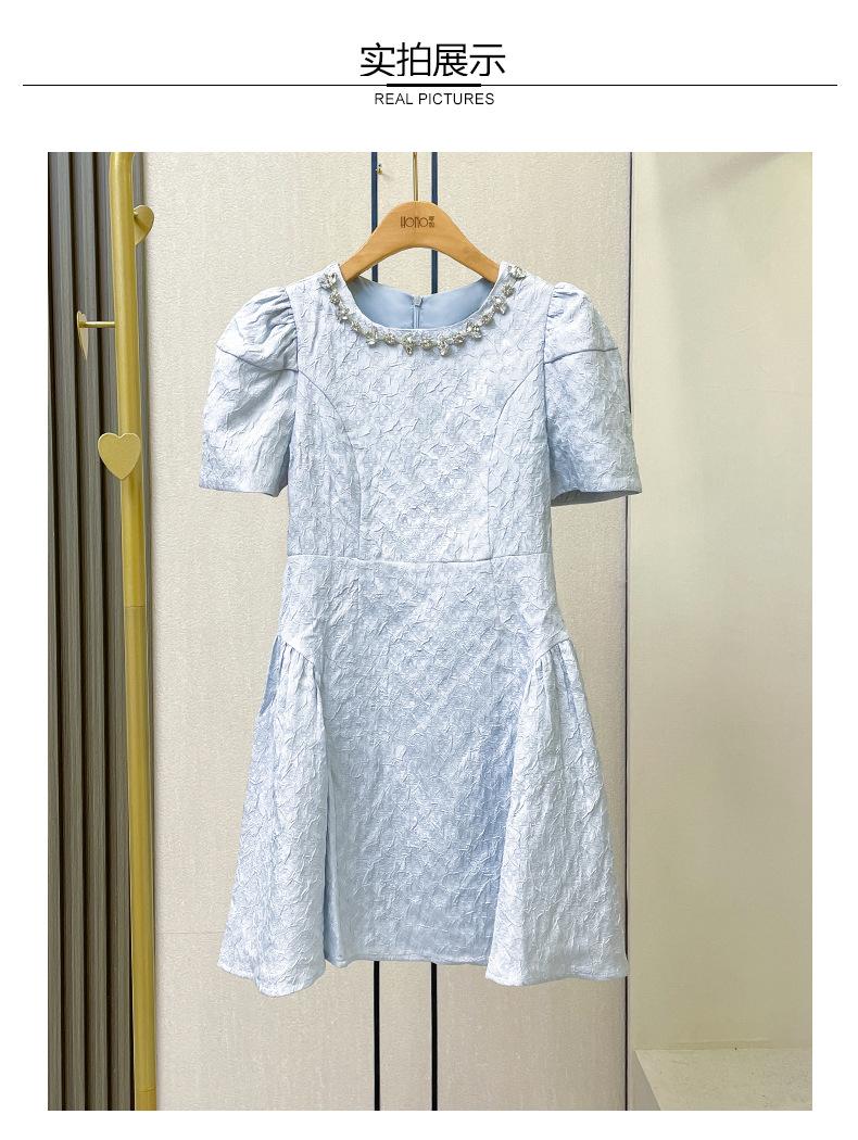 [Listo para entrega] Diseño de verano 2024 Nicho Falda azul ajustada Estilo coreano Vestido francés de alta gama línea A