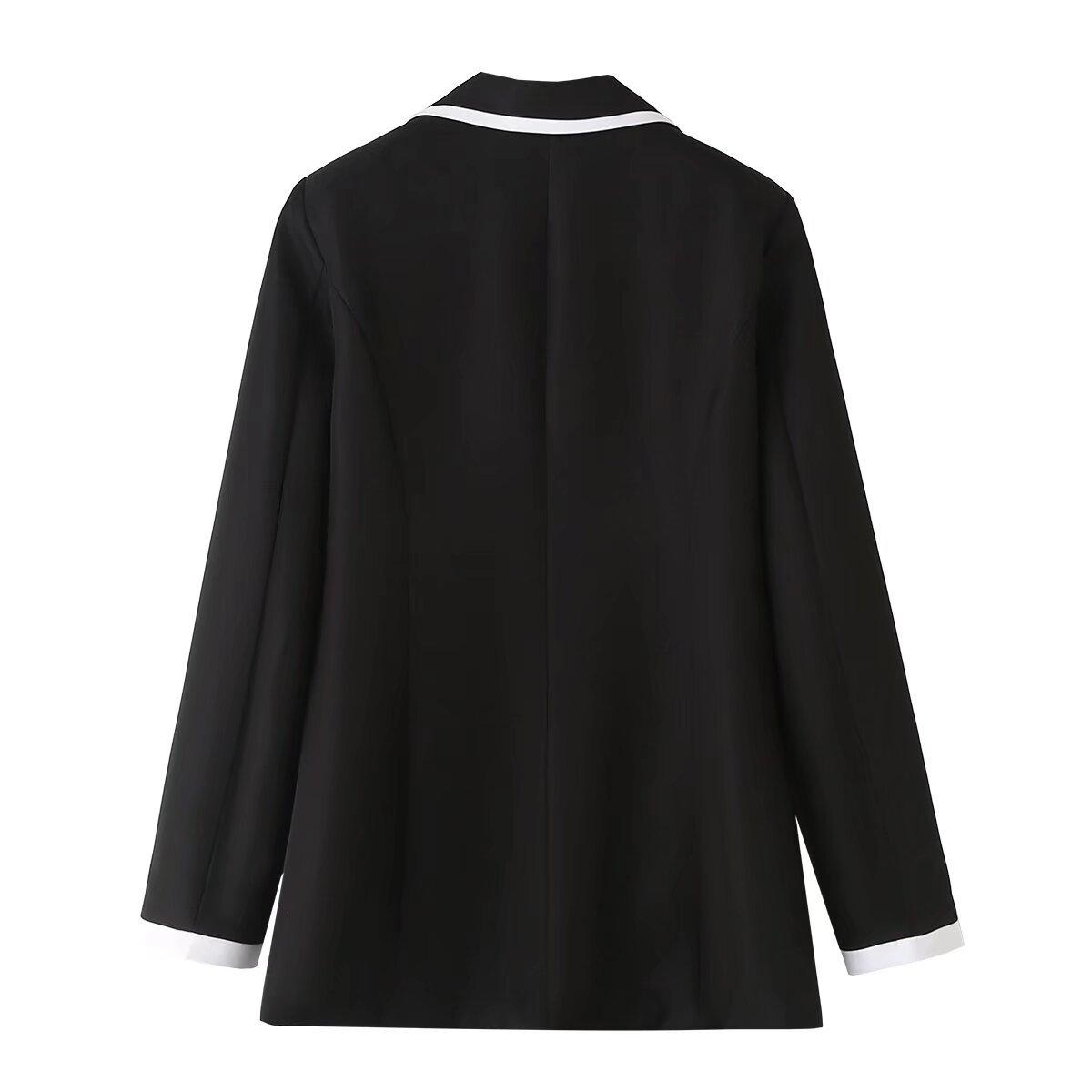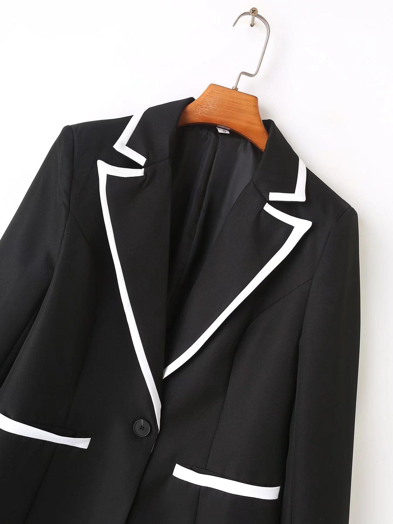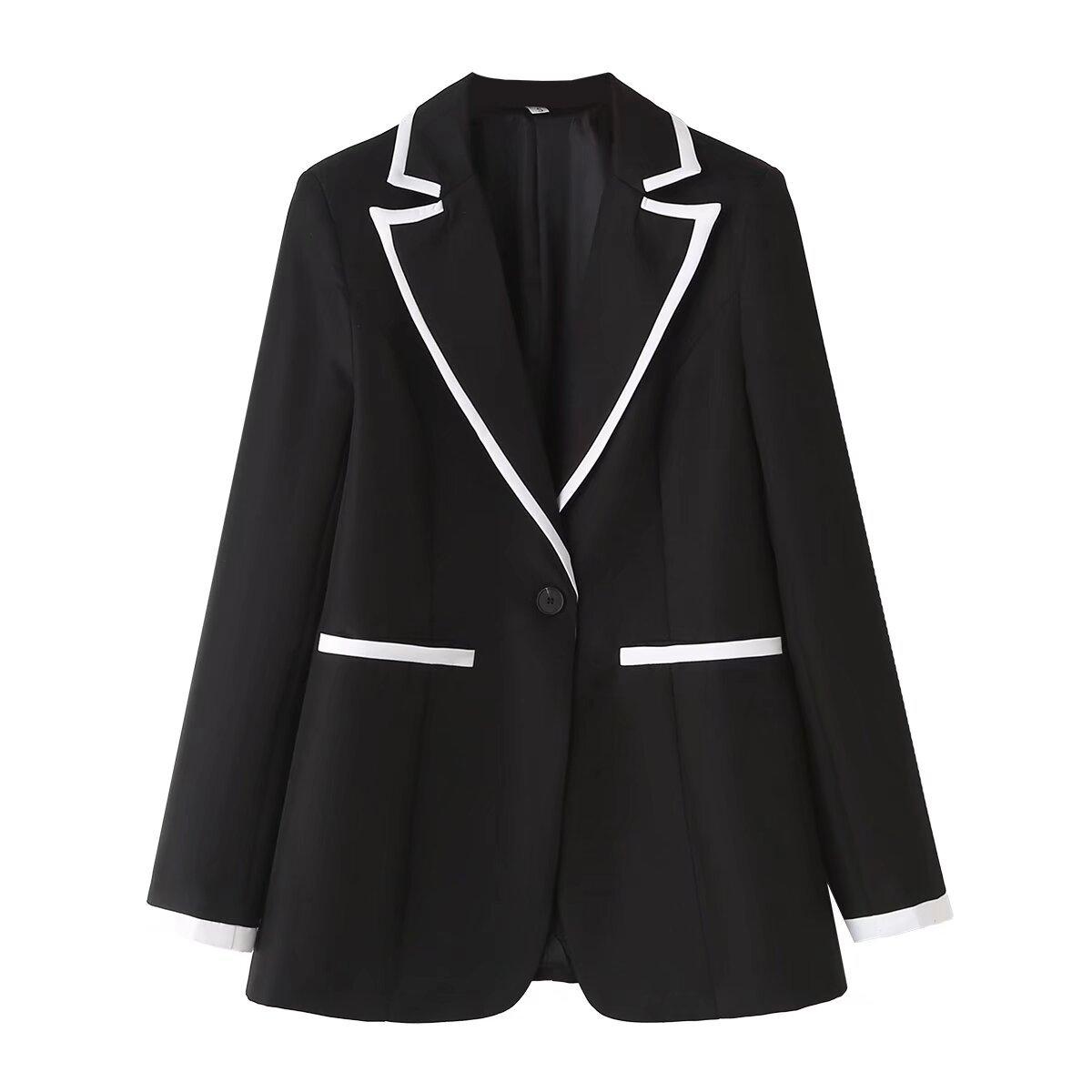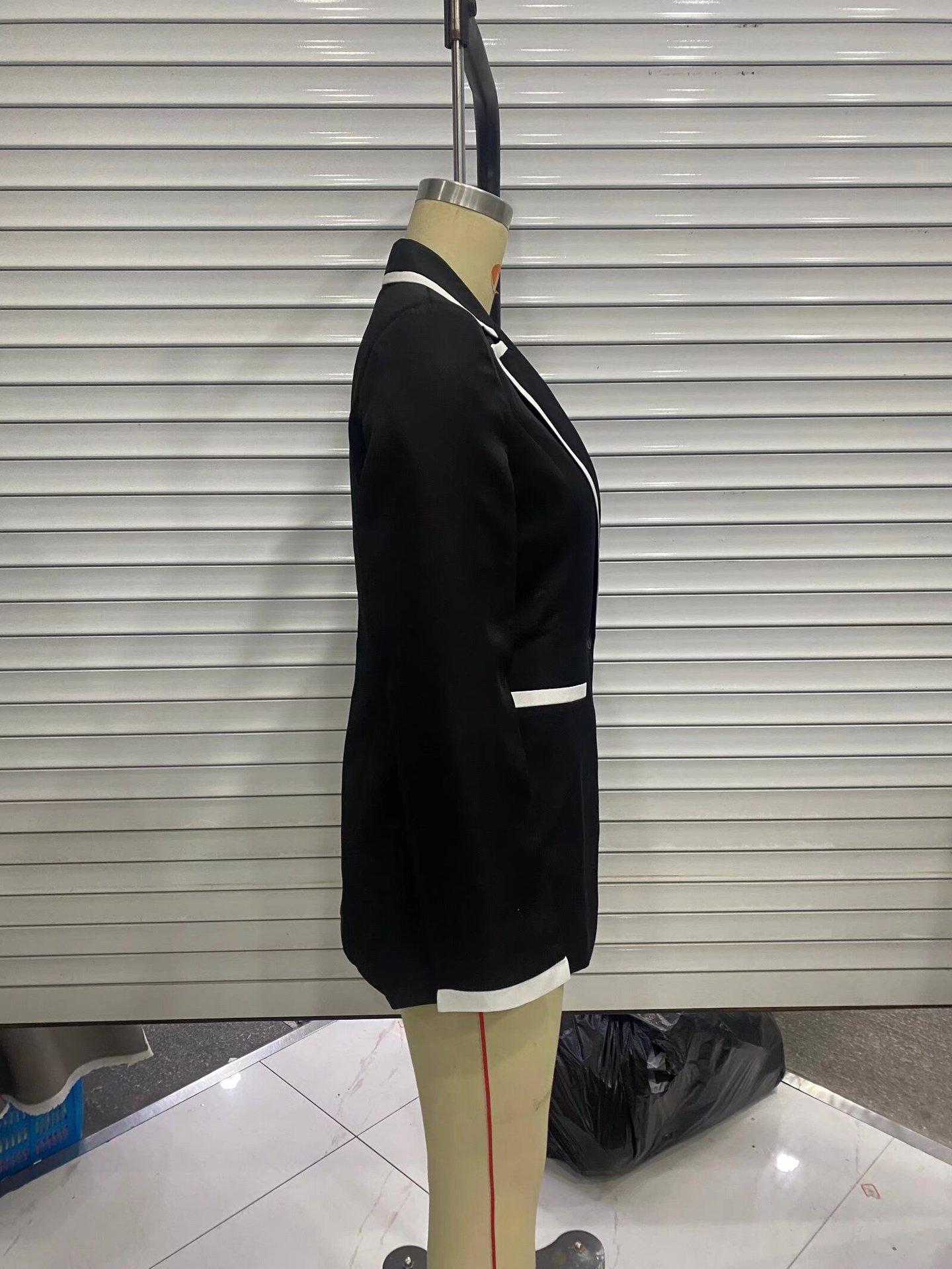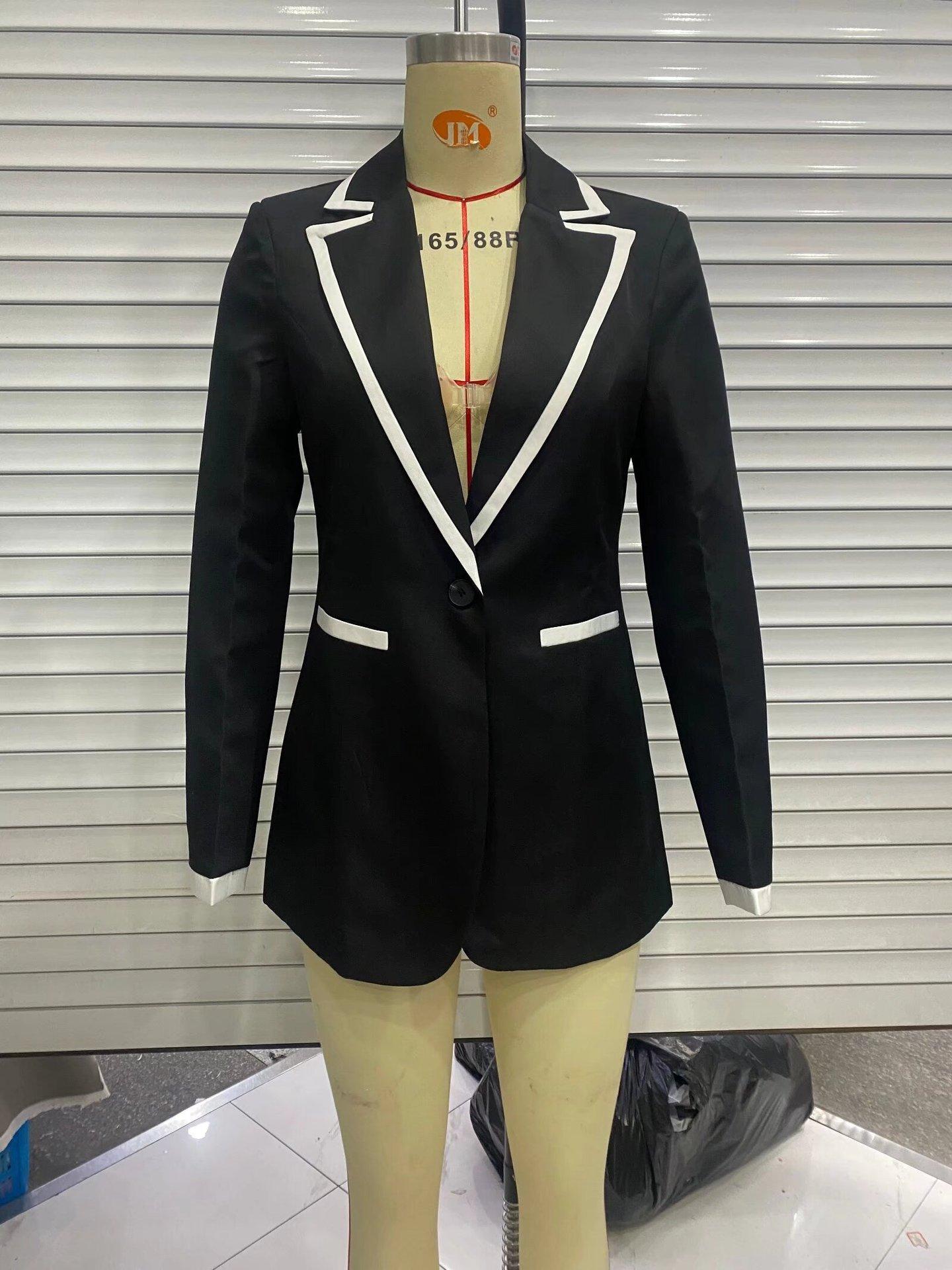 Ropa de Mujer de Comercio Exterior Transfronterizo Estilo Europeo y Americano Solapa Bolsillo Traje Bloque de Color Moda Commuter Chaqueta Holgada para Mujer B129034