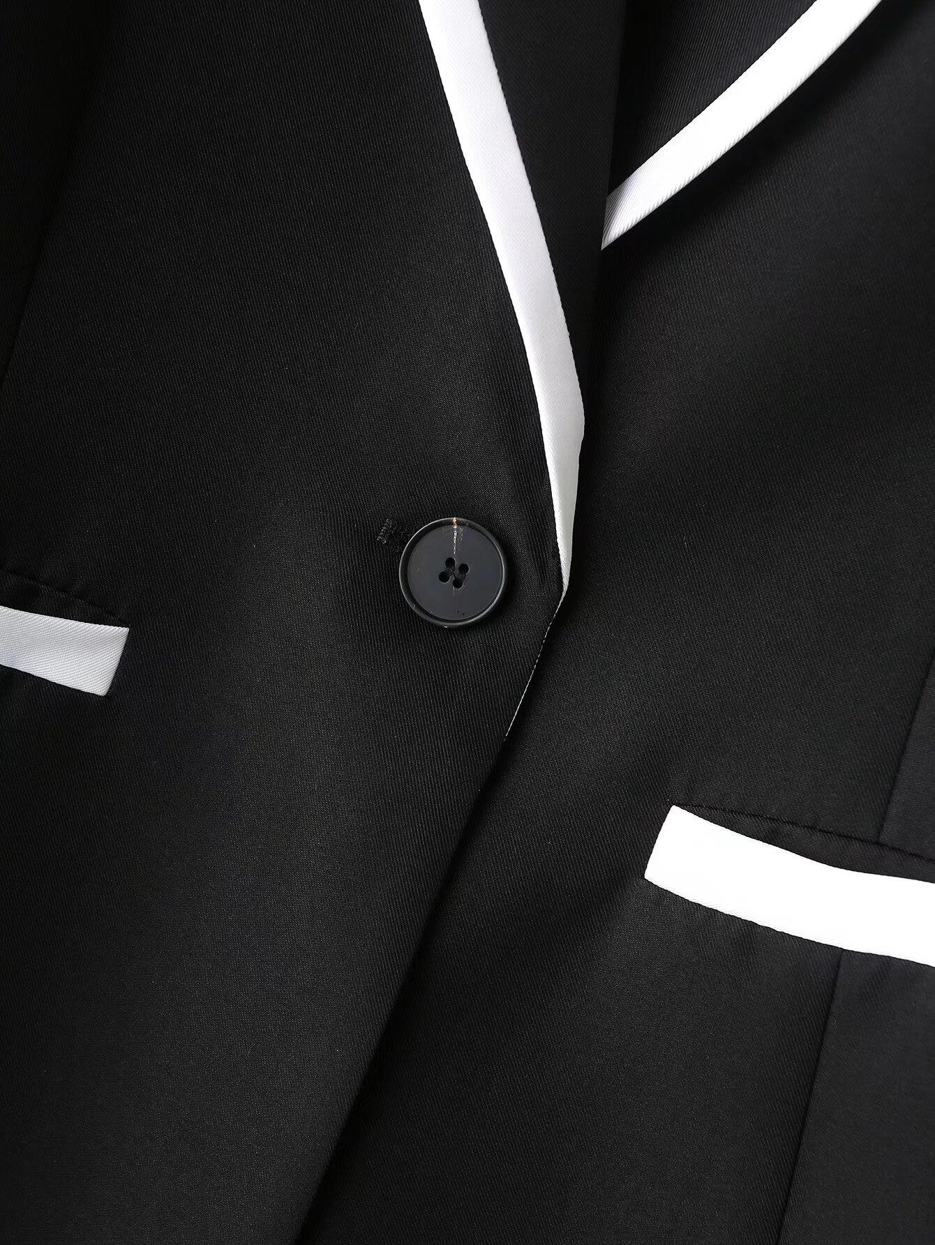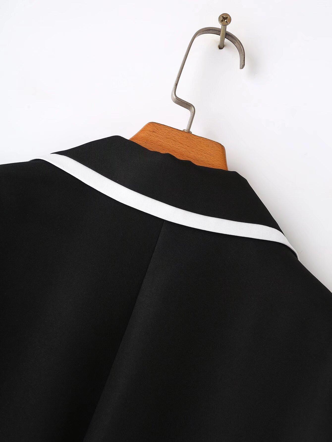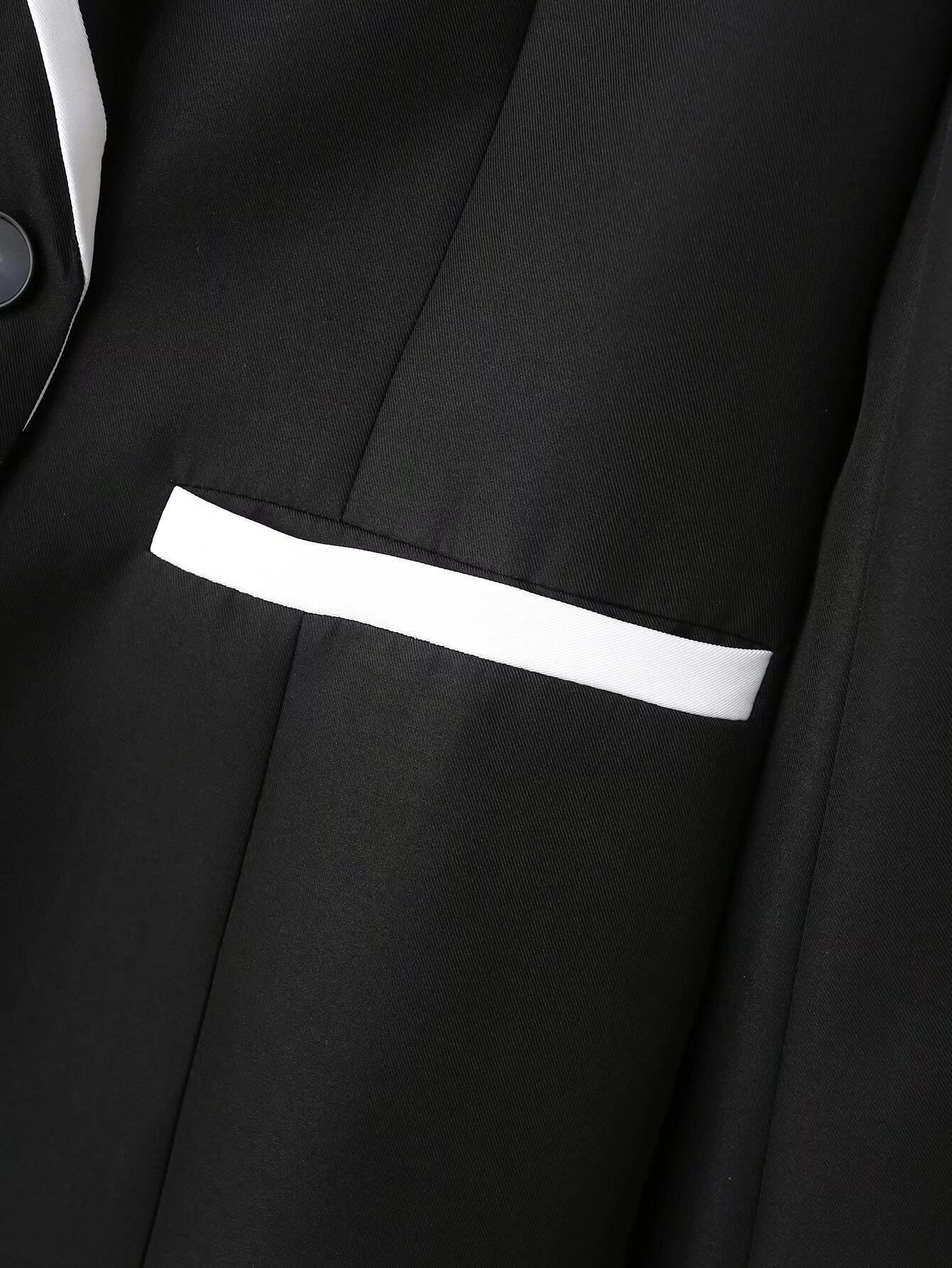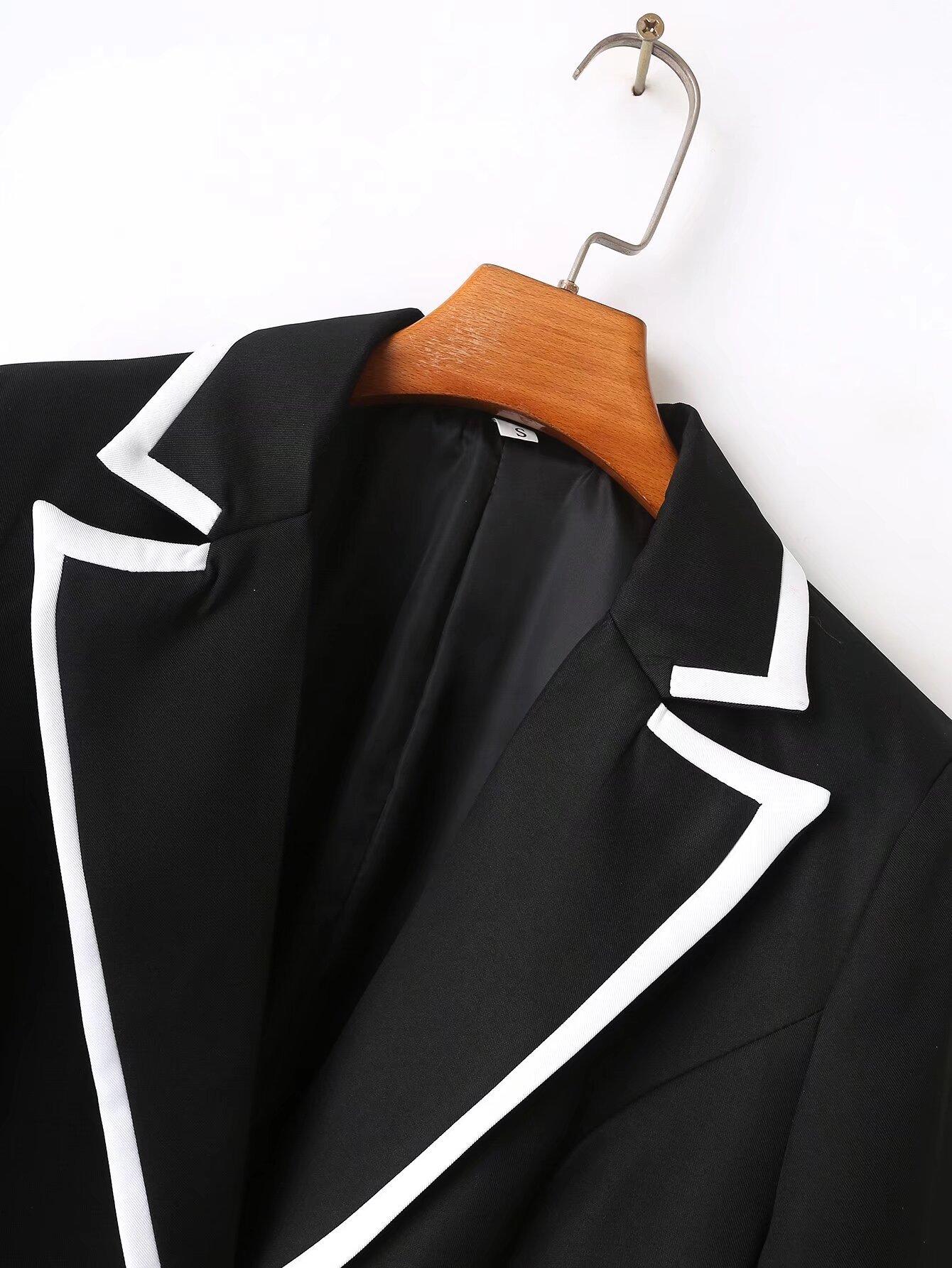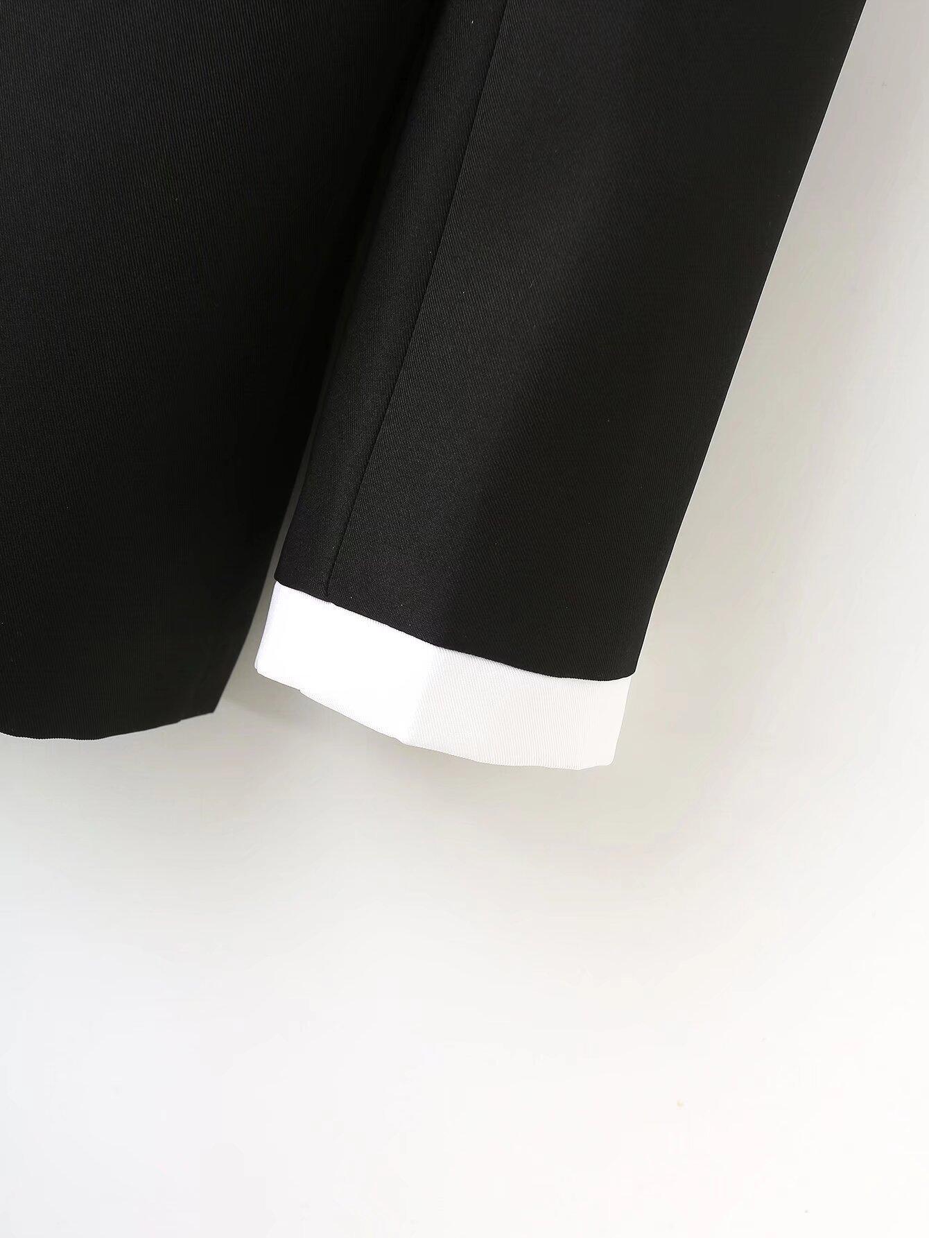 Ropa de Mujer de Comercio Exterior Transfronterizo Estilo Europeo y Americano Solapa Bolsillo Traje Bloque de Color Moda Commuter Chaqueta Holgada para Mujer B129034