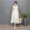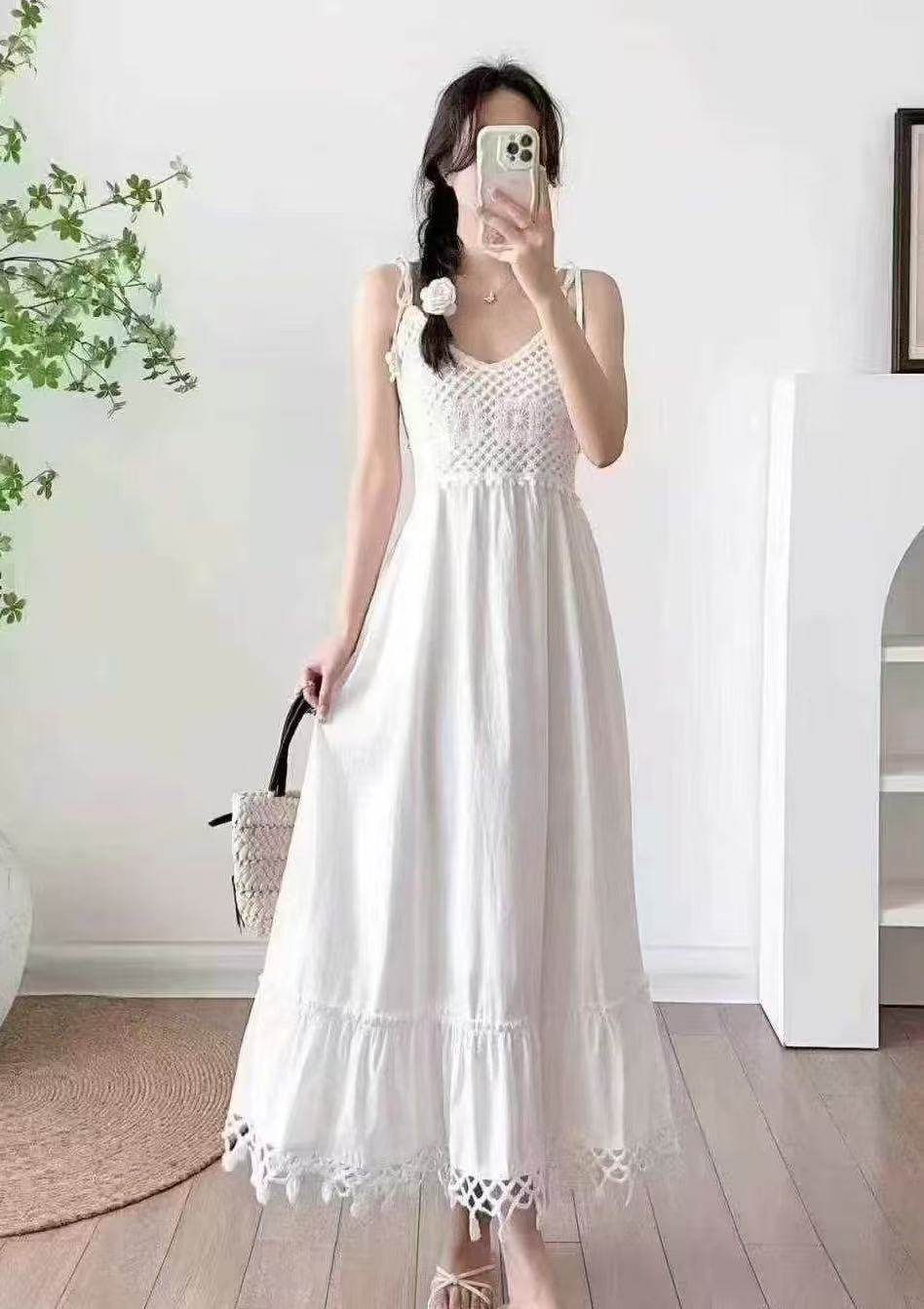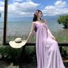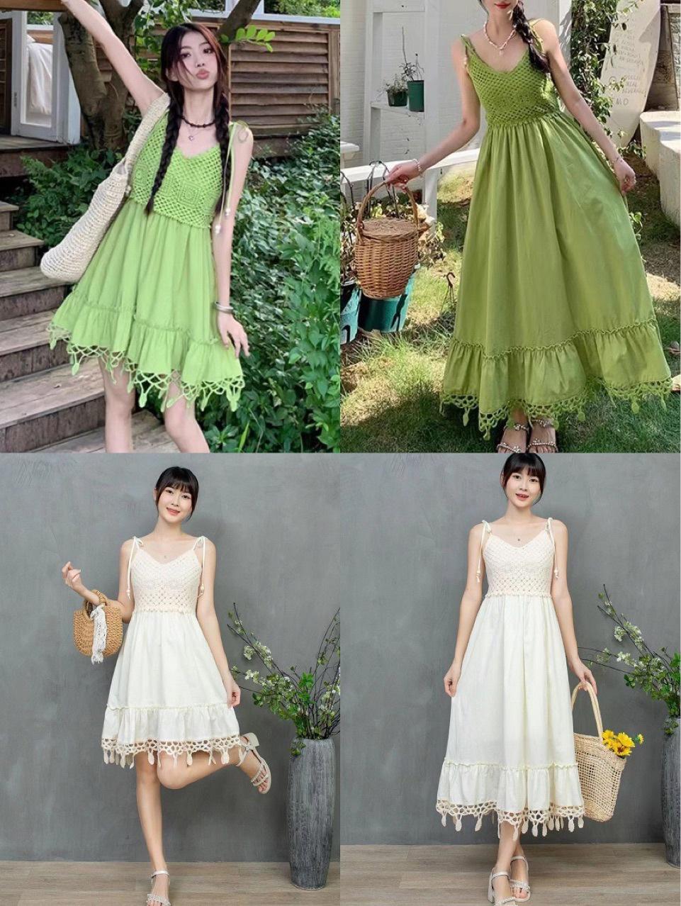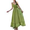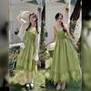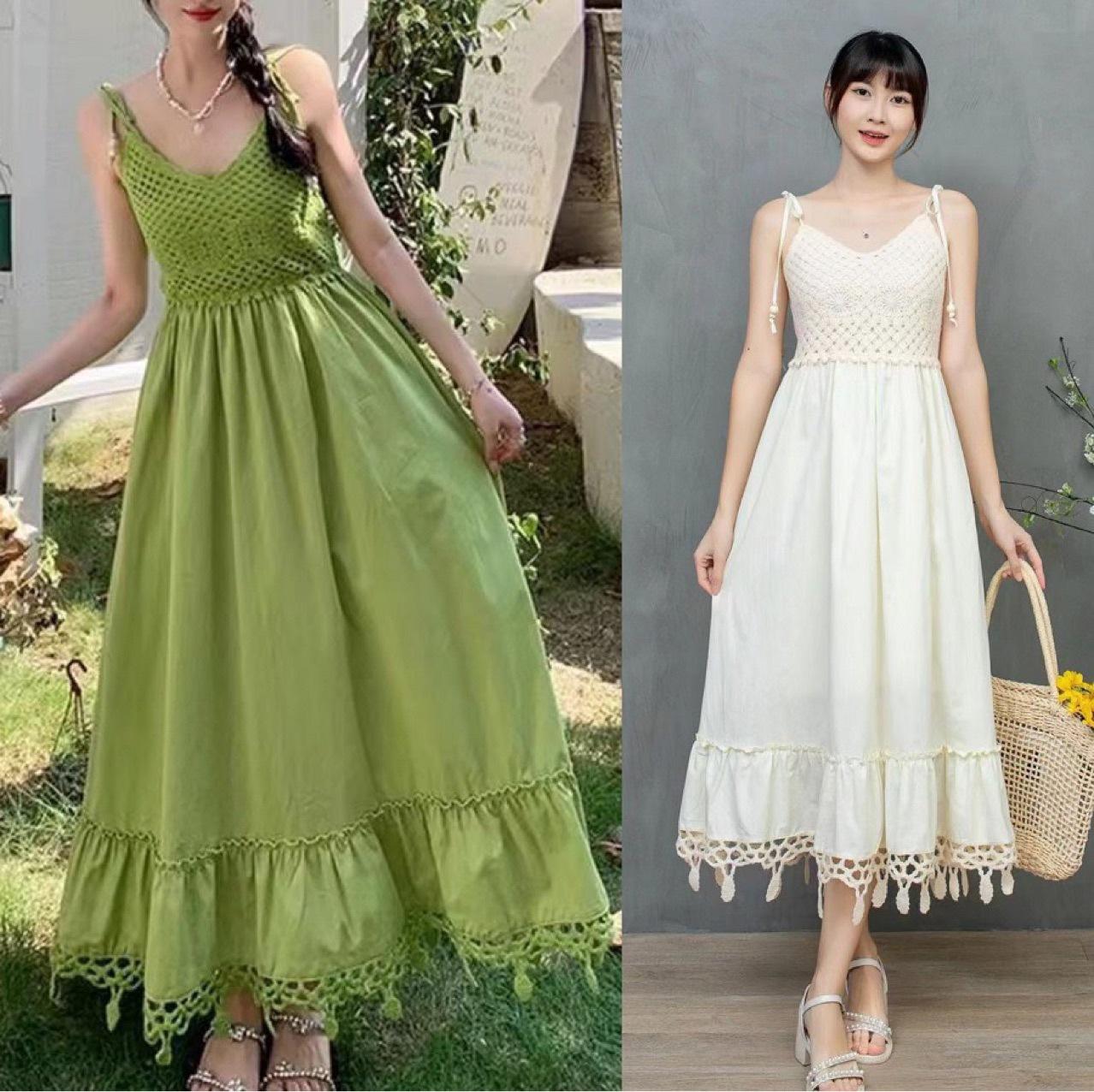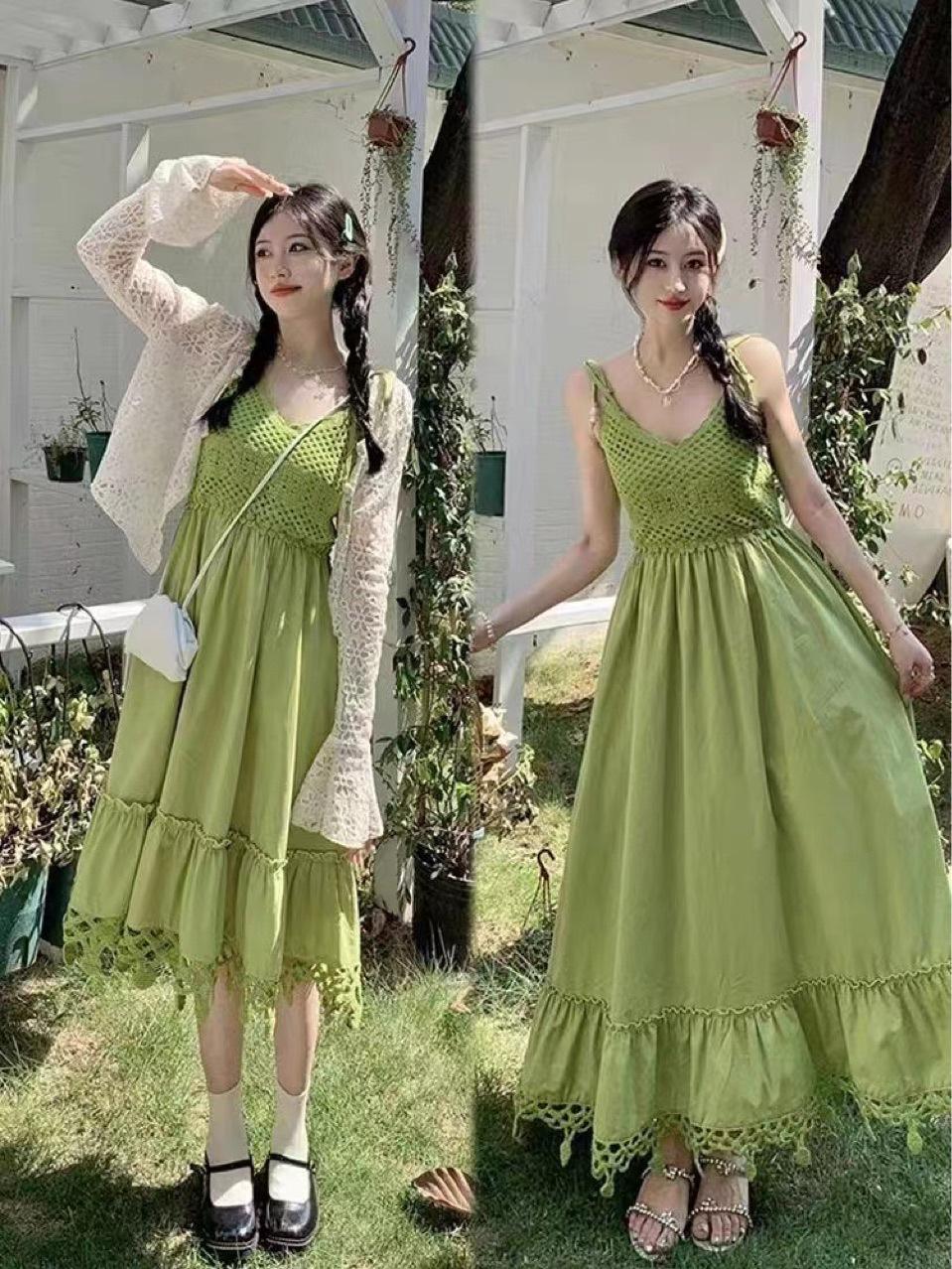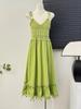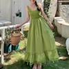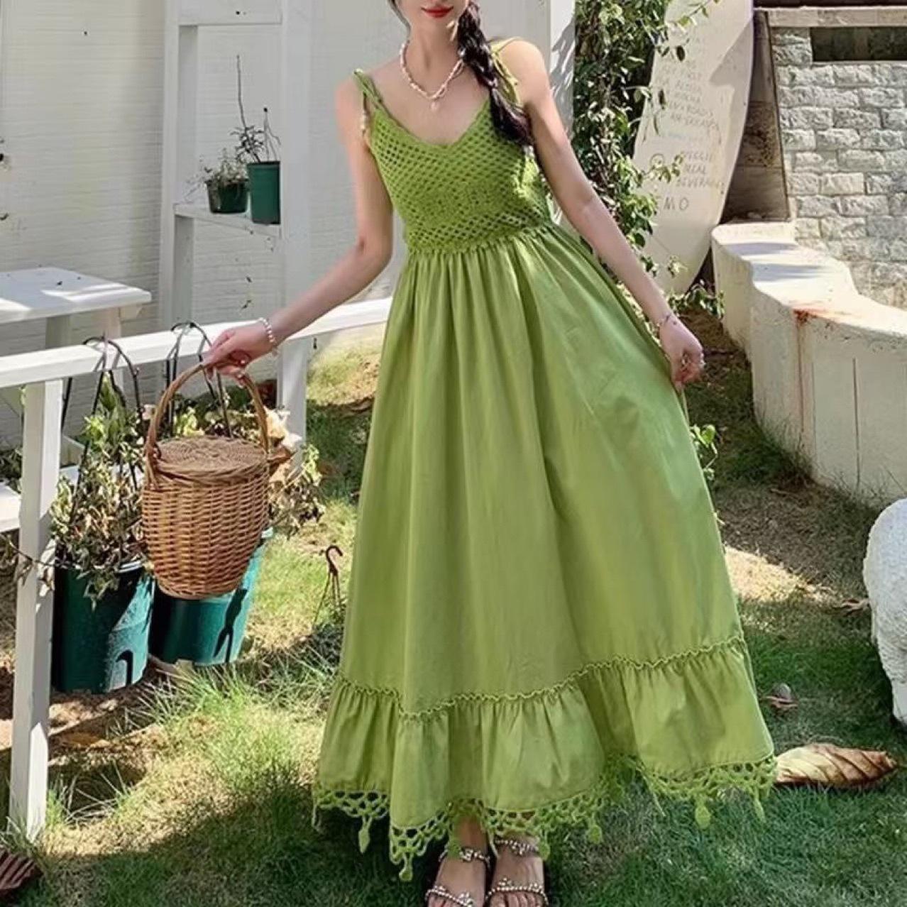 Vestido bohemio verde hueco con tirantes para mujer, ropa con borlas de primavera y otoño, falda larga estilo resort junto al mar, estilo largo