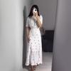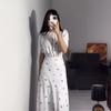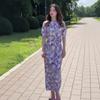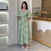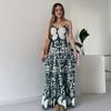 2024 Verano nuevo Europeo y Americano transfronterizo Amazon transfronterizo cuello redondo moda estampado plisado cintura alta vestido largo para mujer