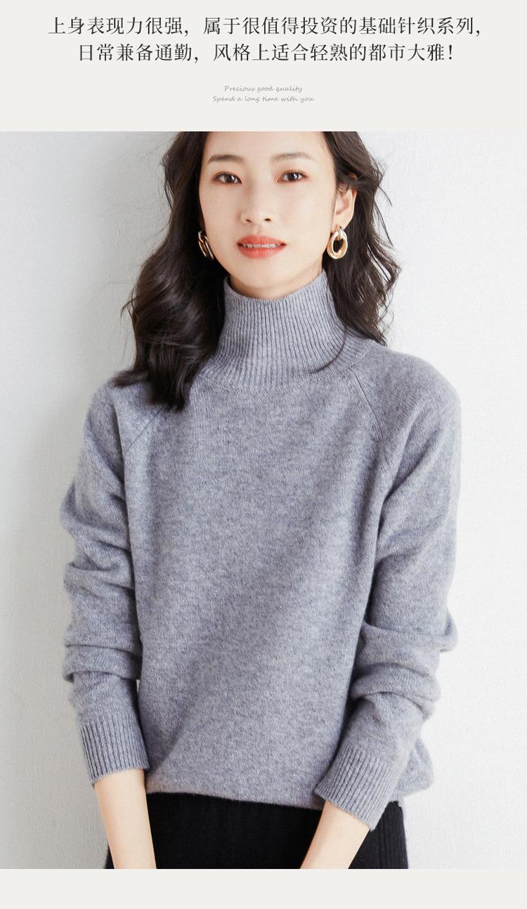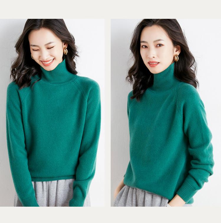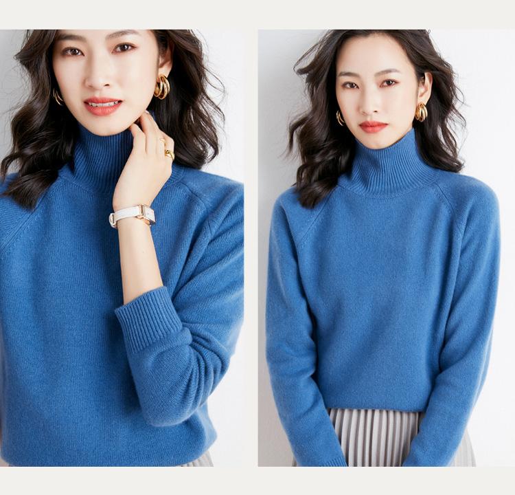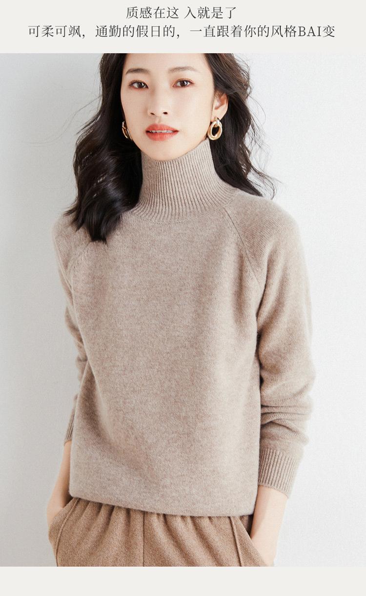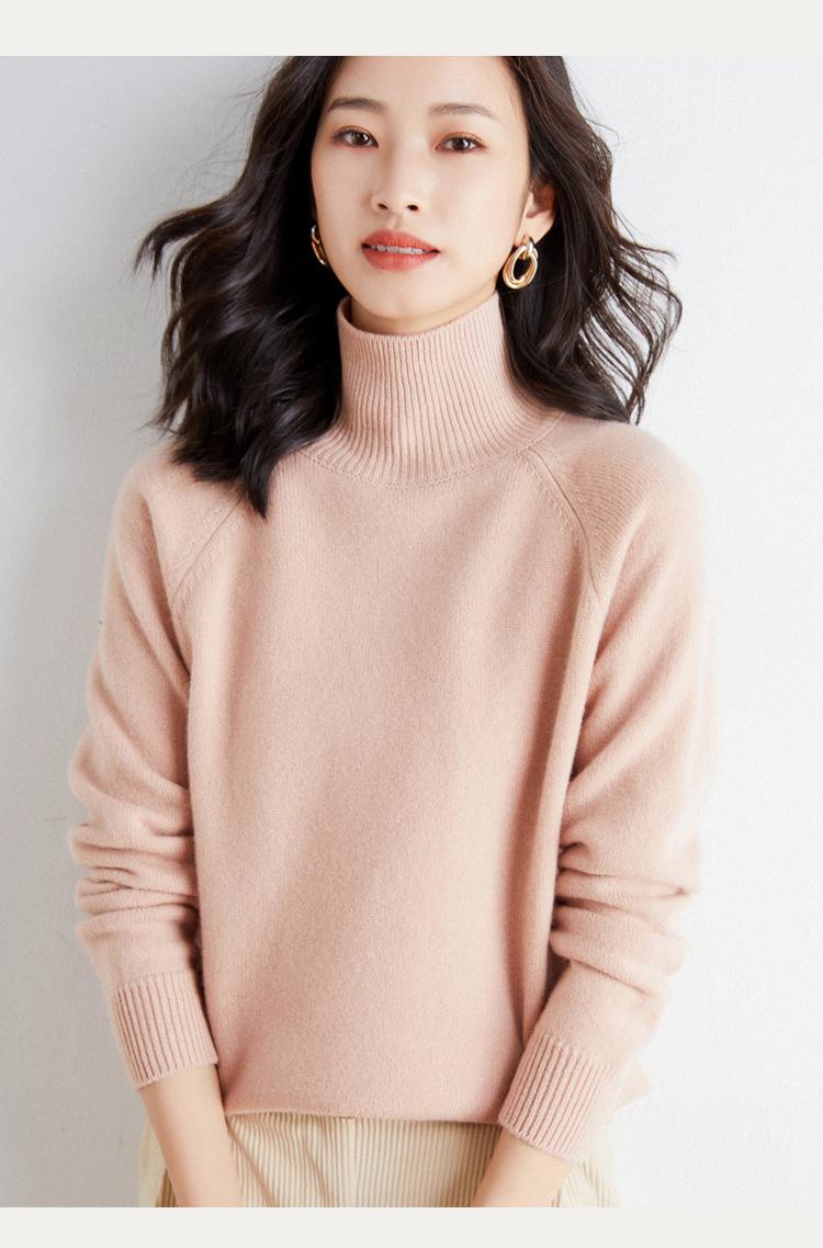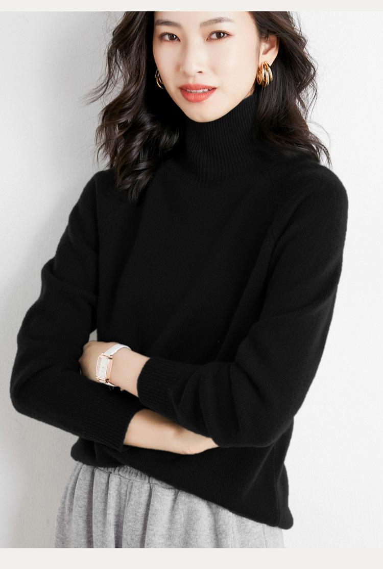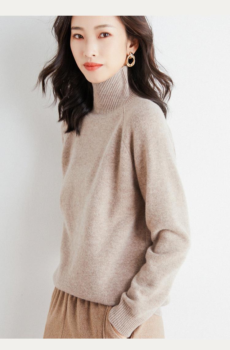 Camisa de lana con cuello alto para mujer, suéter de punto con cuello de pila ajustado de estilo coreano, top de mujer, suéter de color sólido, tendencia de otoño