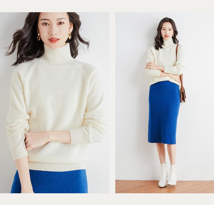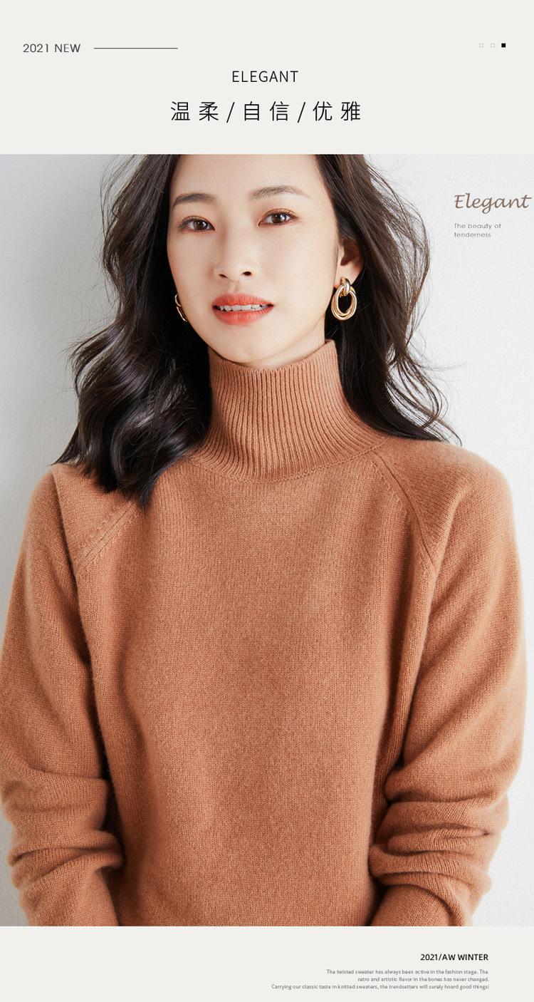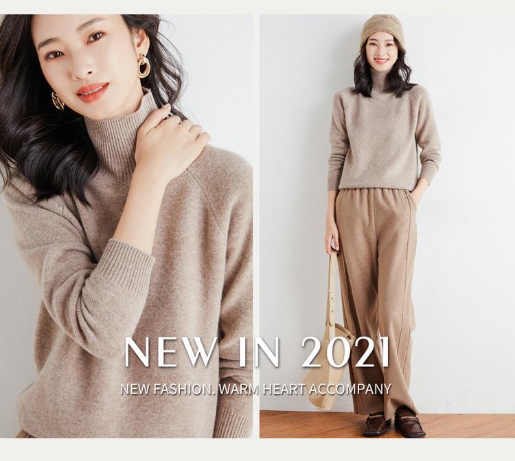 Versión coreana 2021 de jersey de mujer, camisa de cuello alto, suéter de punto de moda ajustado de color sólido, suéter de cuello de pila delgado para mujer