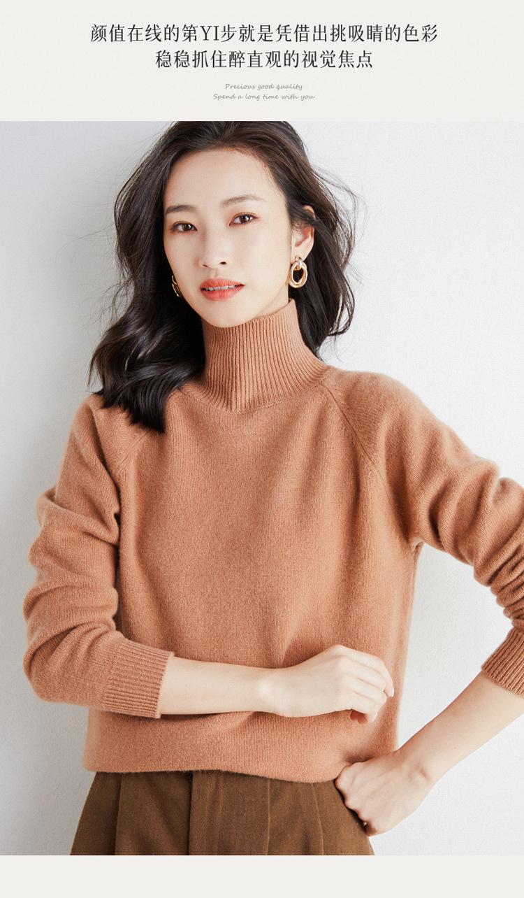 Camisa de cuello alto medio modal para mujer, suéter de punto nuevo de otoño, suéter de manga larga para mujer
