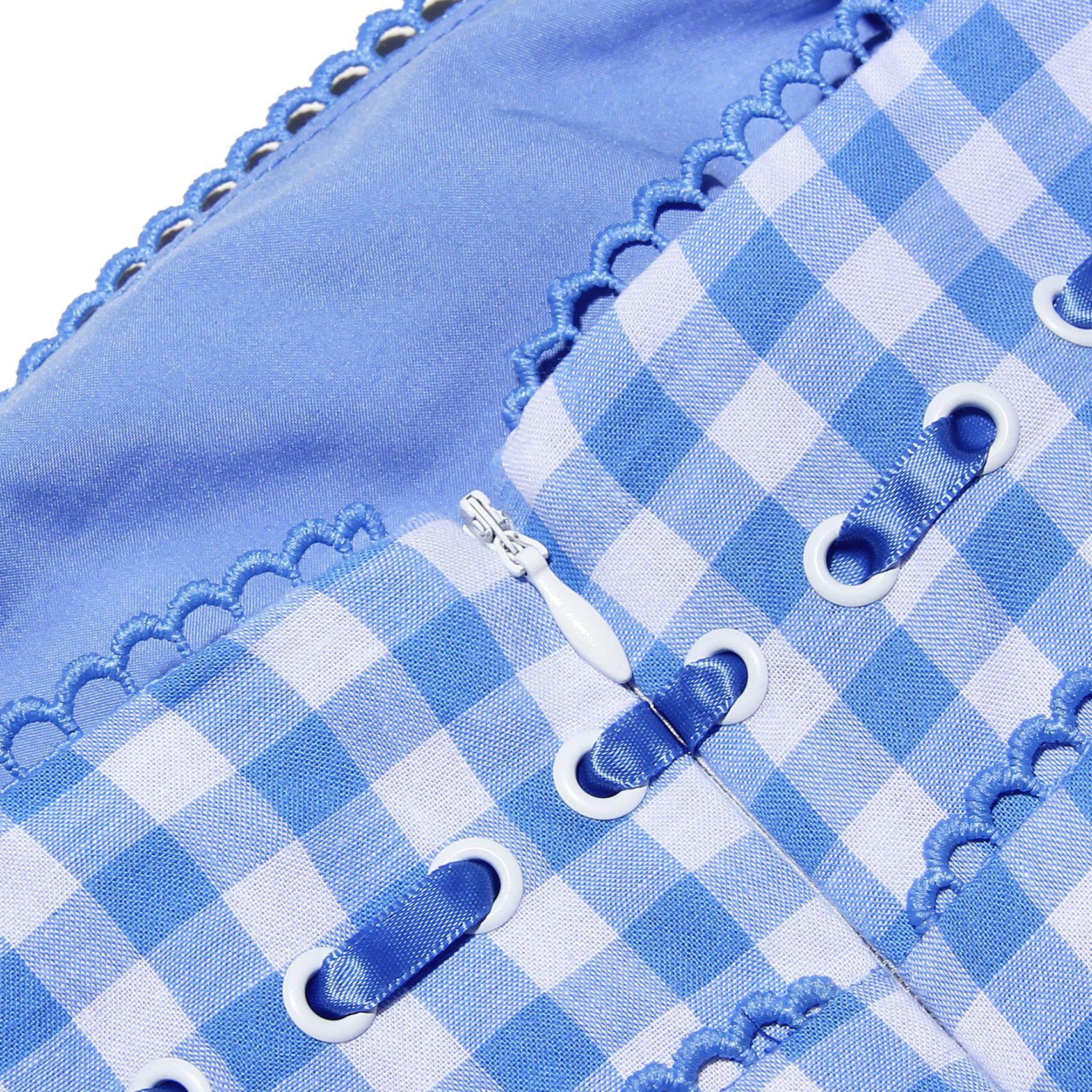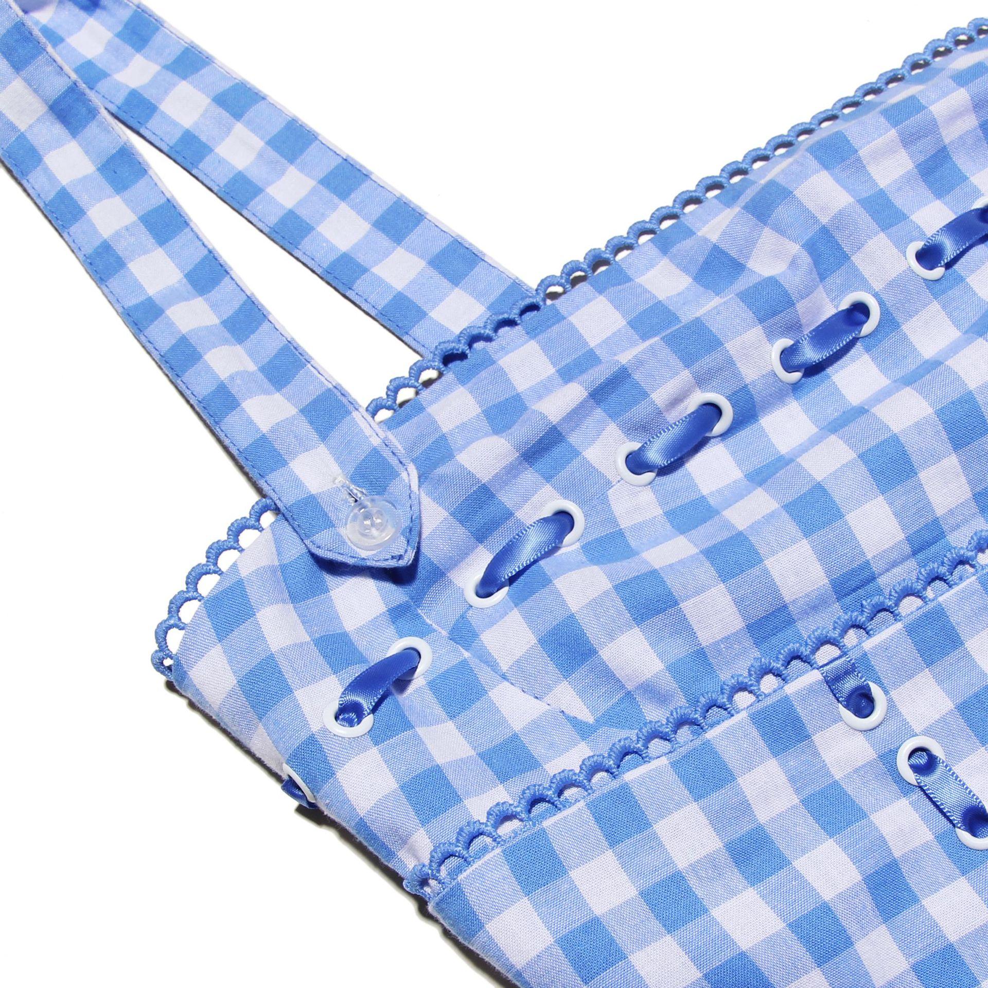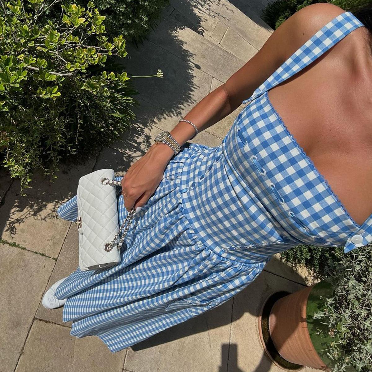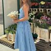 Vestido de verano de alta gama para mujer, estilo pastoral, con falda de longitud media y cuadros azules.