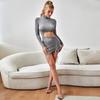 Ropa Europea y Americana de Otoño e Invierno 2024 Vestido Sexy de Terciopelo de Cintura Hueca Plisado Slim Cuello Alto Manga Larga