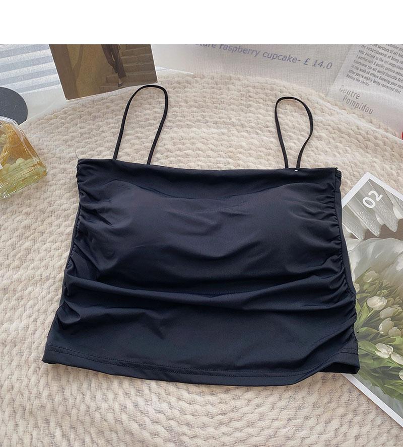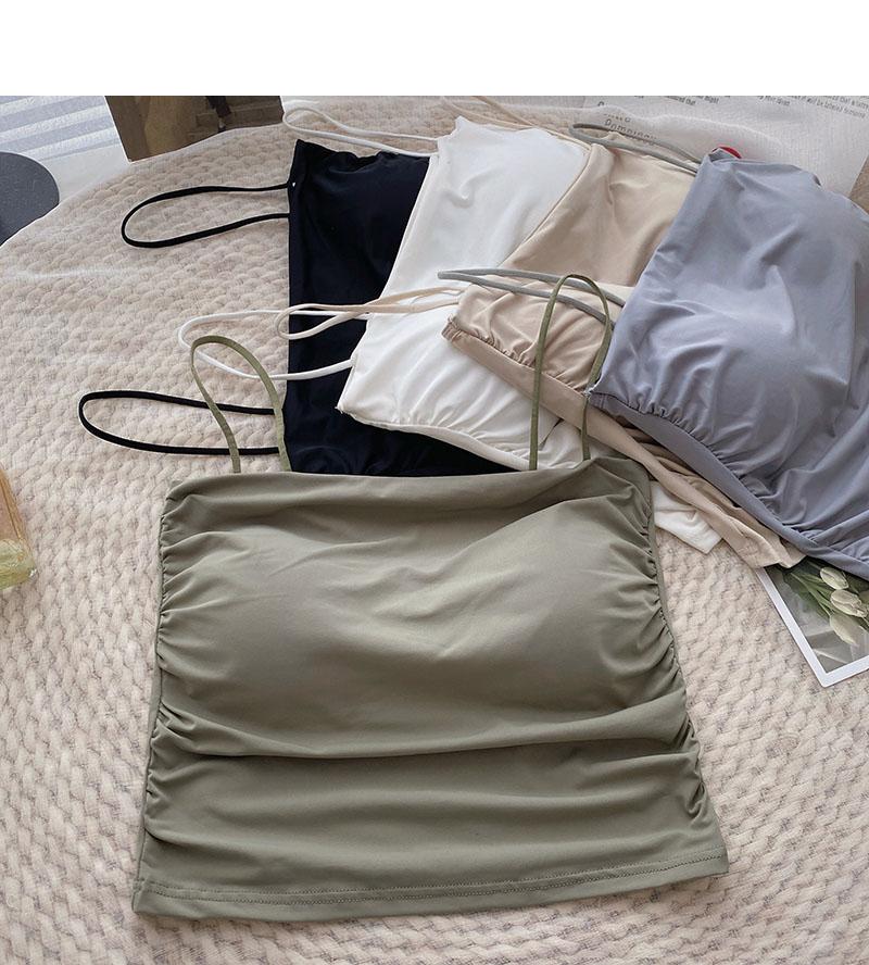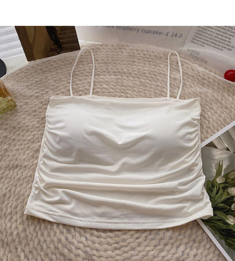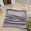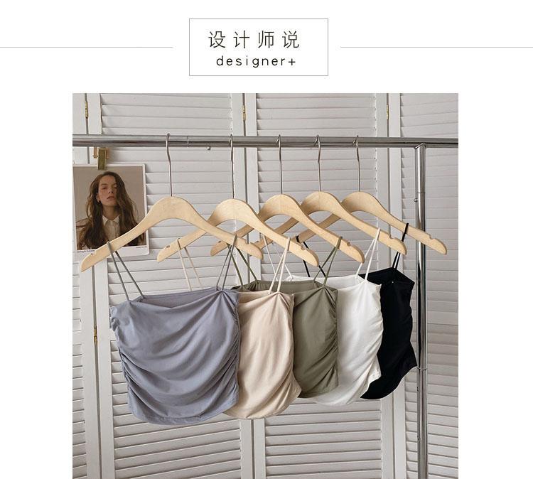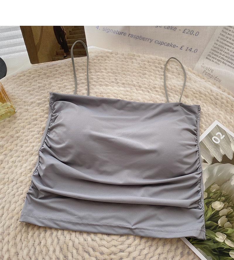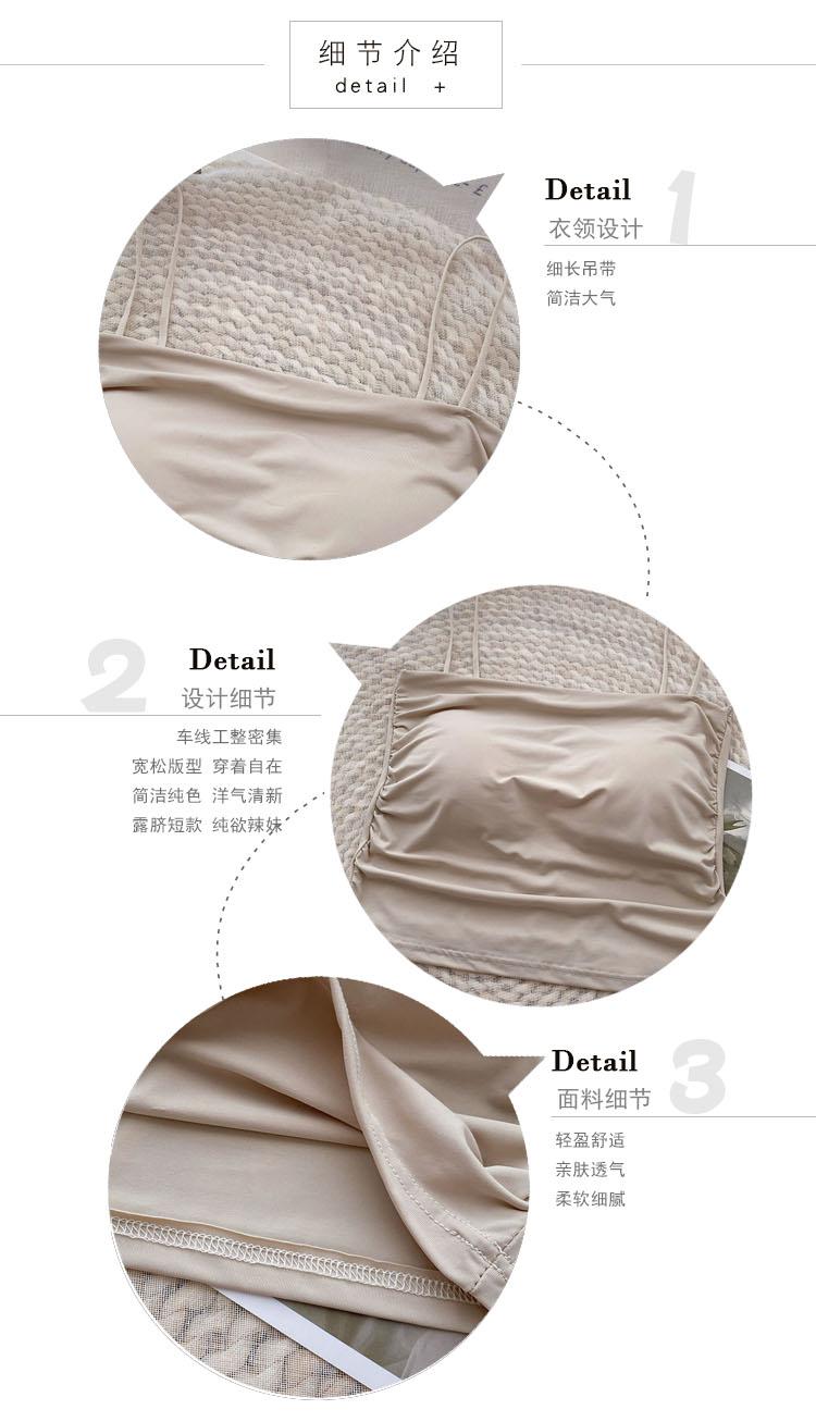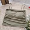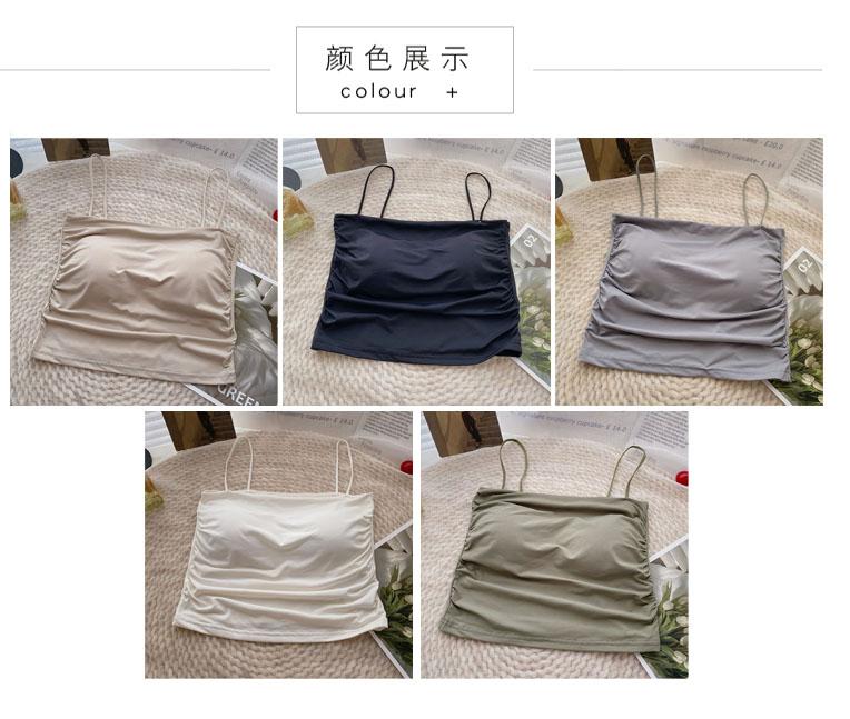Verano 2022 Nuevo Camisola Corta Plisada de Seda de Hielo con Almohadilla en el Pecho para Mujer, Ajustada, Versátil, Espalda Hermosa, Moderna
