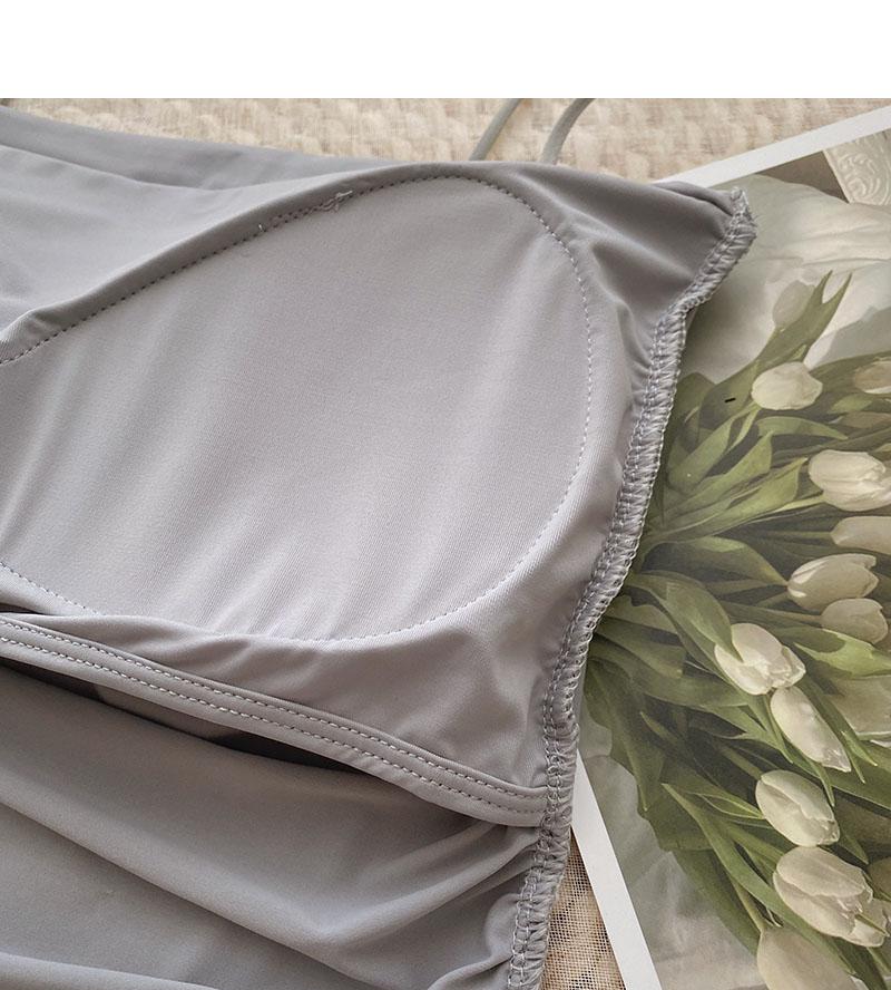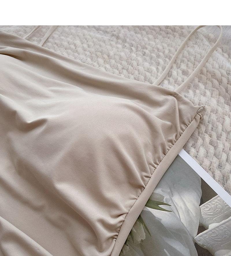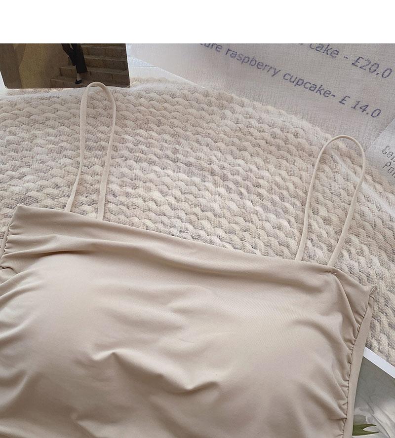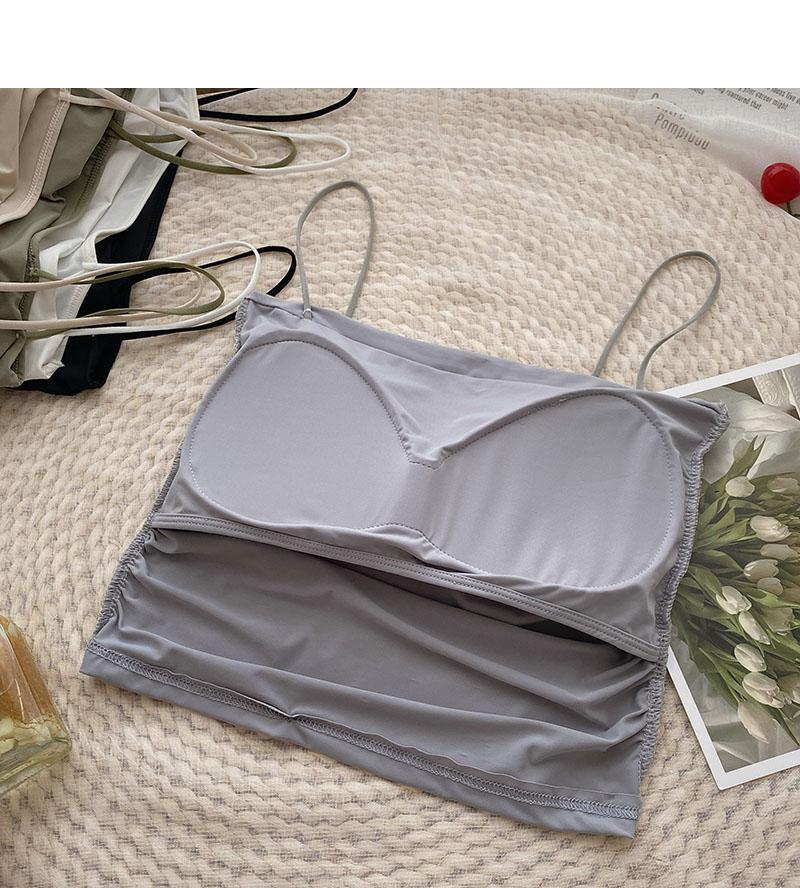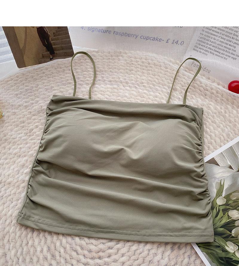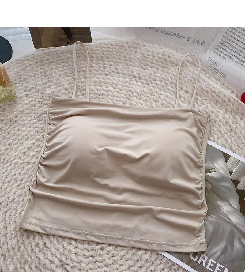 Verano 2022 Nuevo Camisola Corta Plisada de Seda de Hielo con Almohadilla en el Pecho para Mujer, Ajustada, Versátil, Espalda Hermosa, Moderna