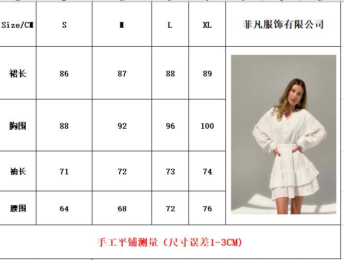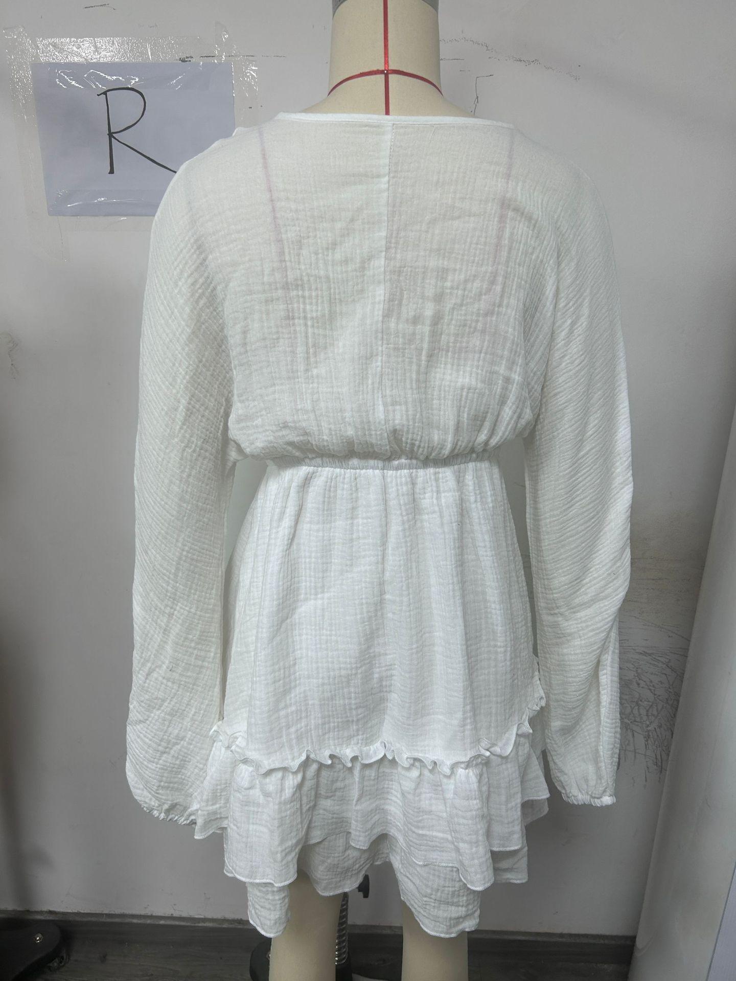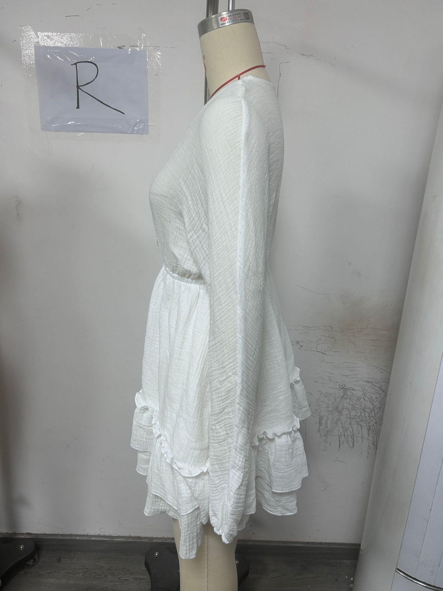 Vestido de verano nuevo de manga larga de color sólido con cuello en V y falda acampanada adelgazante, transfronterizo entre Europa y Estados Unidos, Amazon 2024