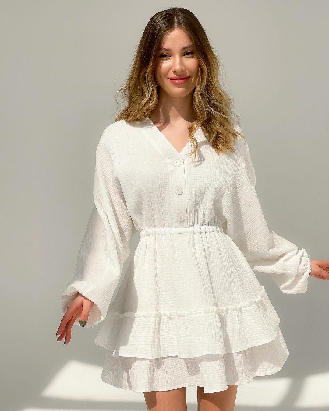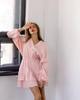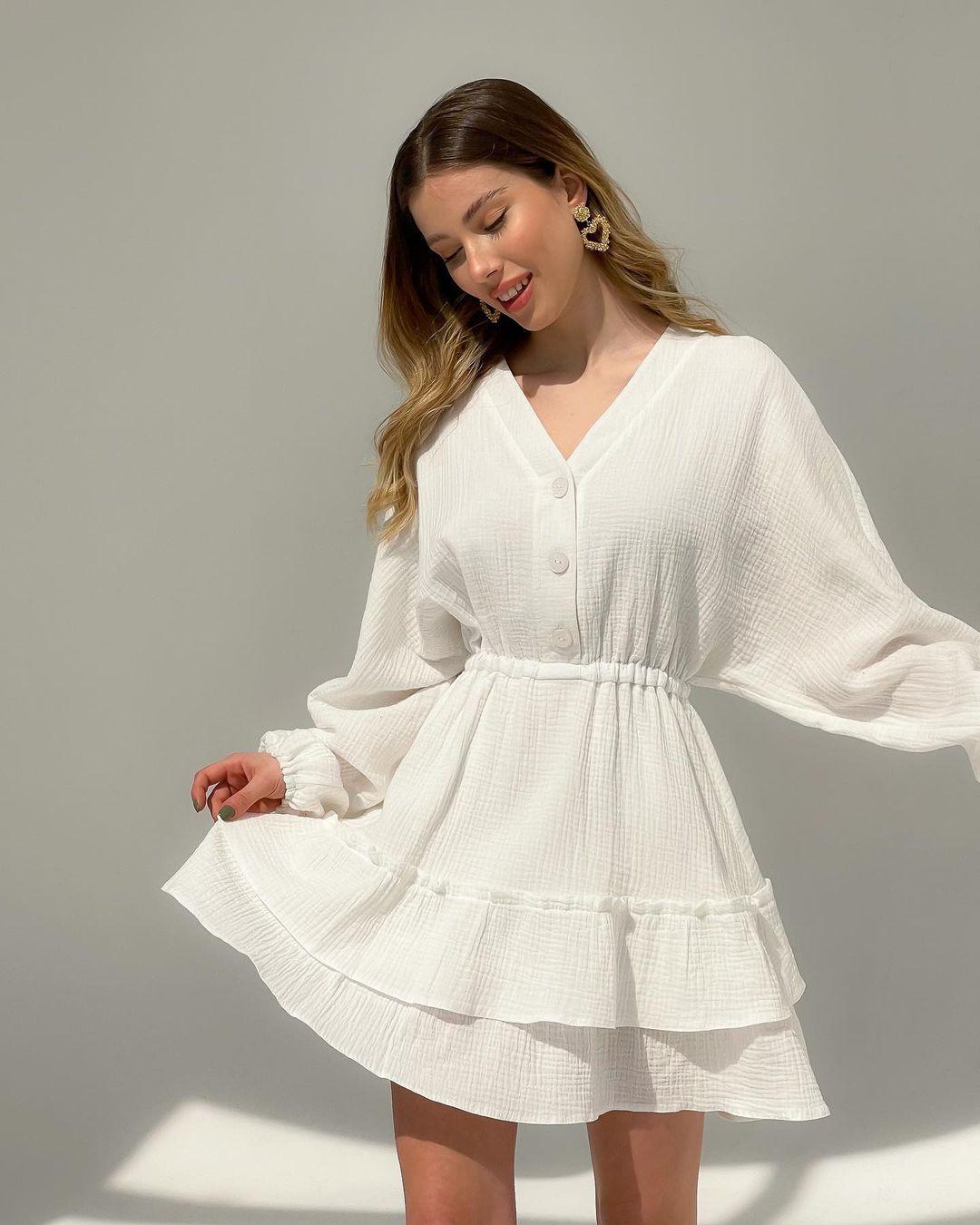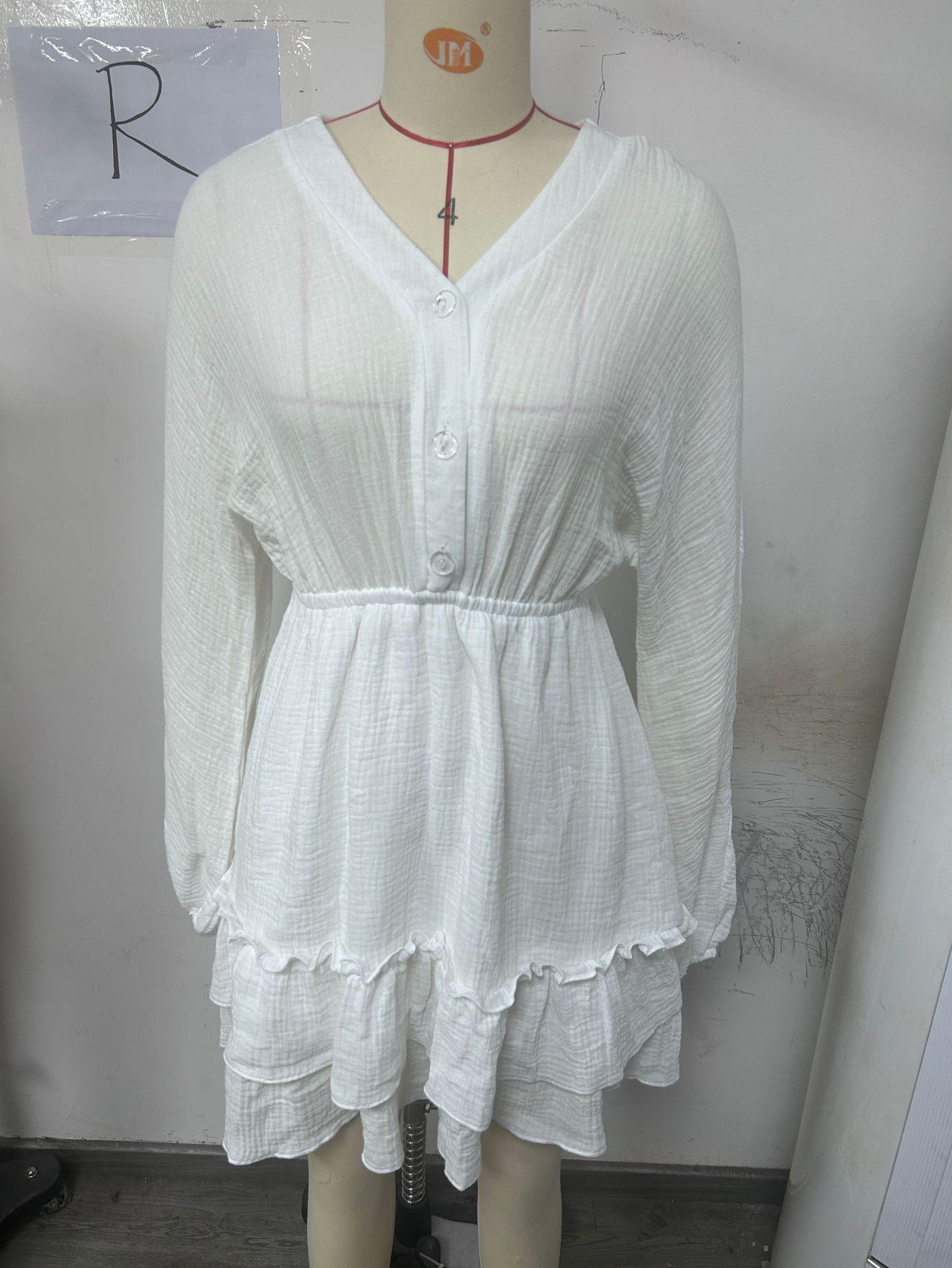 Vestido de verano nuevo de manga larga de color sólido con cuello en V y falda acampanada adelgazante, transfronterizo entre Europa y Estados Unidos, Amazon 2024