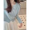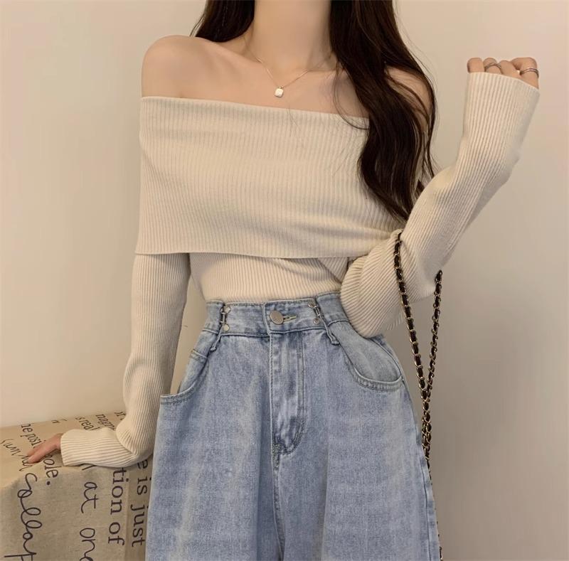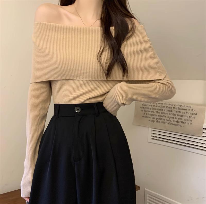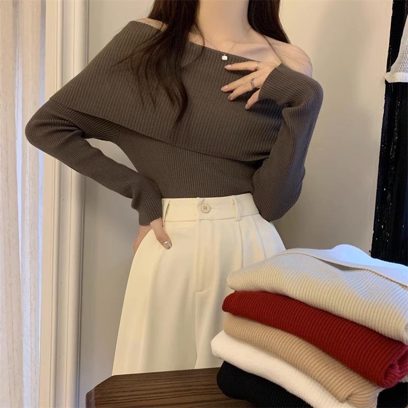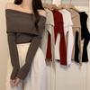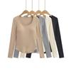 Nueva Versión de Diseño Ajustado y Drapeado para Mujer Verano 2023 Color Puro Estilo Coreano Versátil Camiseta Top de Punto para Fondo