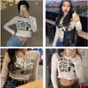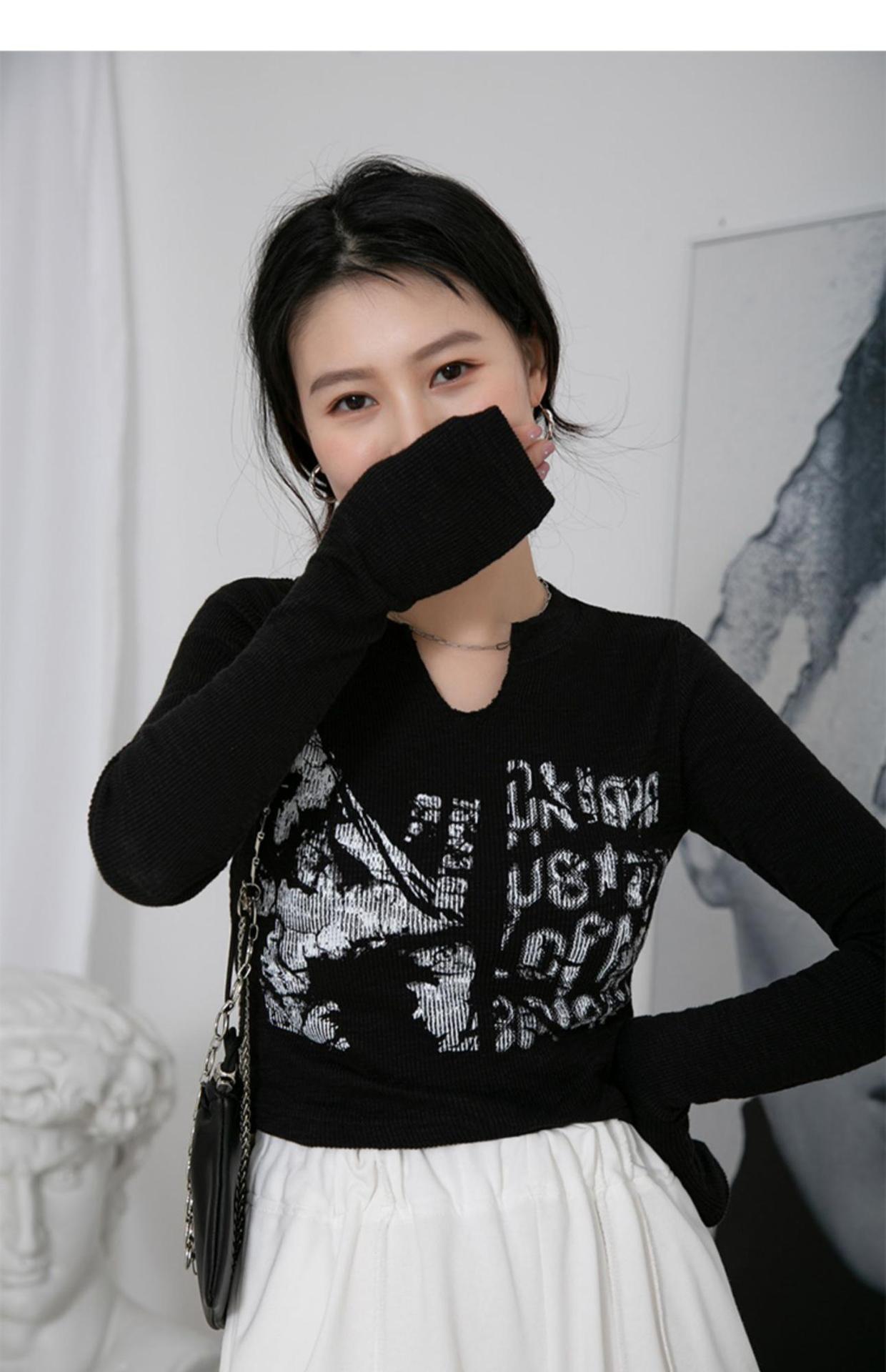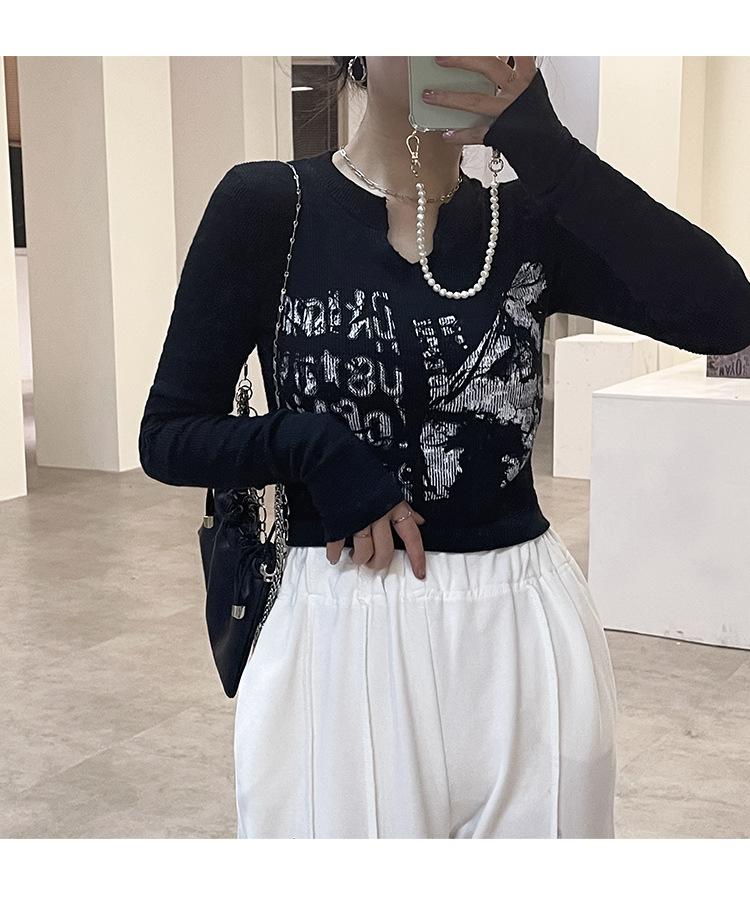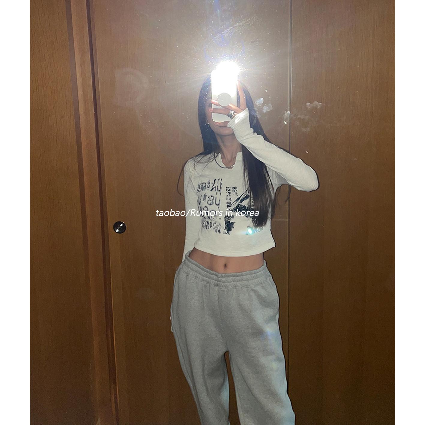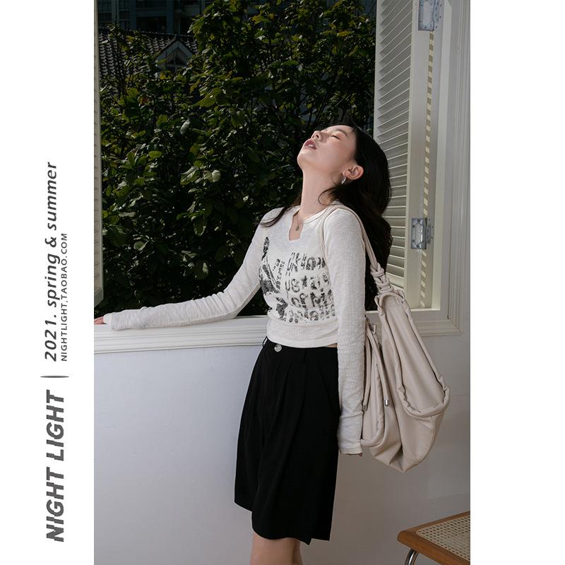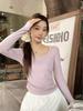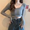 2025 Nueva Camiseta Estilo Coreano para Mujer Camiseta de Manga Larga Algodón Puro para Fondo Tejido Cuello U Blanco Camisa de Manga Larga Corta