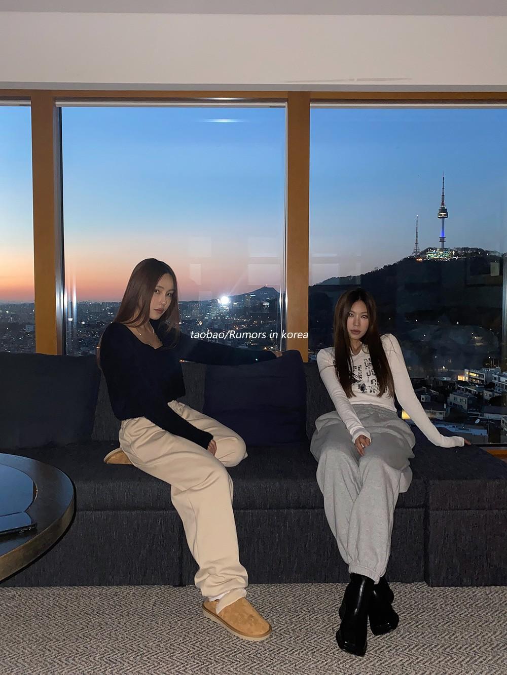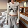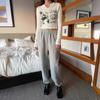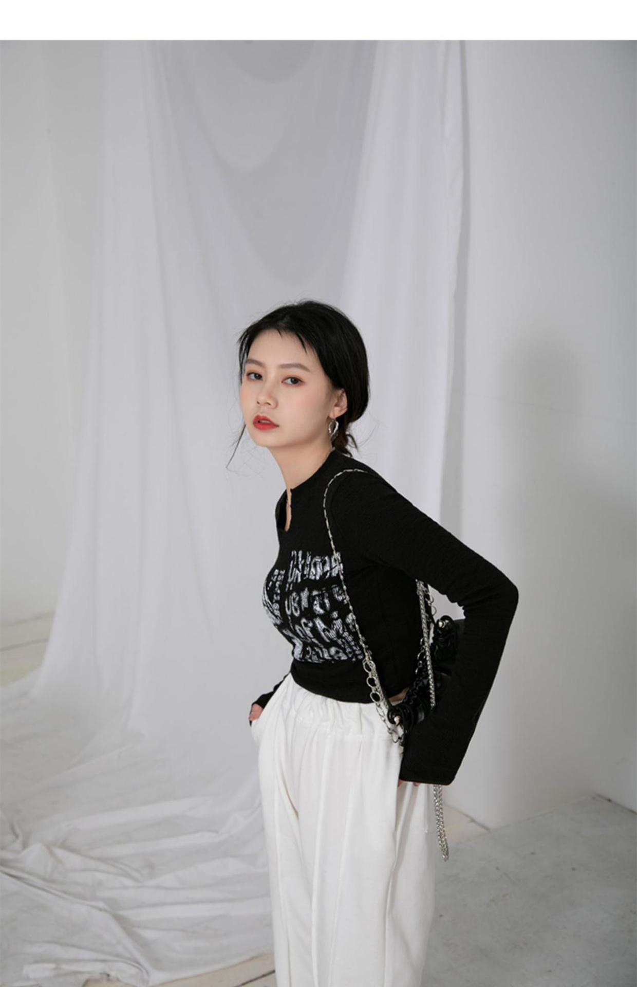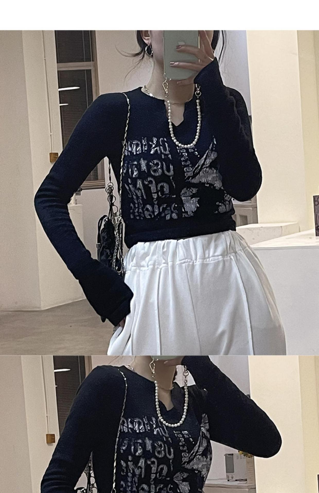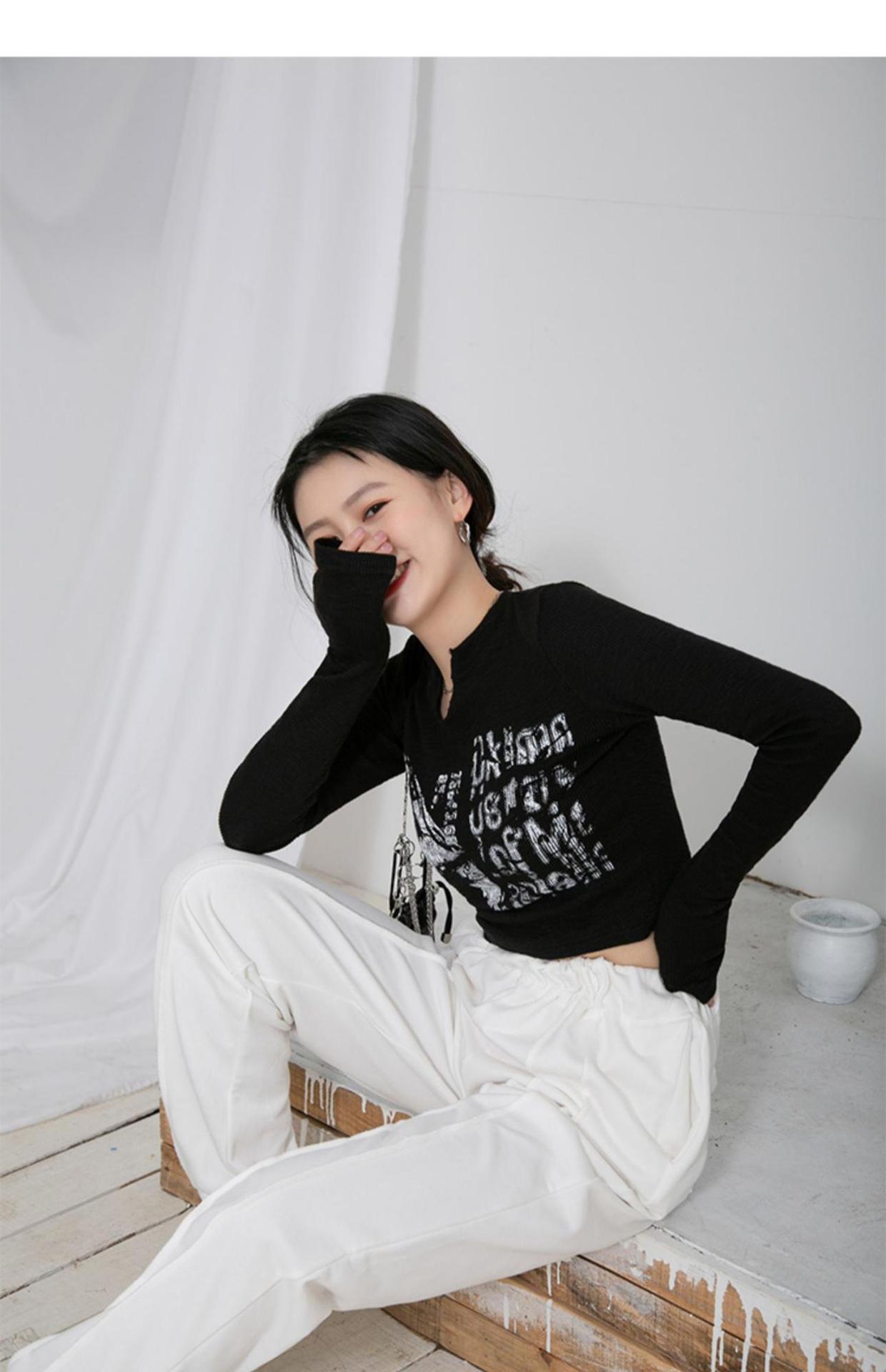 2025 Nueva Camiseta Estilo Coreano para Mujer Camiseta de Manga Larga Algodón Puro para Fondo Tejido Cuello U Blanco Camisa de Manga Larga Corta