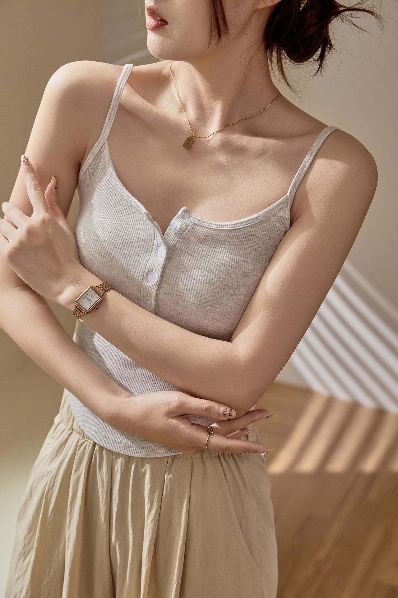 [Seleccionar Algodón de Alta Elasticidad] Camisola de Botones para Mujer Verano Ropa Exterior 2025 Nuevo Estilo Top Básico Interior con Short