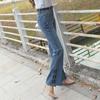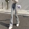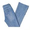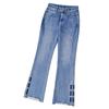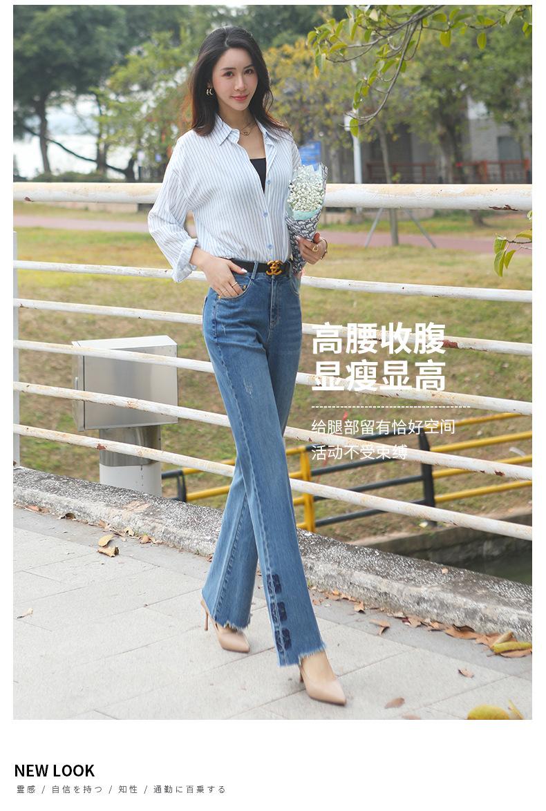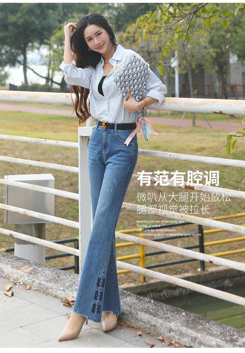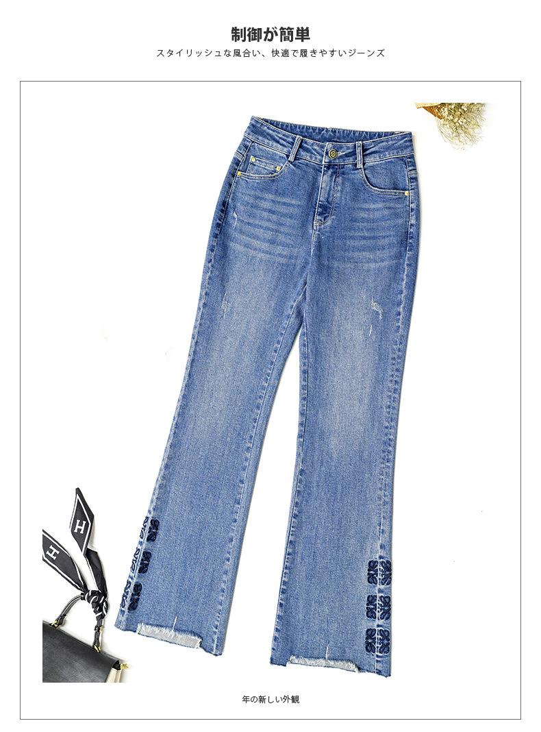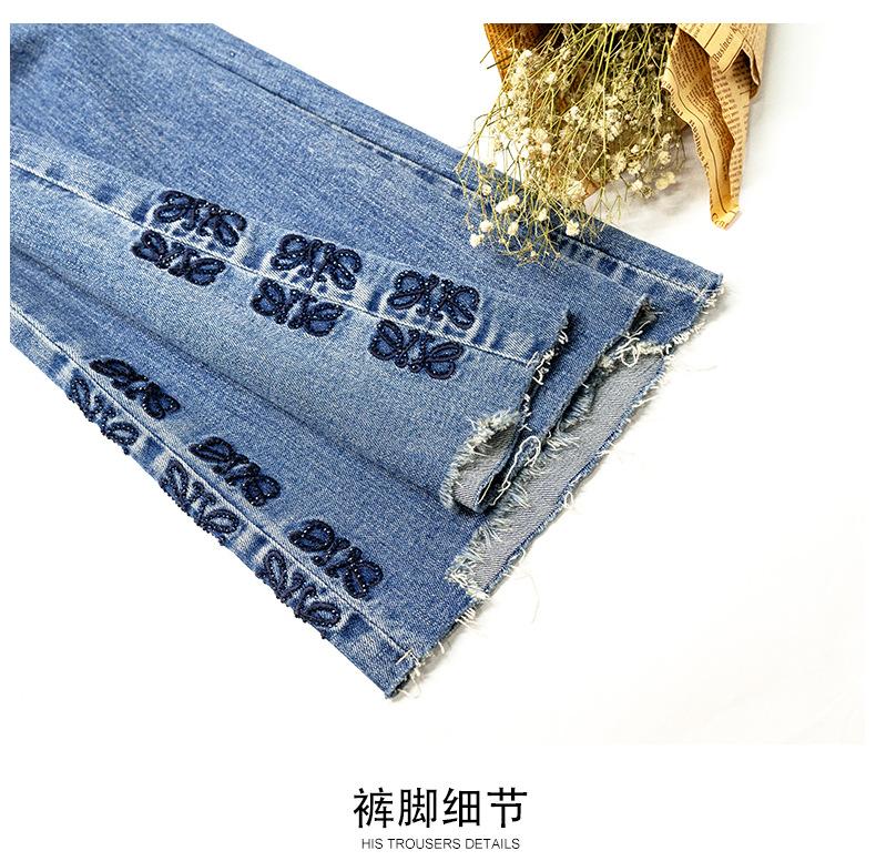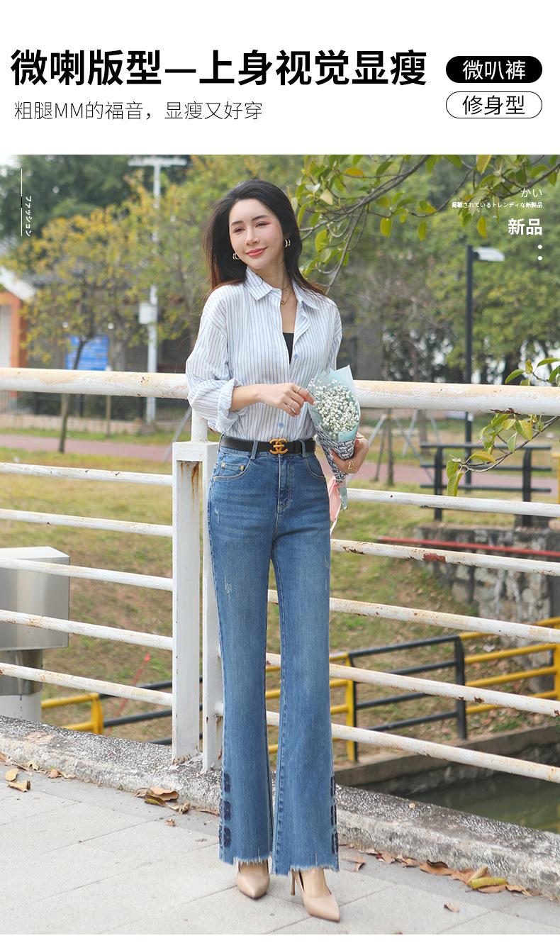Pantalones acampanados de estilo nuevo liso con bordado de diamantes de imitación deshilachados, pantalones de mujer elásticos ajustados, pantalones vaqueros acampanados altos