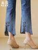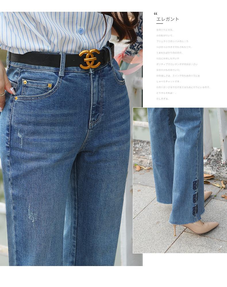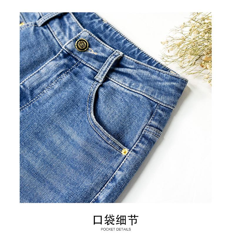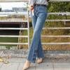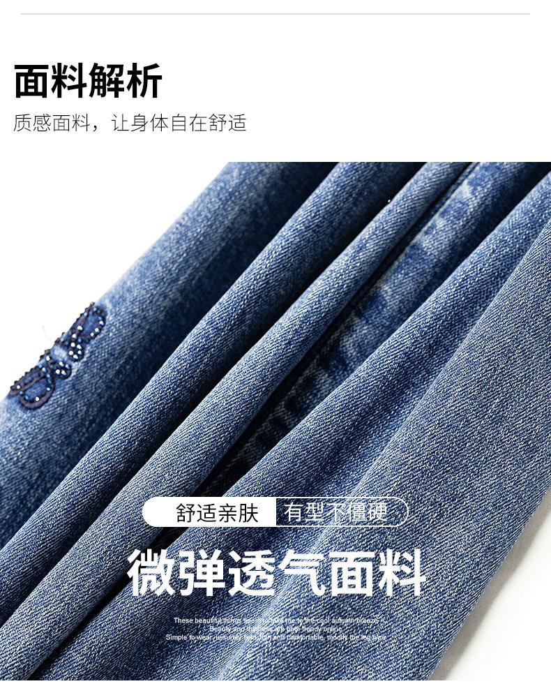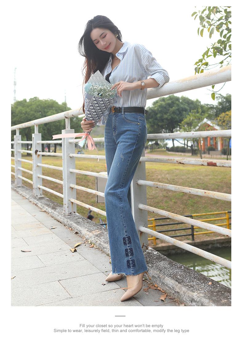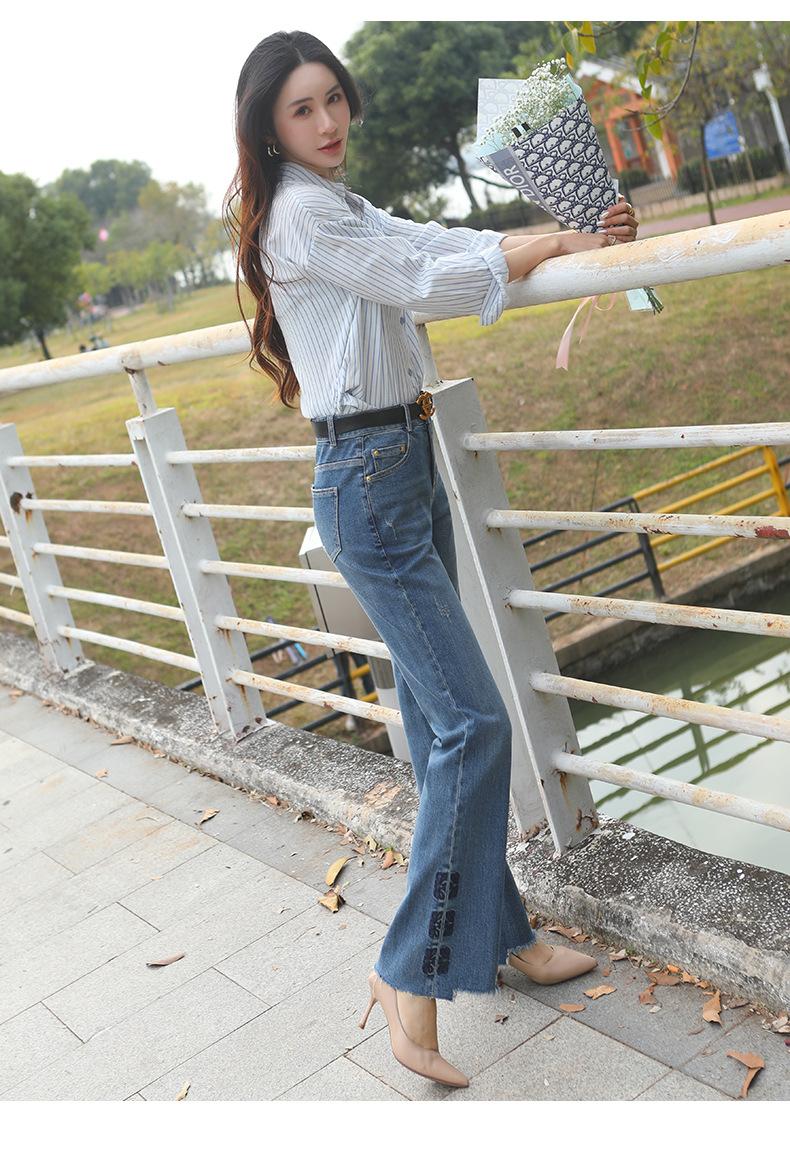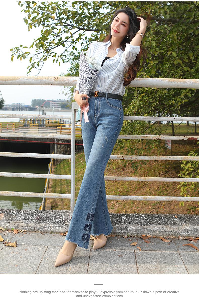 Pantalones acampanados de estilo nuevo liso con bordado de diamantes de imitación deshilachados, pantalones de mujer elásticos ajustados, pantalones vaqueros acampanados altos