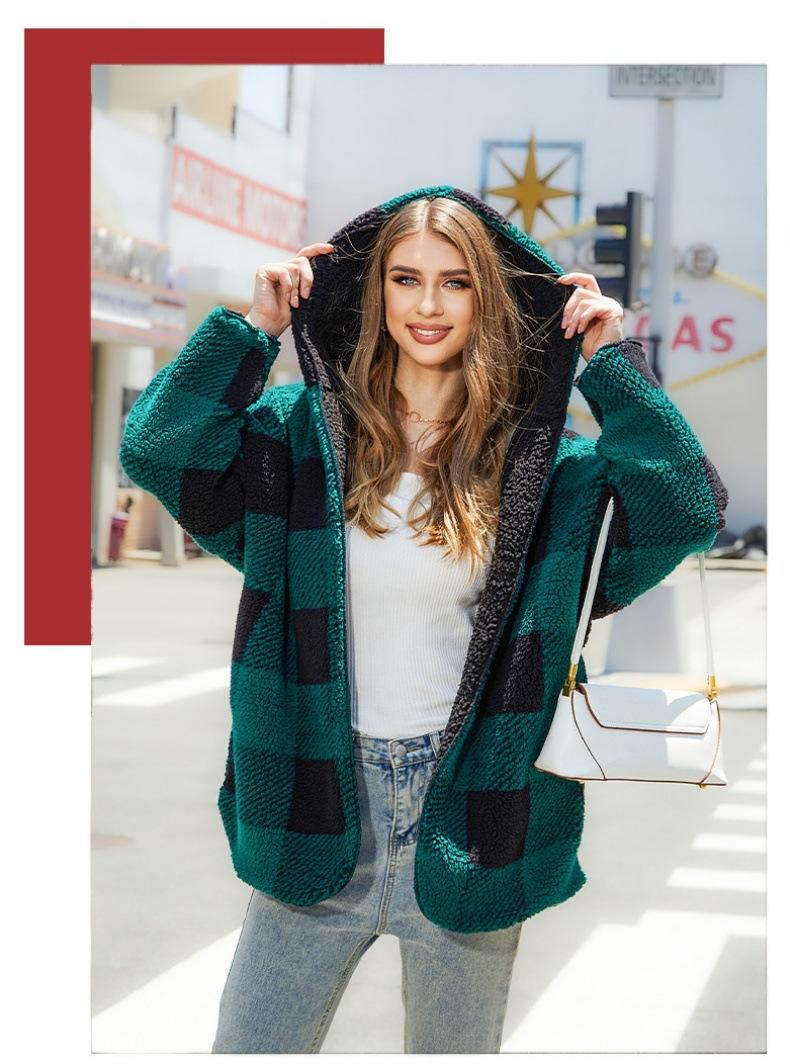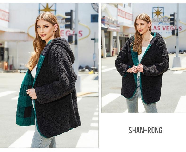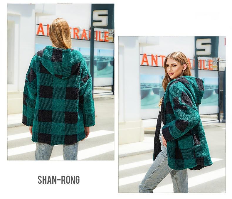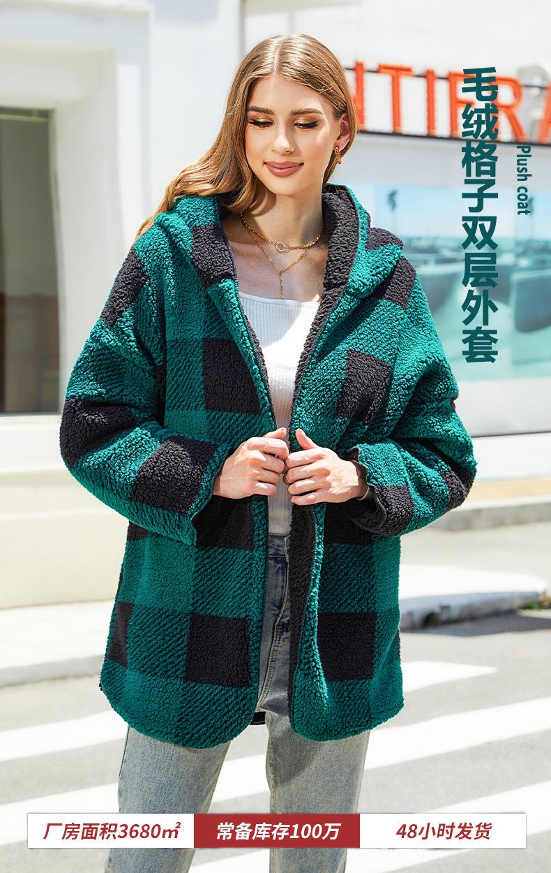 Cárdigan de Terciopelo Brillante Transfronterizo Europeo y Americano para Mujer Amazon Otoño e Invierno a Cuadros Suelto Casual Sin Hebilla Chaqueta de Felpa de Doble Capa para Mujer