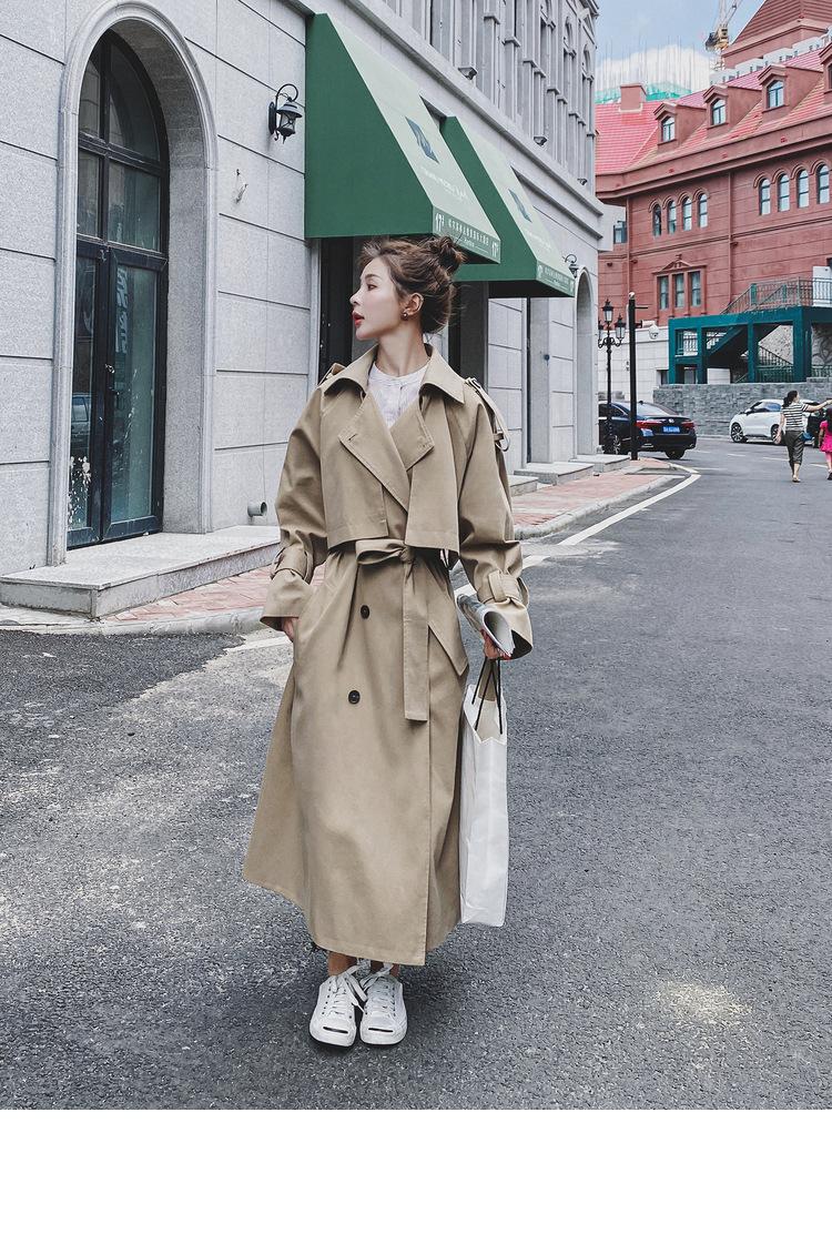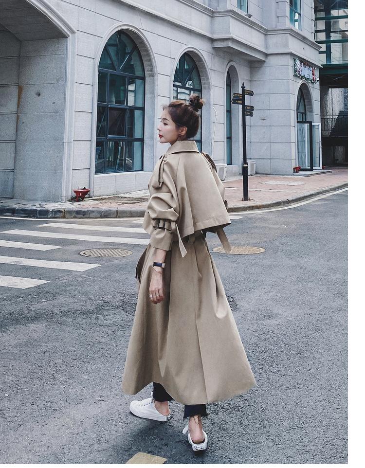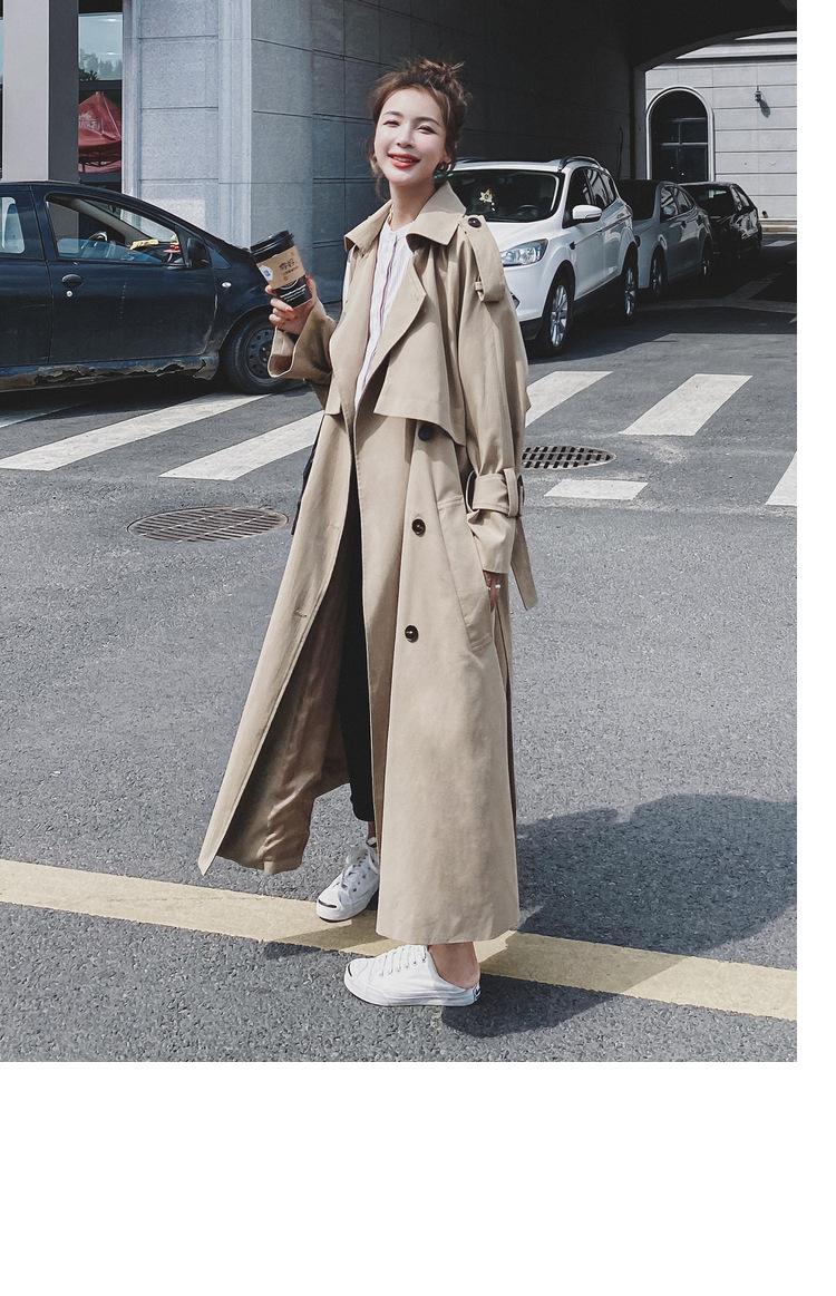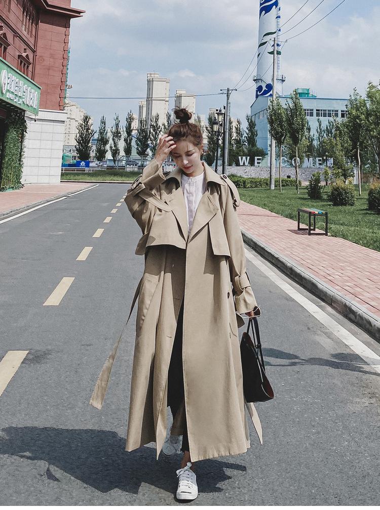 Abrigo de leche de papaya para mujer, largo, primavera y otoño, nuevo, coreano, informal, suelto, popular, elegante, estilo británico.
