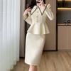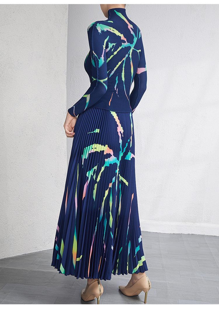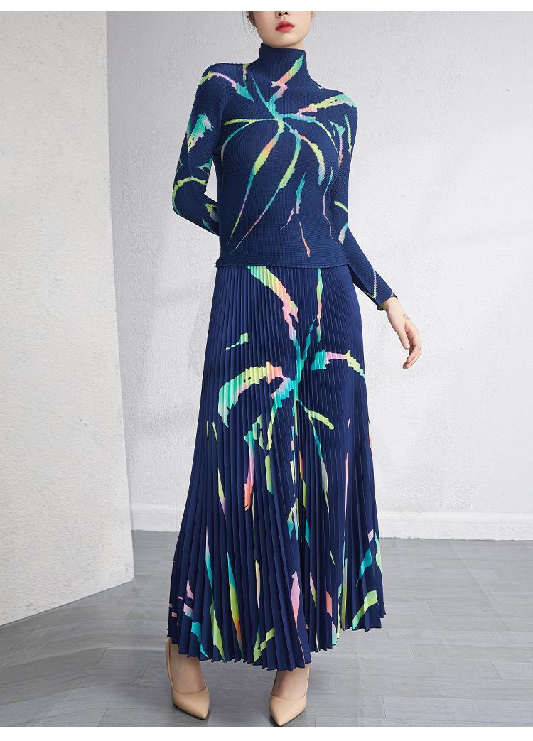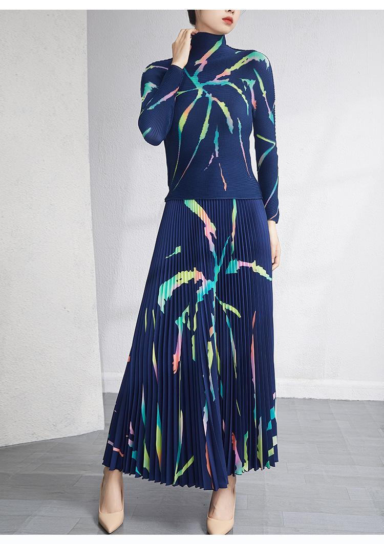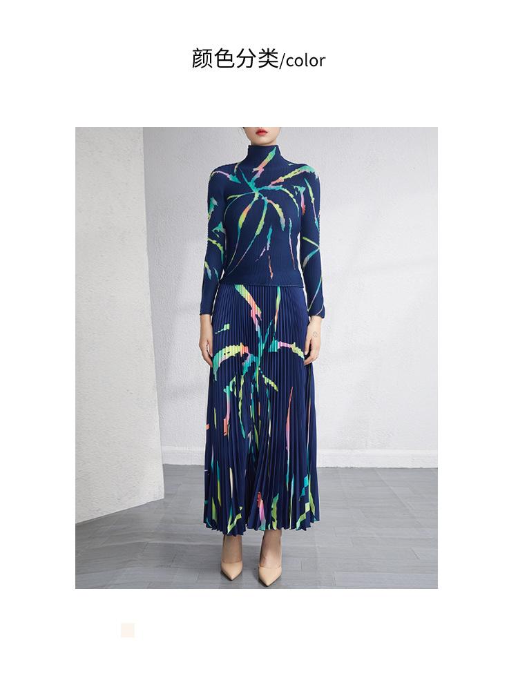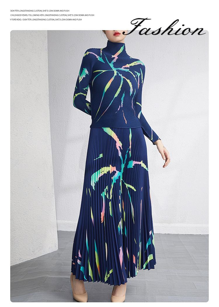 Traje de moda Lote Ropa de Mujer Primavera y Otoño Nuevo Estilo Reductor de Edad Talla Grande Plisado Ajustado Top Falda Conjunto de Dos Piezas