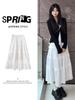 Falda blanca para mujer, primavera y verano 2025, nueva, cintura alta, corte A, adelgazante, plisada, larga, falda paraguas, falda pastel pequeña.