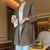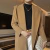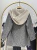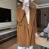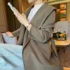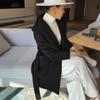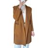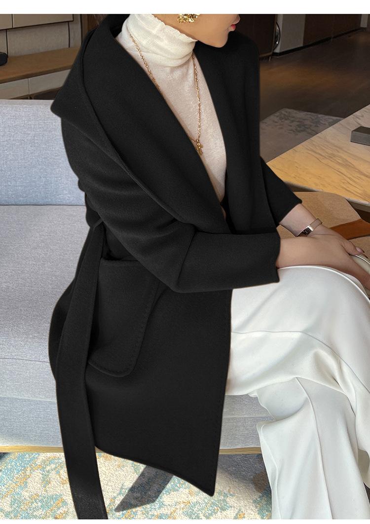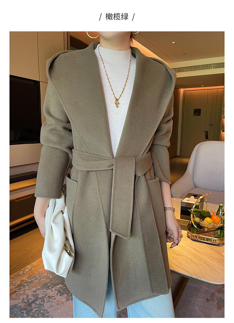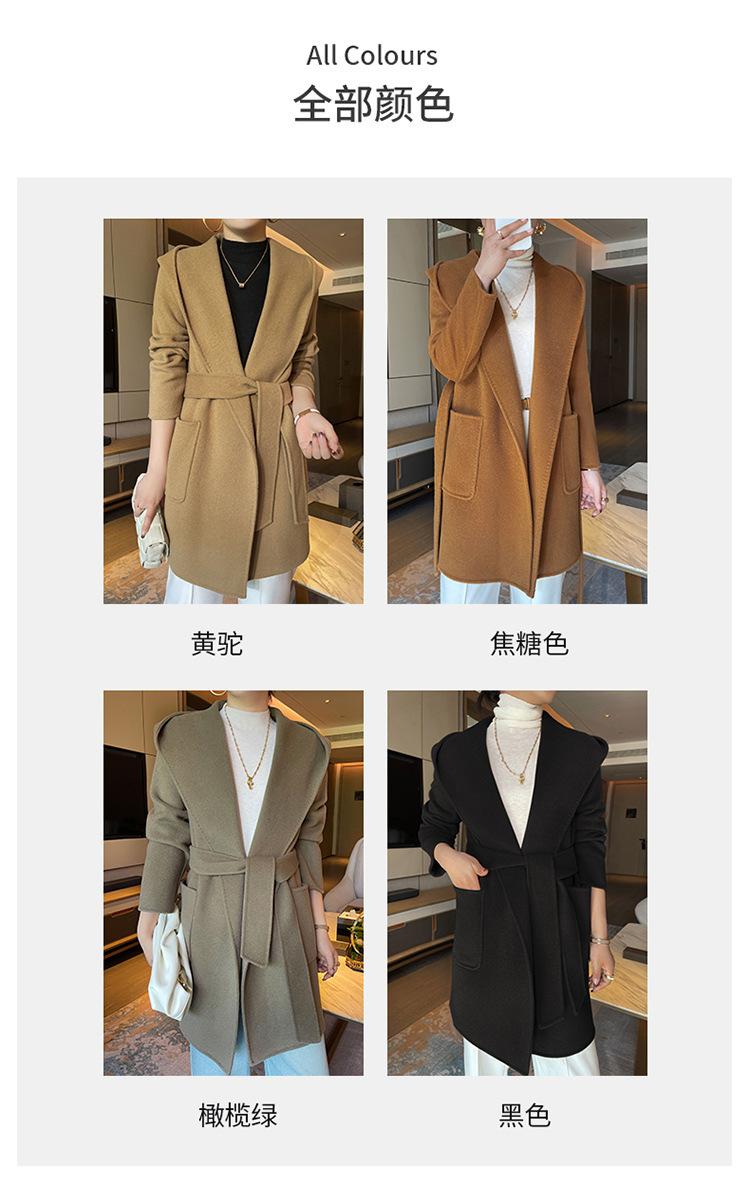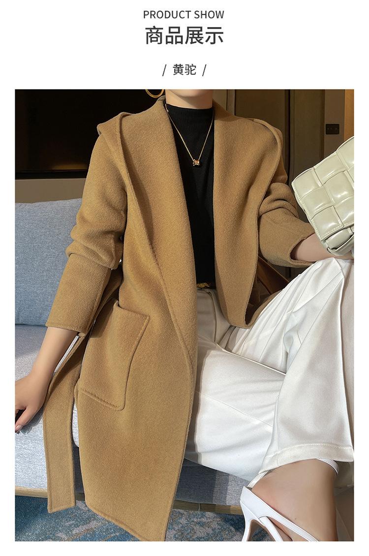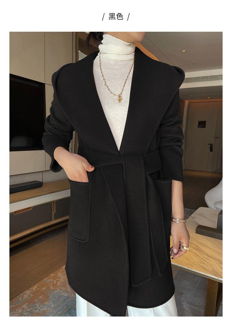 Chaqueta de tweed de doble cara de lana gruesa con capucha y cinturón de color sólido de estilo coreano para otoño e invierno, nueva y holgada.