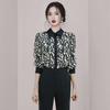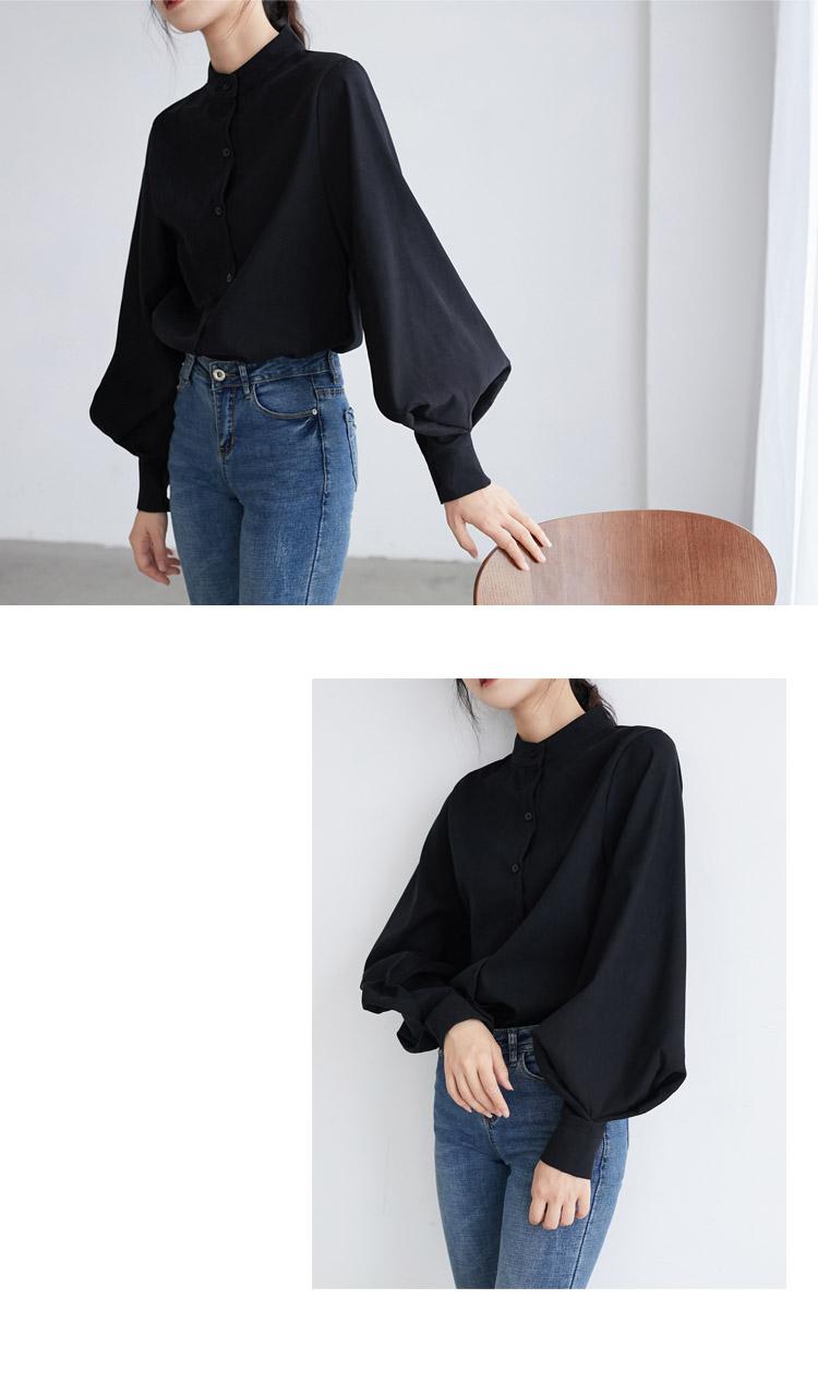 Camisa informal holgada de manga farol elegante de un solo pecho con cuello alto estilo Hong Kong retro de tiro real para mujer