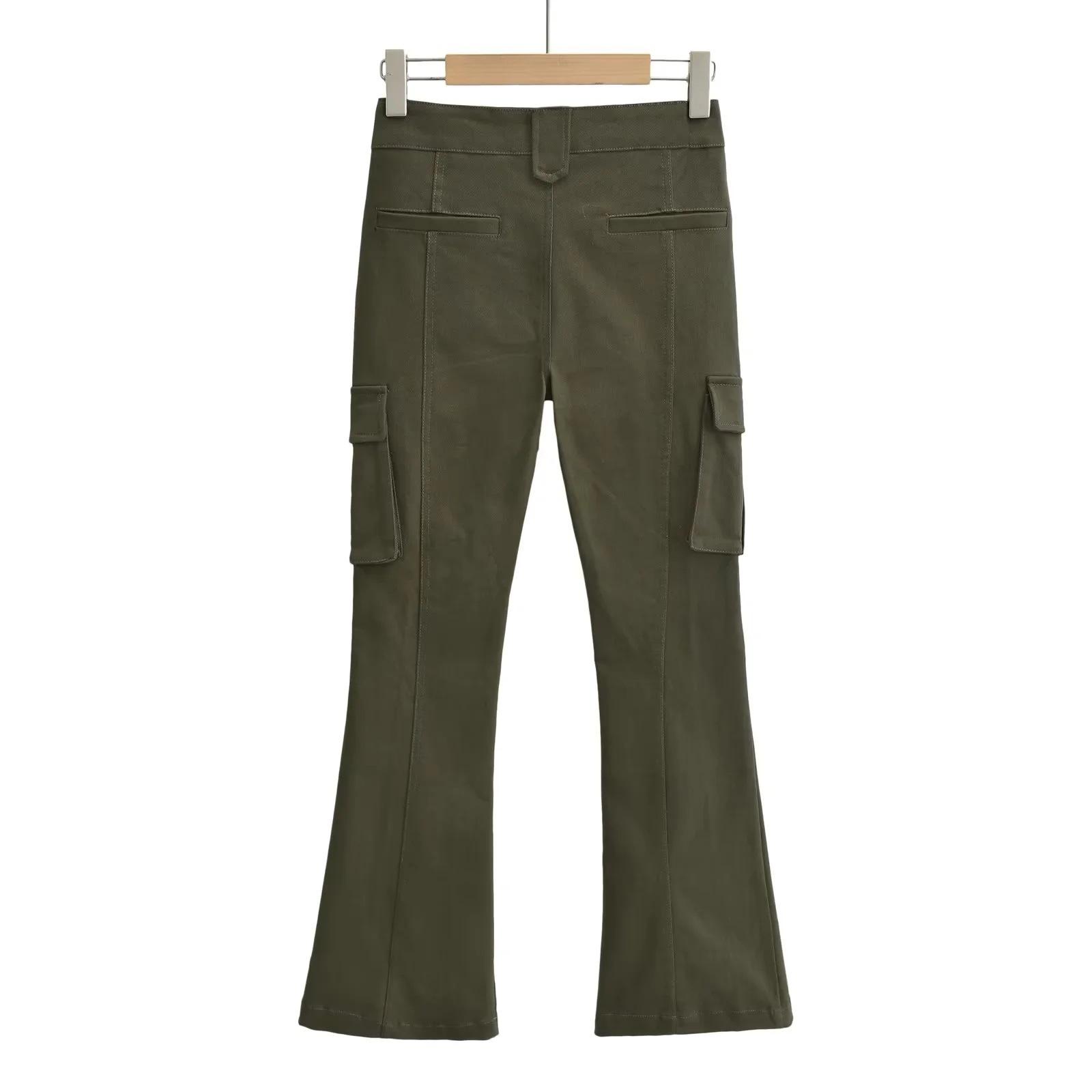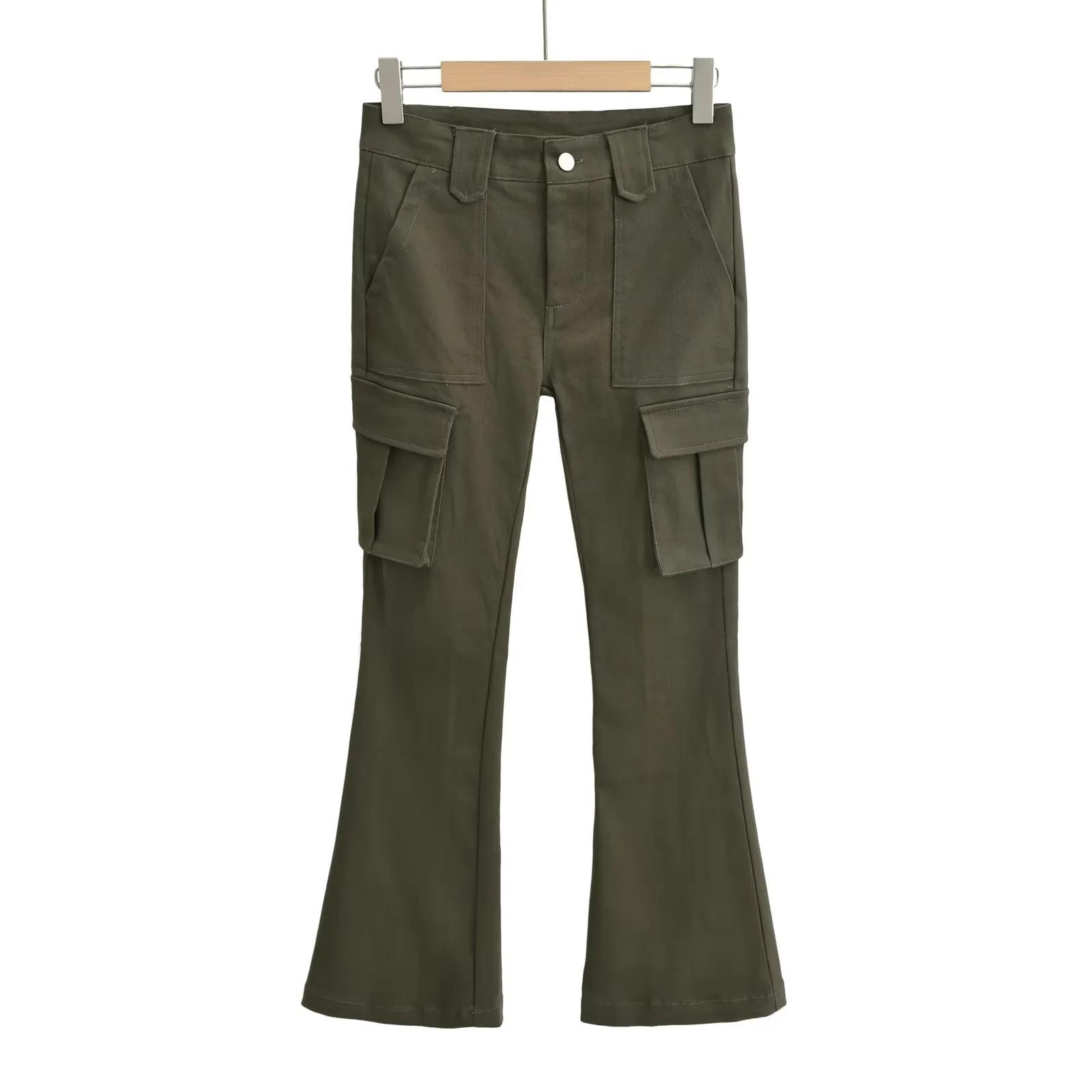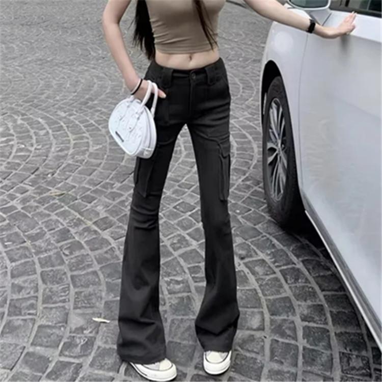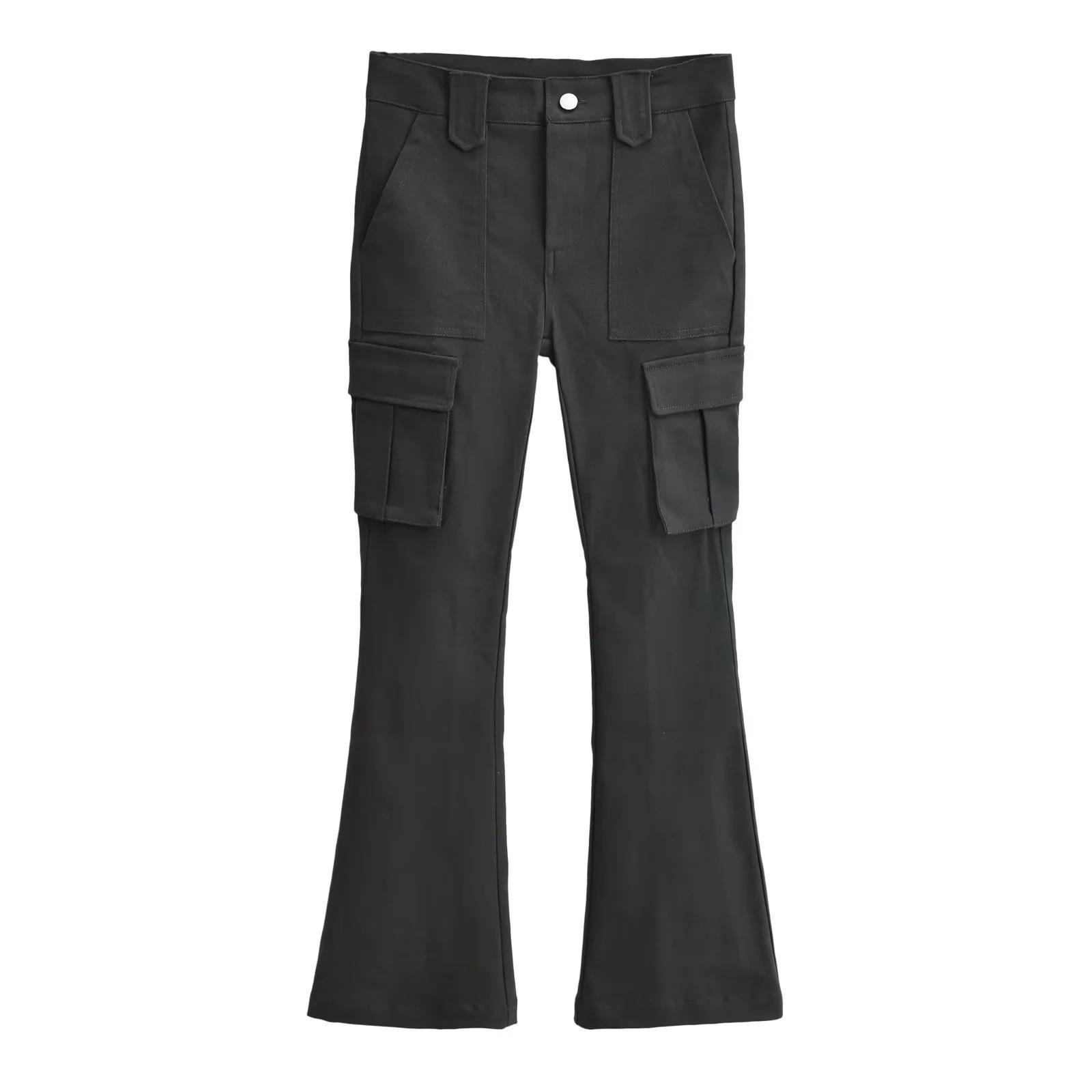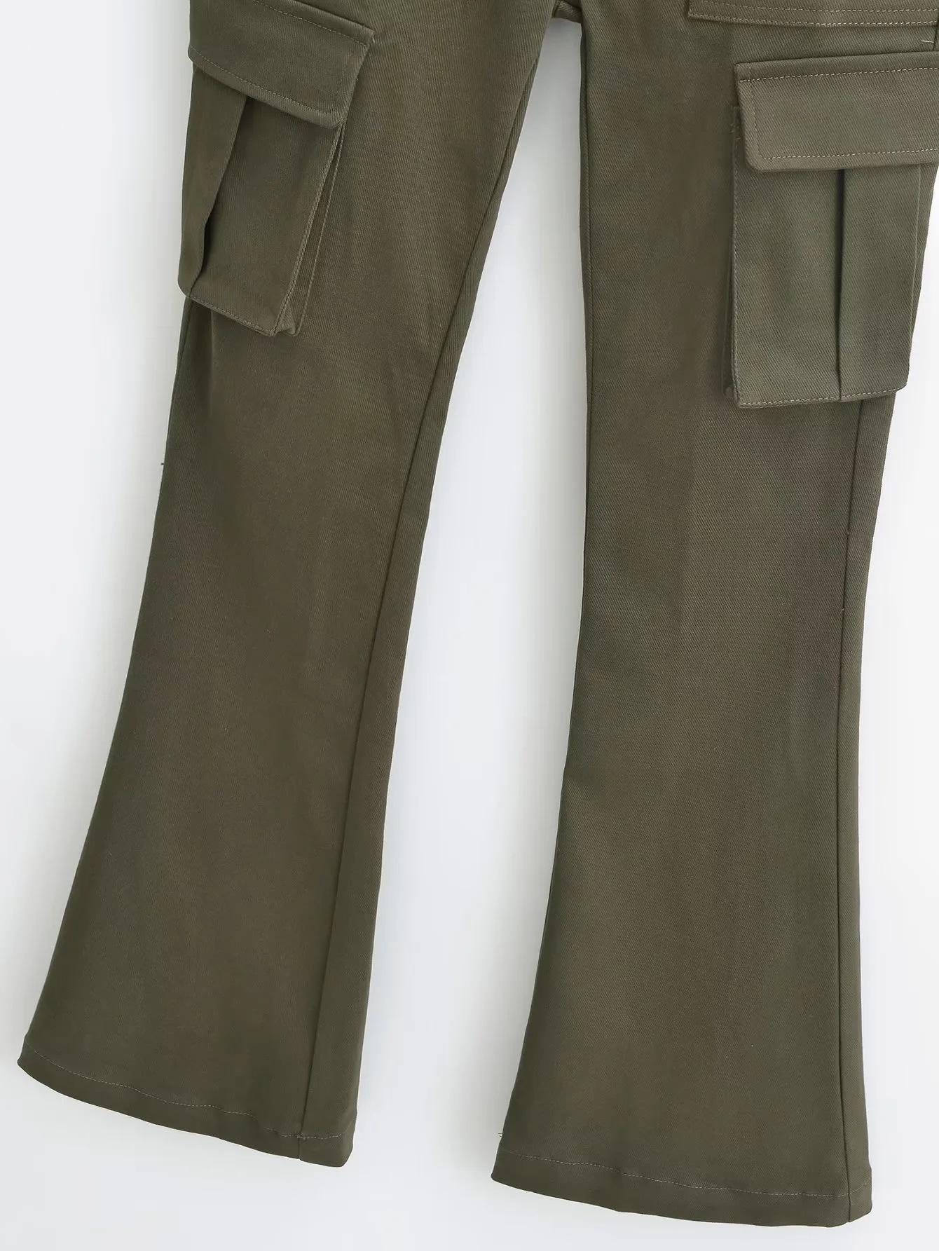 Overol de chica sexy con múltiples bolsillos para mujer 2023 otoño nuevo estilo europeo y americano cintura alta adelgazante pantalones acampanados pantalones pequeños
