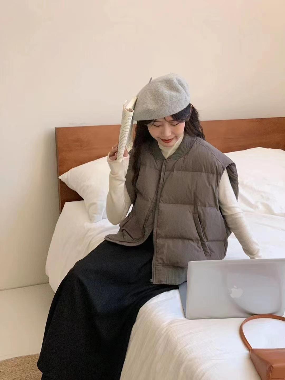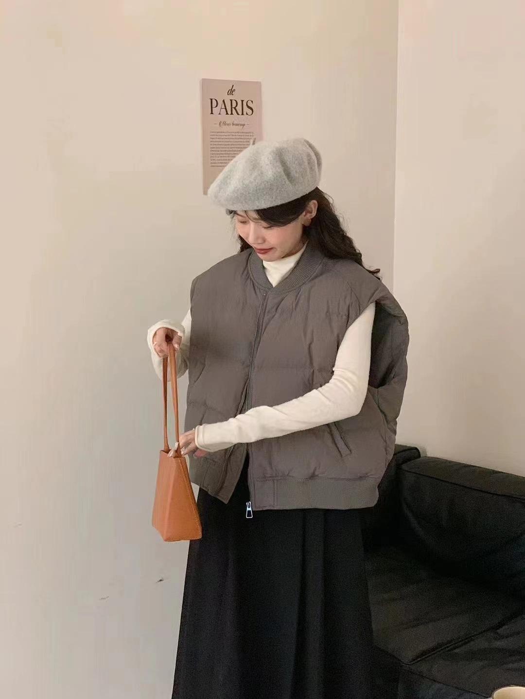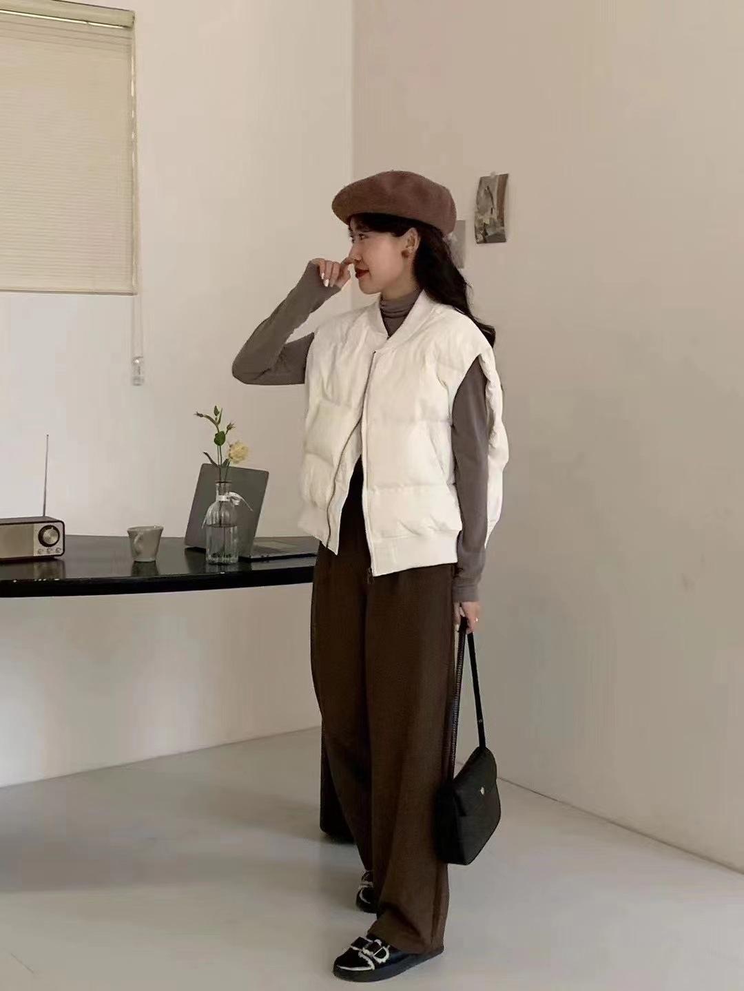 Chaleco casual de plumón estilo coreano para mujer, para uso exterior, invierno, nuevo, grueso, cálido, con cuello de béisbol, talla grande, forro de plumón, moderno