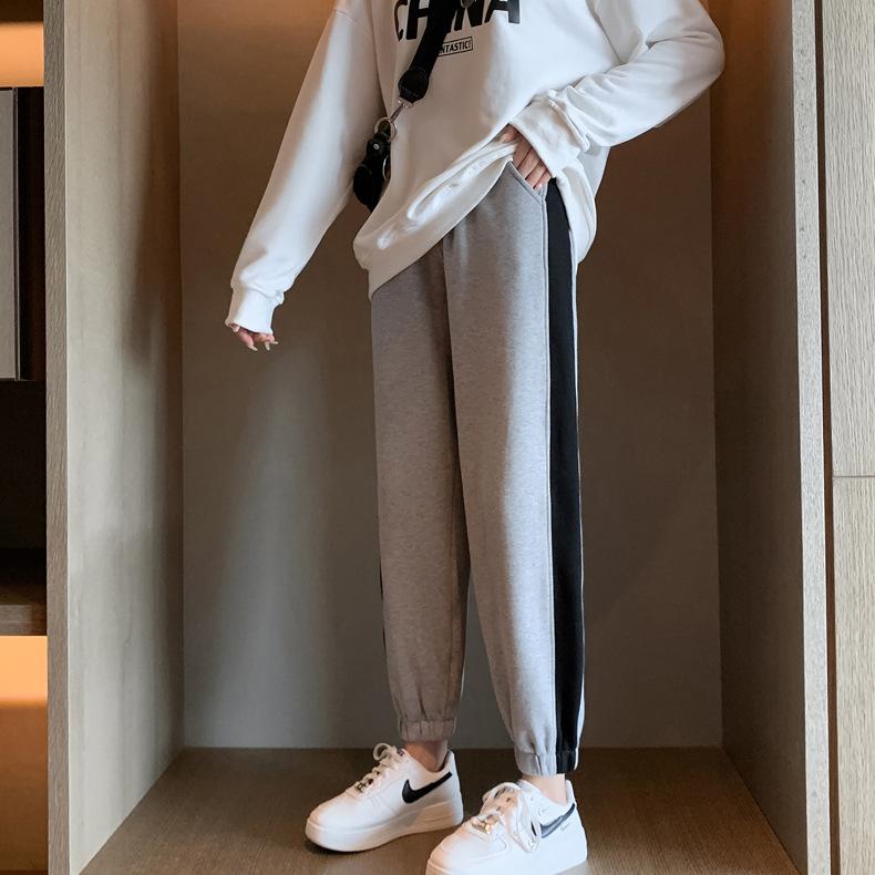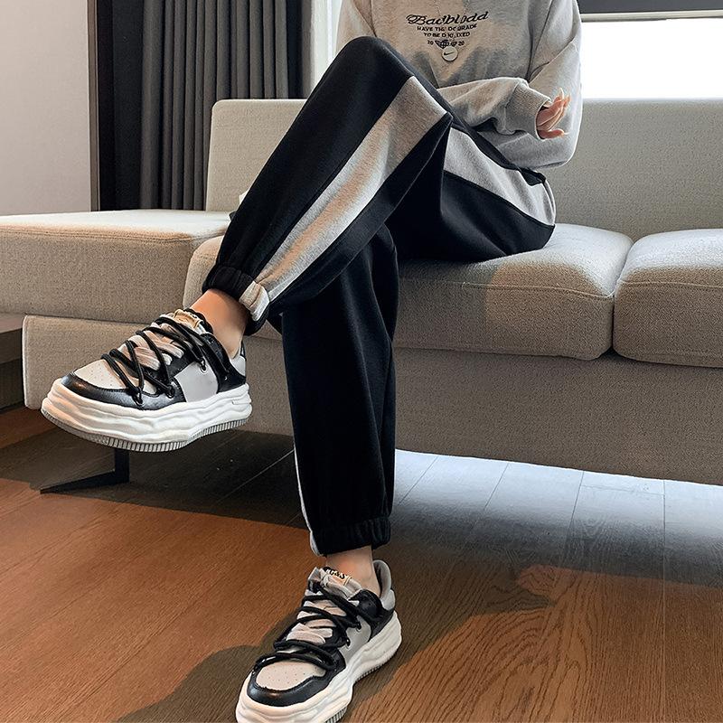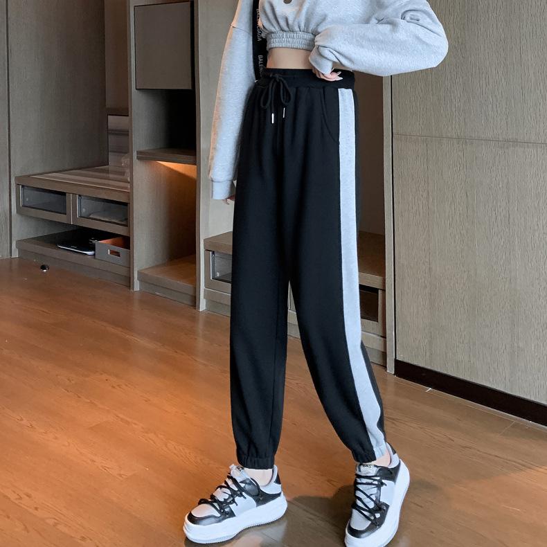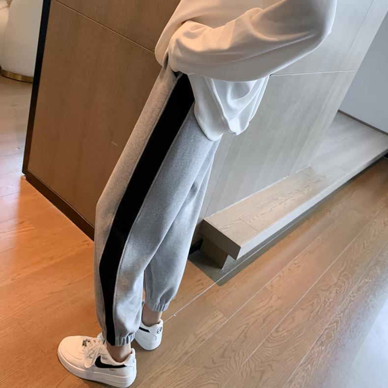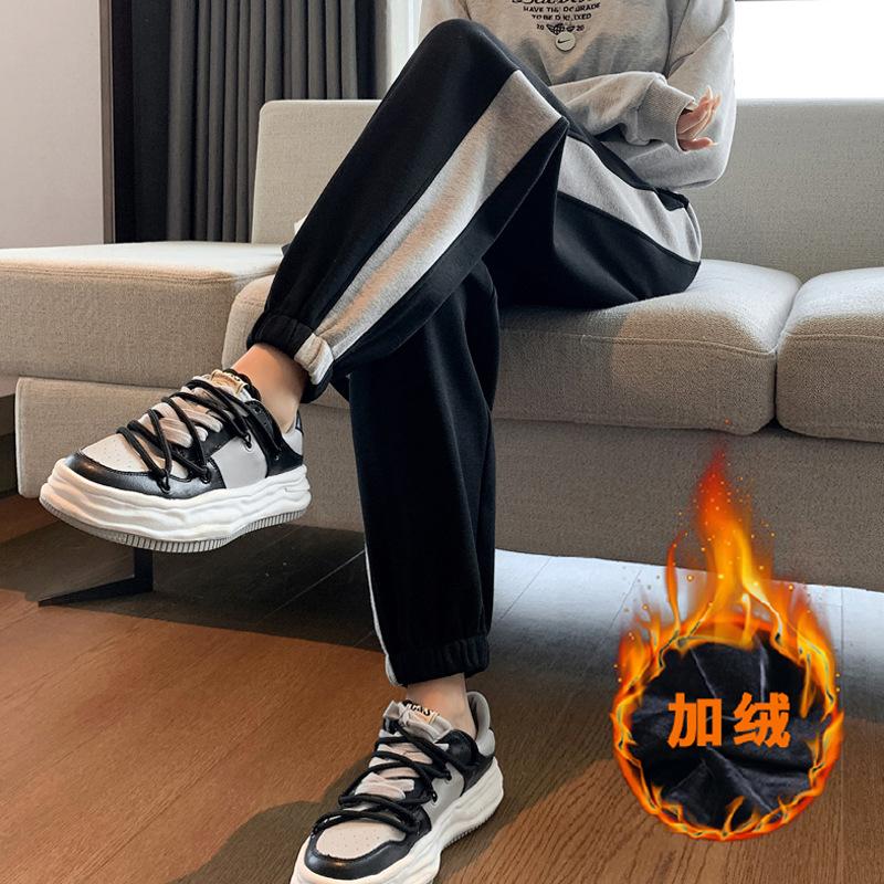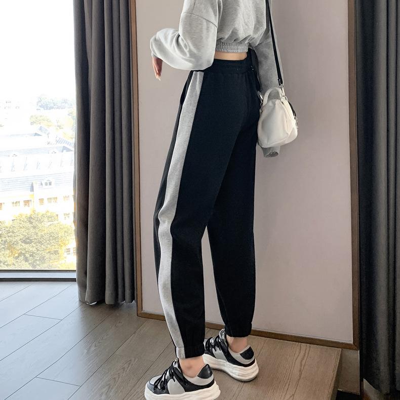 Pantalones deportivos gruesos con forro polar para mujer, otoño e invierno, nuevos pantalones de estilo coreano con tobillos atados, pantalones casuales holgados de algodón para niña con combinación de colores tipo harén